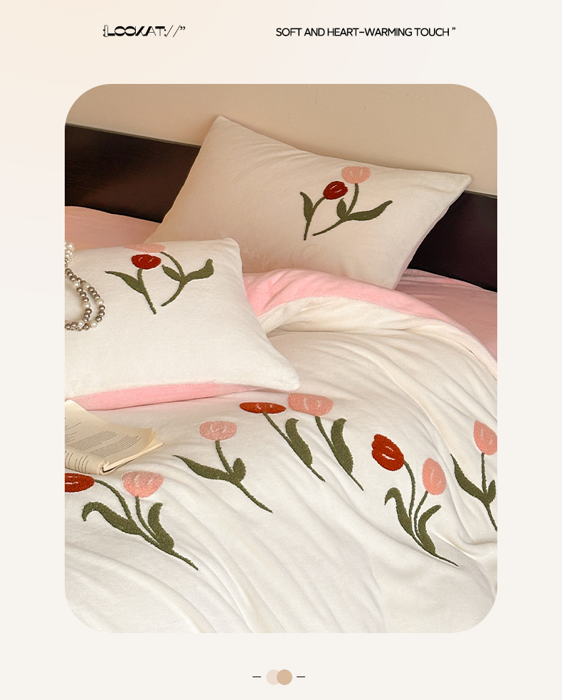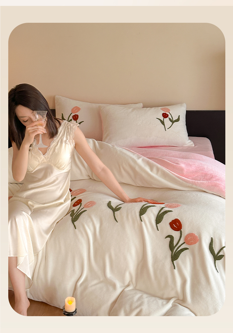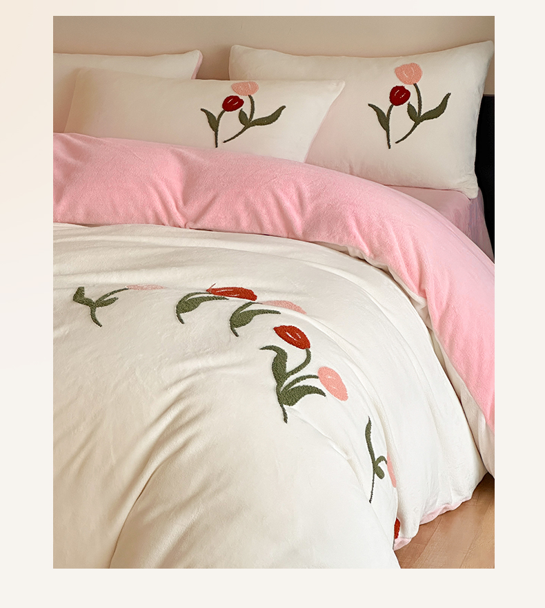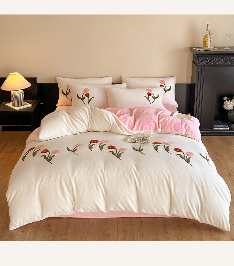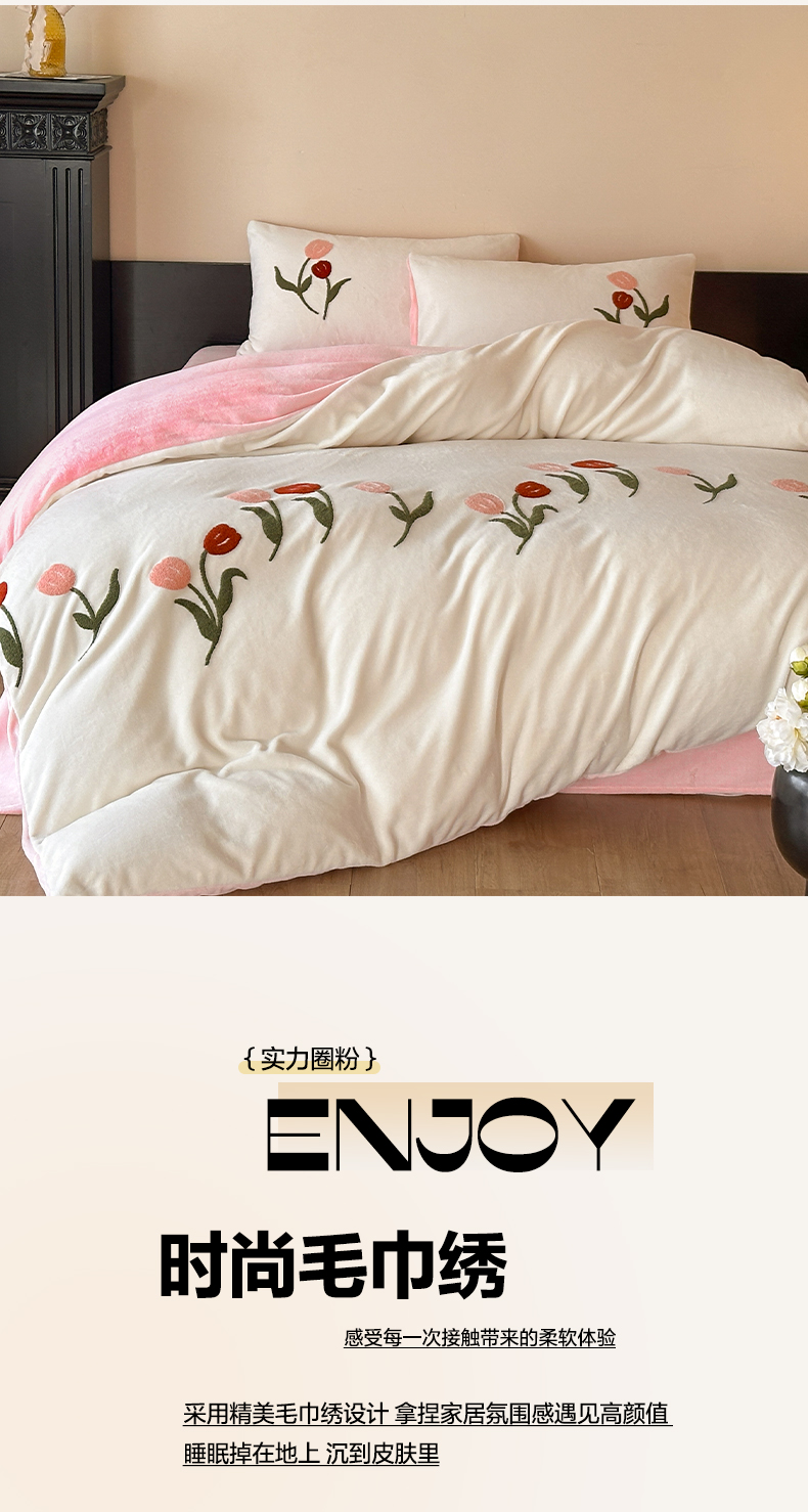 如一 2025新款田园风毛巾绣牛奶绒四件套 郁香-白粉