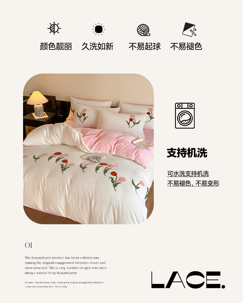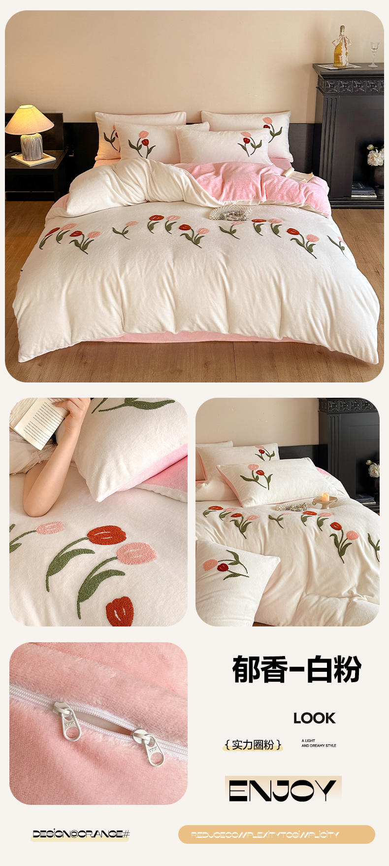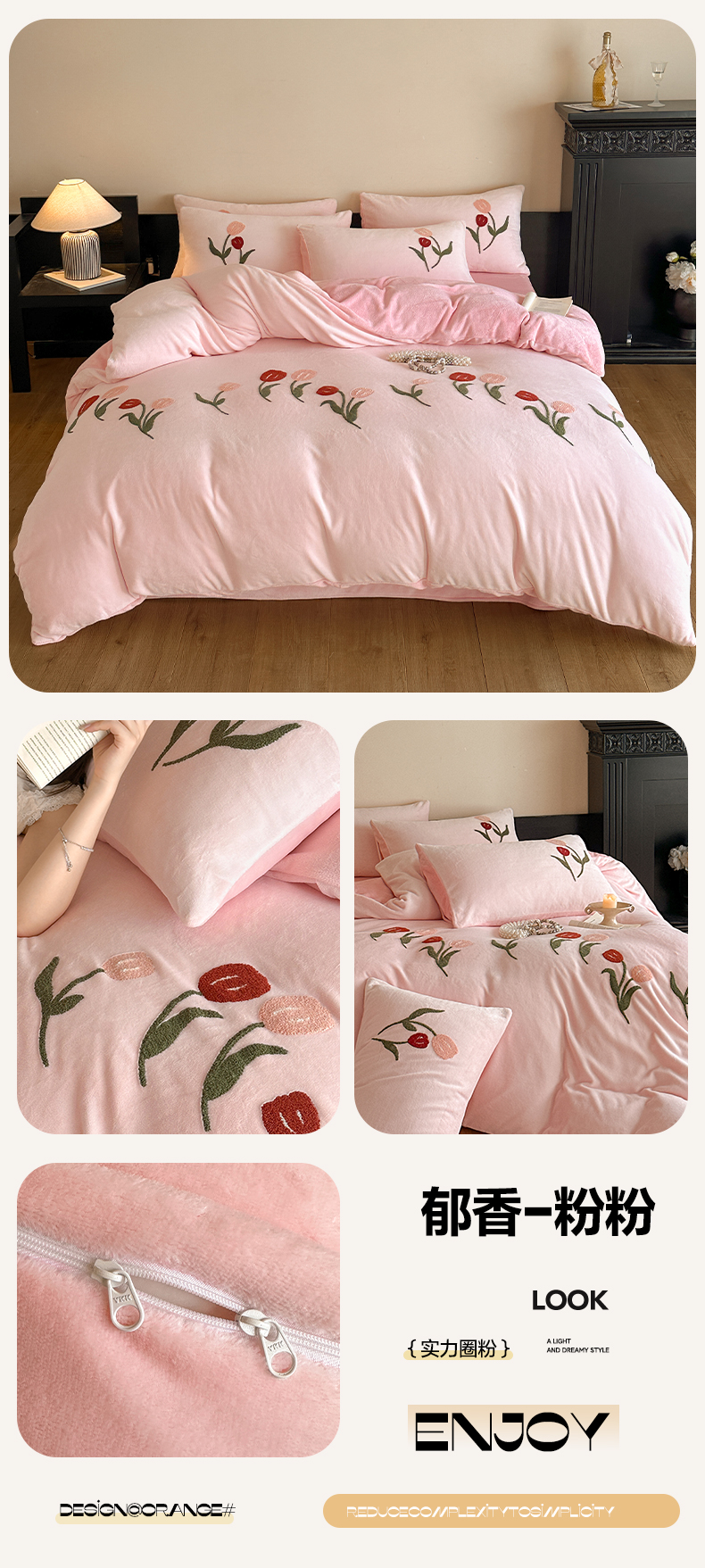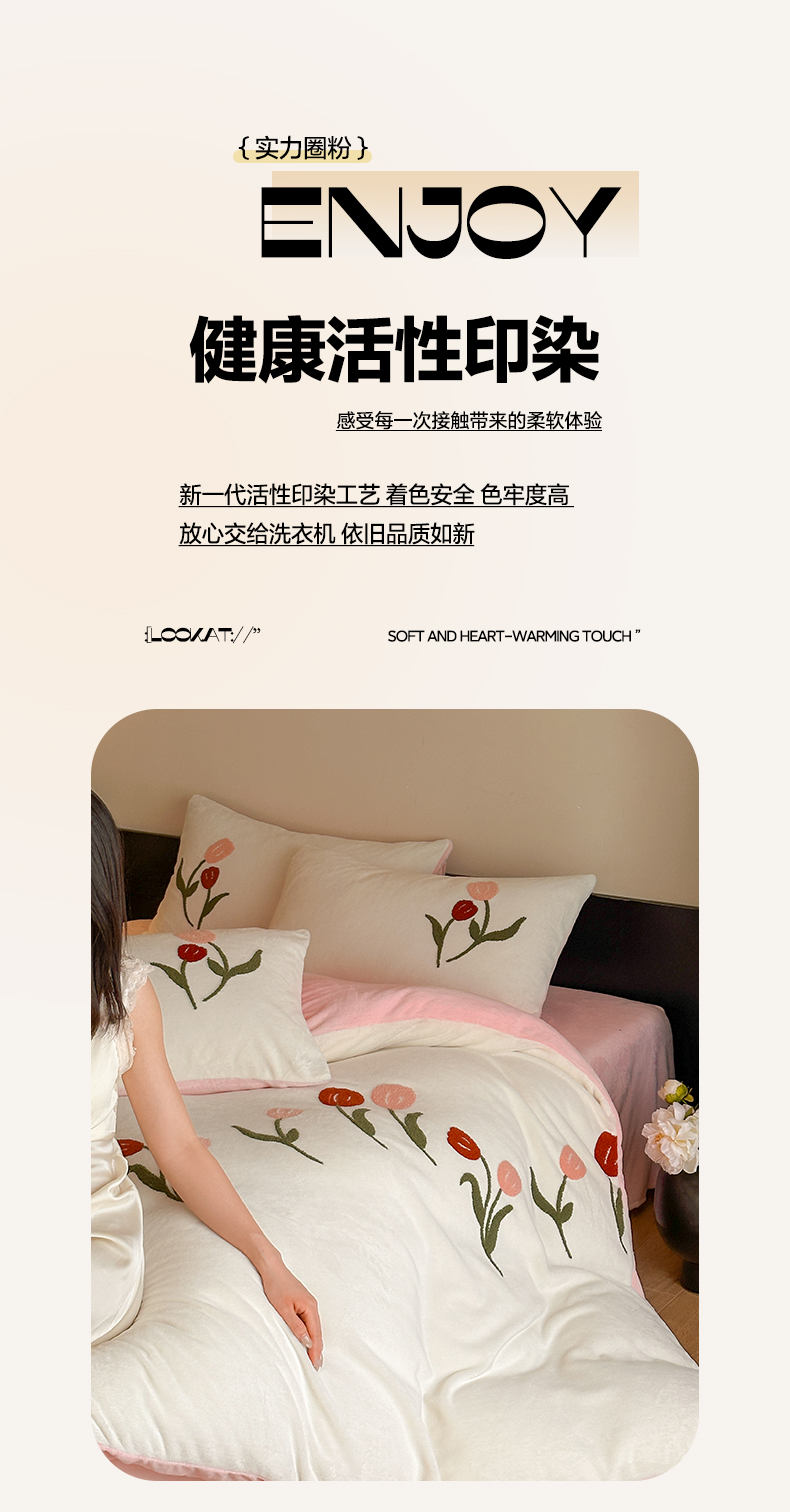 商品名称:如一 2025新款田园风毛巾绣牛奶绒四件套 郁香-白粉
