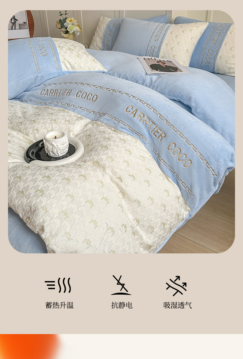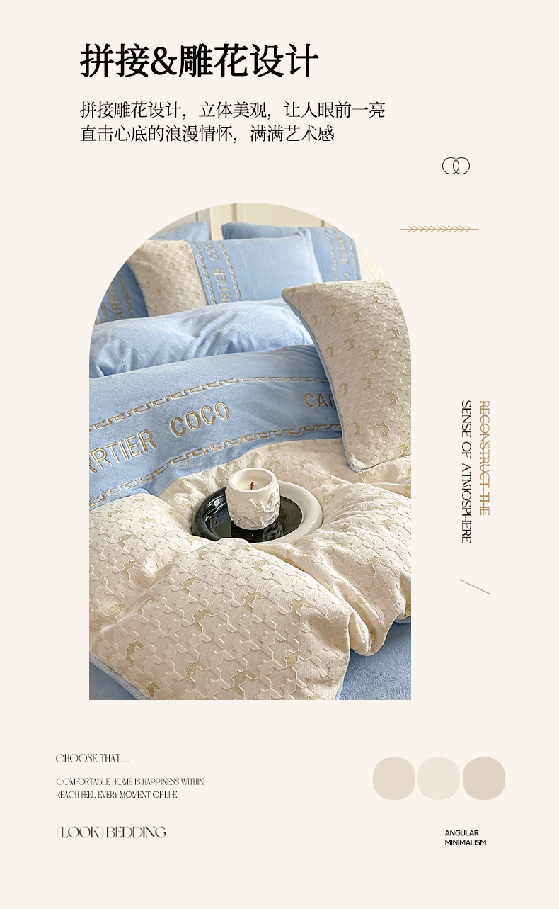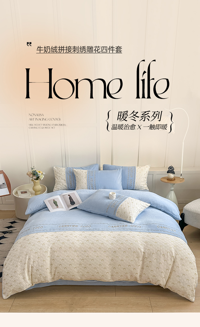 当前位置: 91家纺网 > 商品网购 > 床品套件 > 四件套 > 牛奶绒四件套 > 灰鲸 2025新款牛奶绒拼接刺绣雕花套件-贝娜 贝娜-繁星蓝