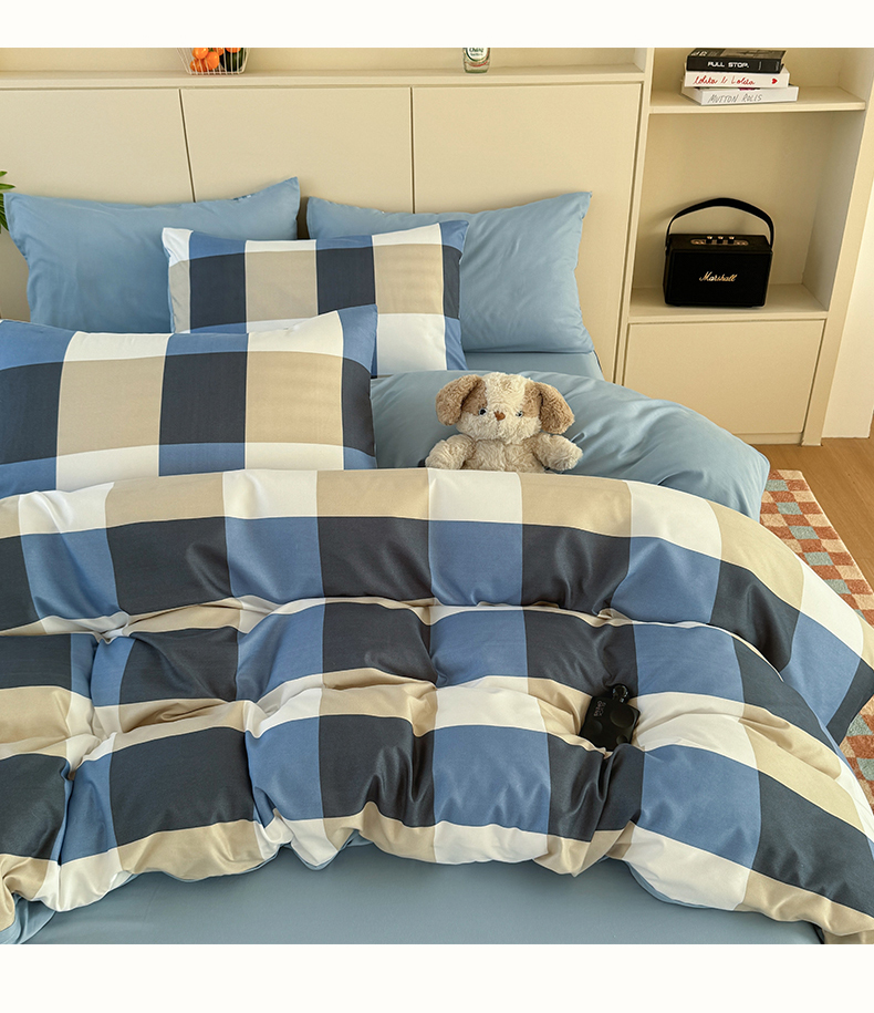 当前位置: 91家纺网 > 商品网购 > 床品套件 > 四件套 > 水洗棉四件套 > 十一家居 2025年秋冬新款A类亲肤云朵水洗棉无印风四件套-叙境系列 豆沙小格+粉玉