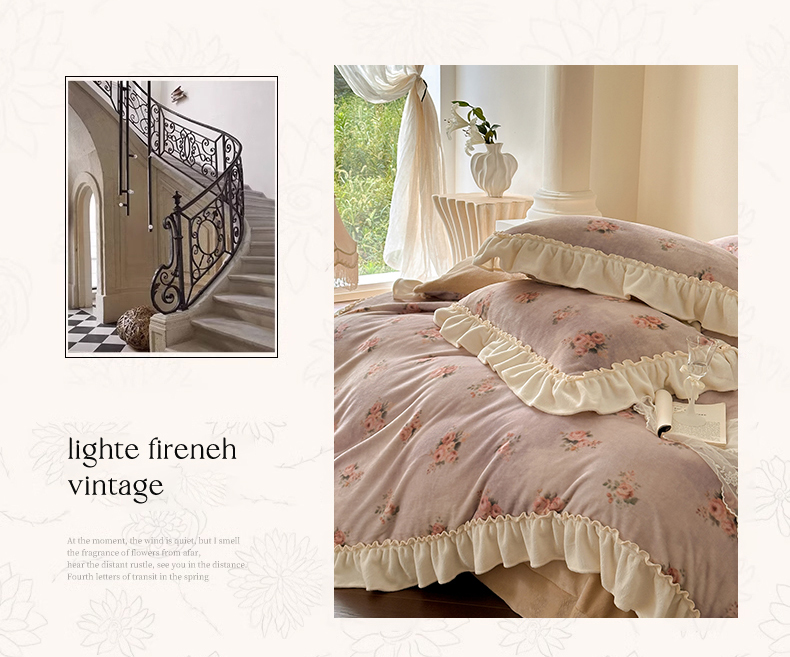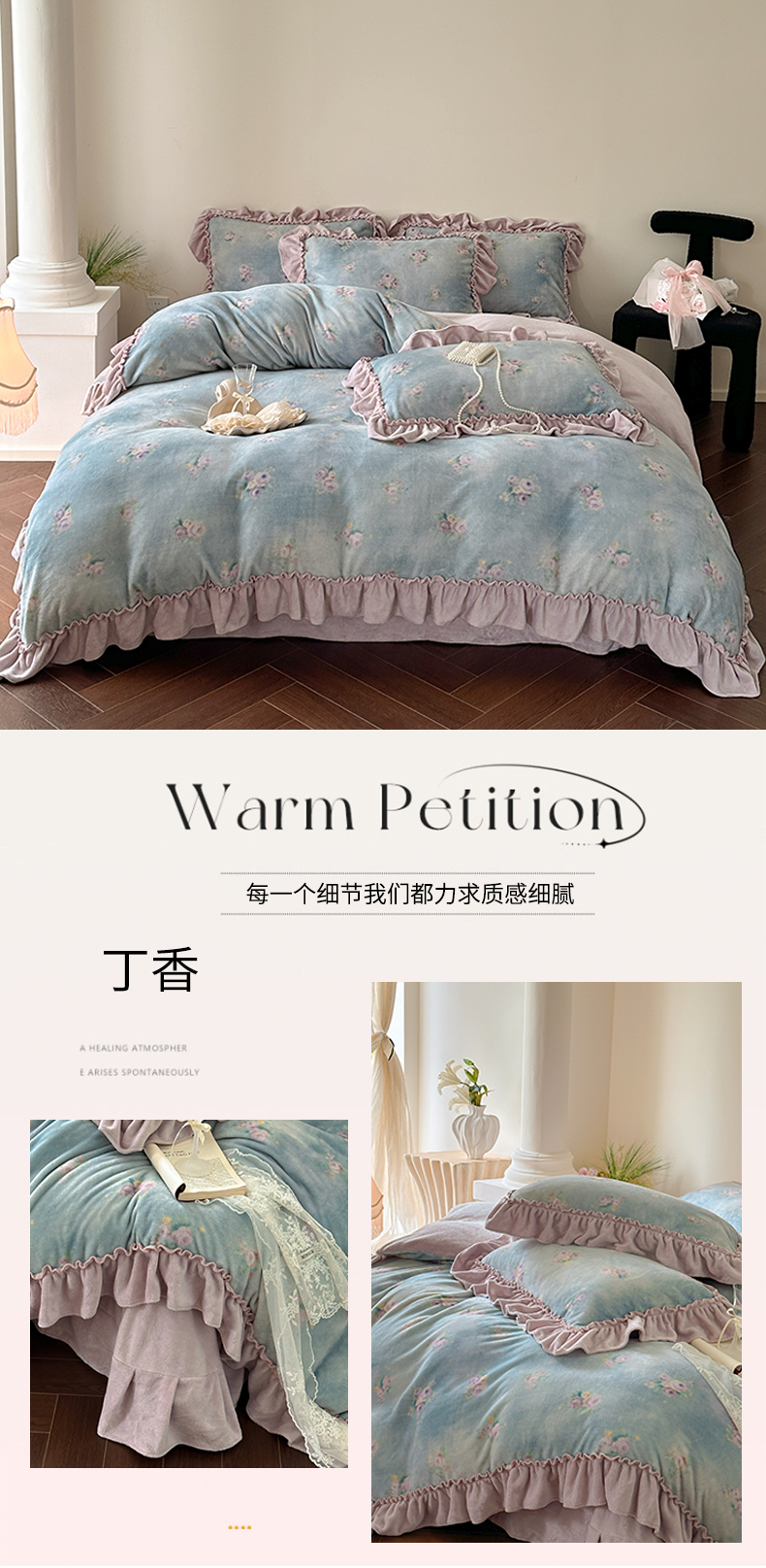 (总)一左一右 2025秋冬新款法式风复古数码印花高克重花边牛奶绒四件套-凯西亚(提供买家秀),凯西亚