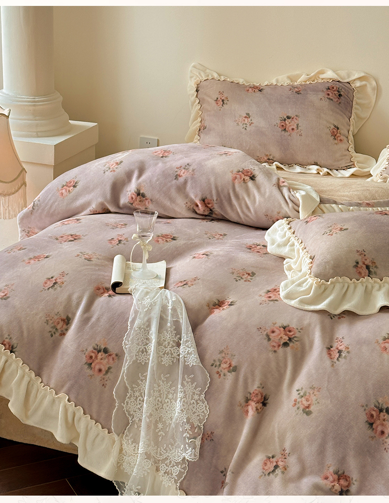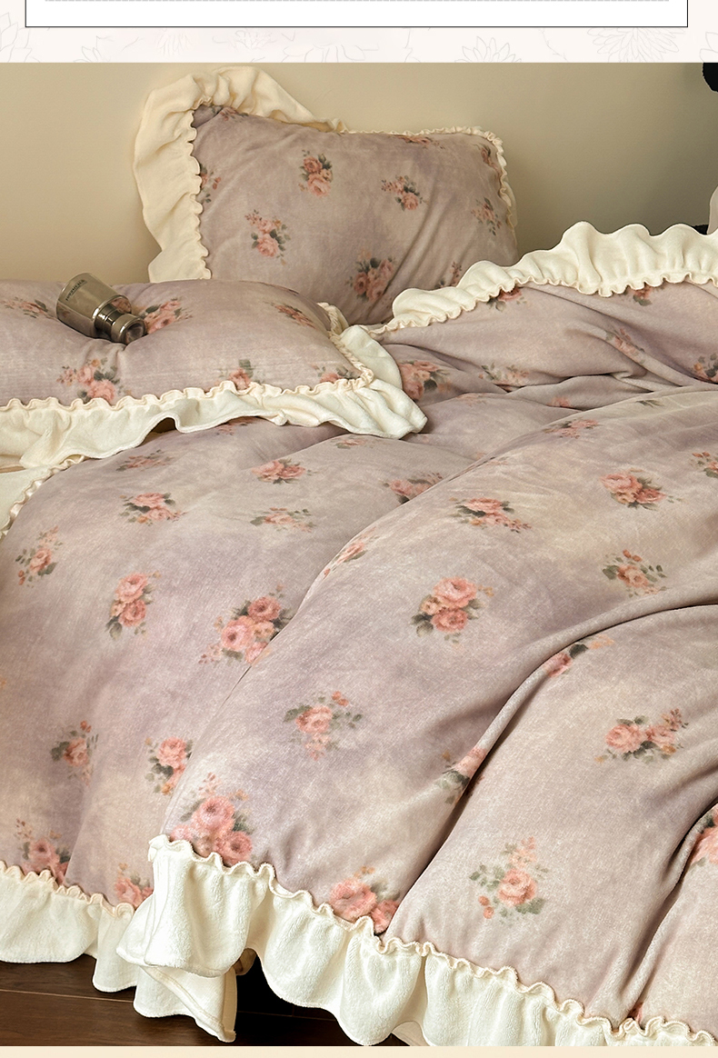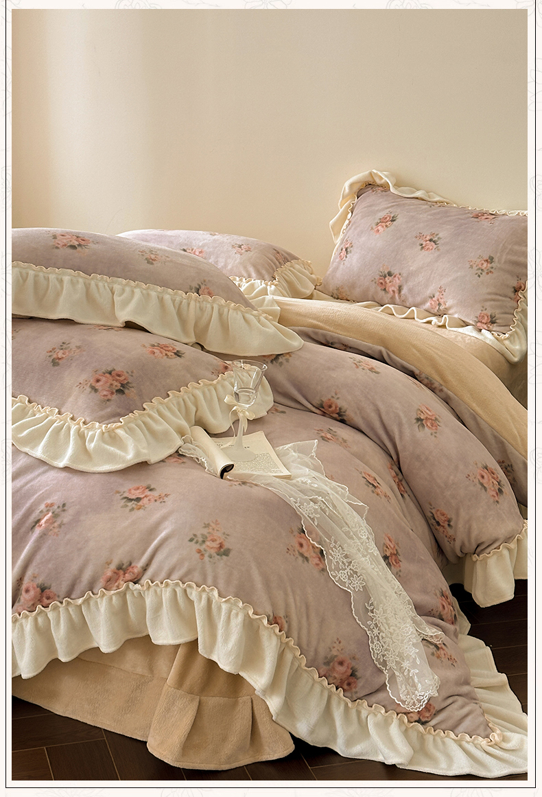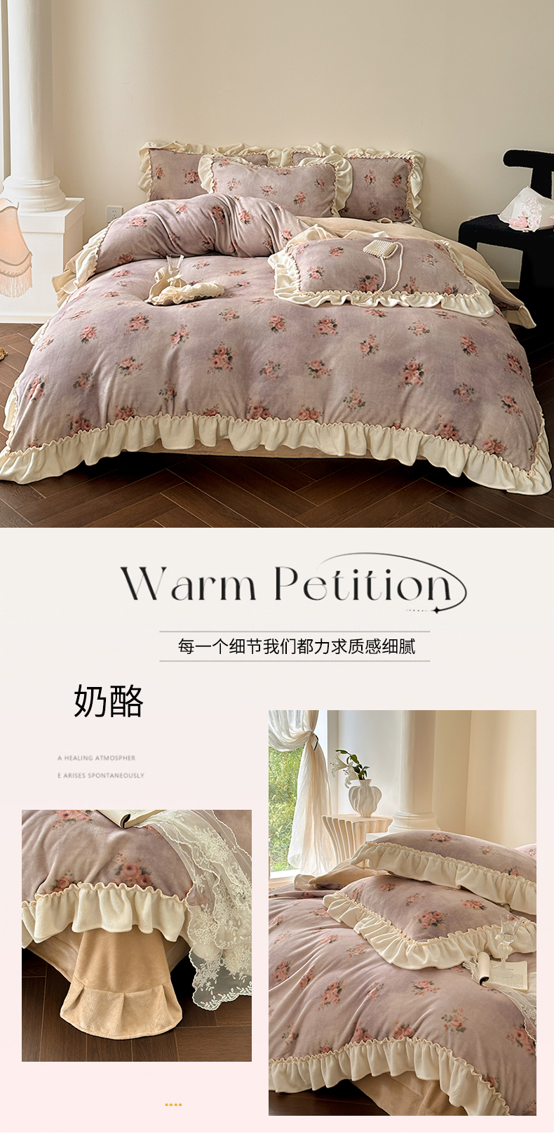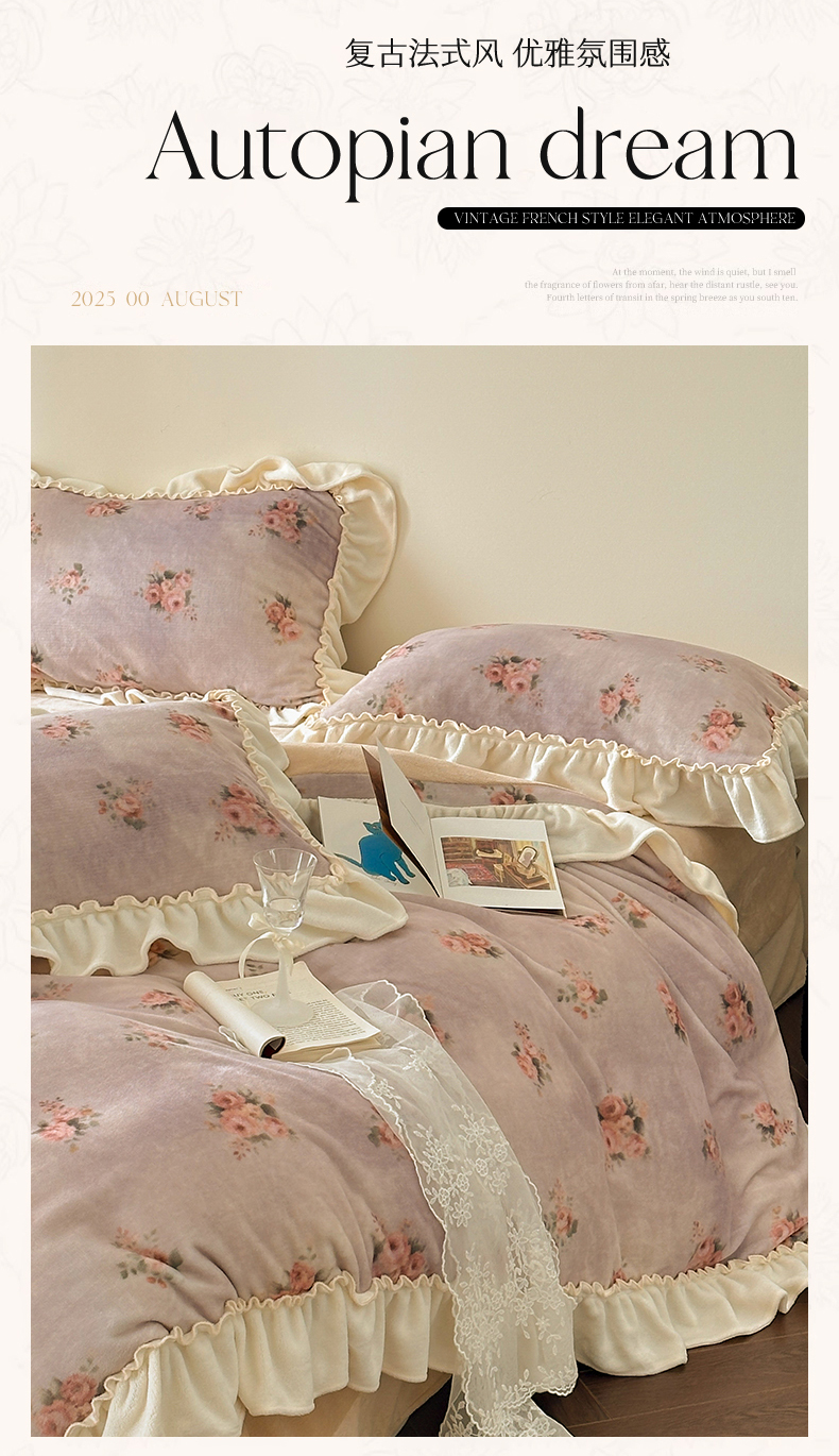 (总)一左一右 2025秋冬新款法式少女风数码印花高克重花边牛奶绒四件套-薄雾玫瑰(提供买家秀),薄雾玫瑰-奶酪,薄雾玫瑰-丁香