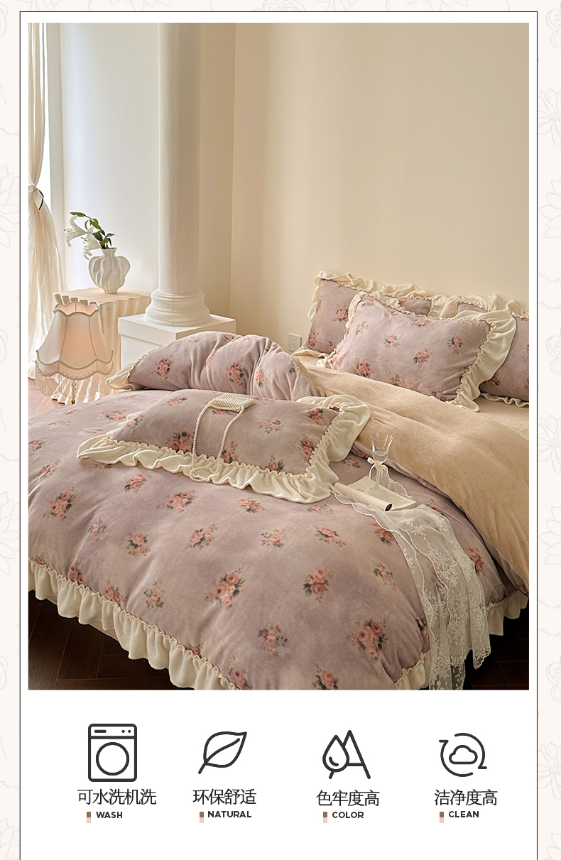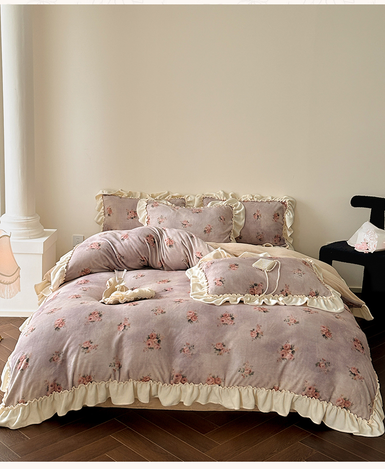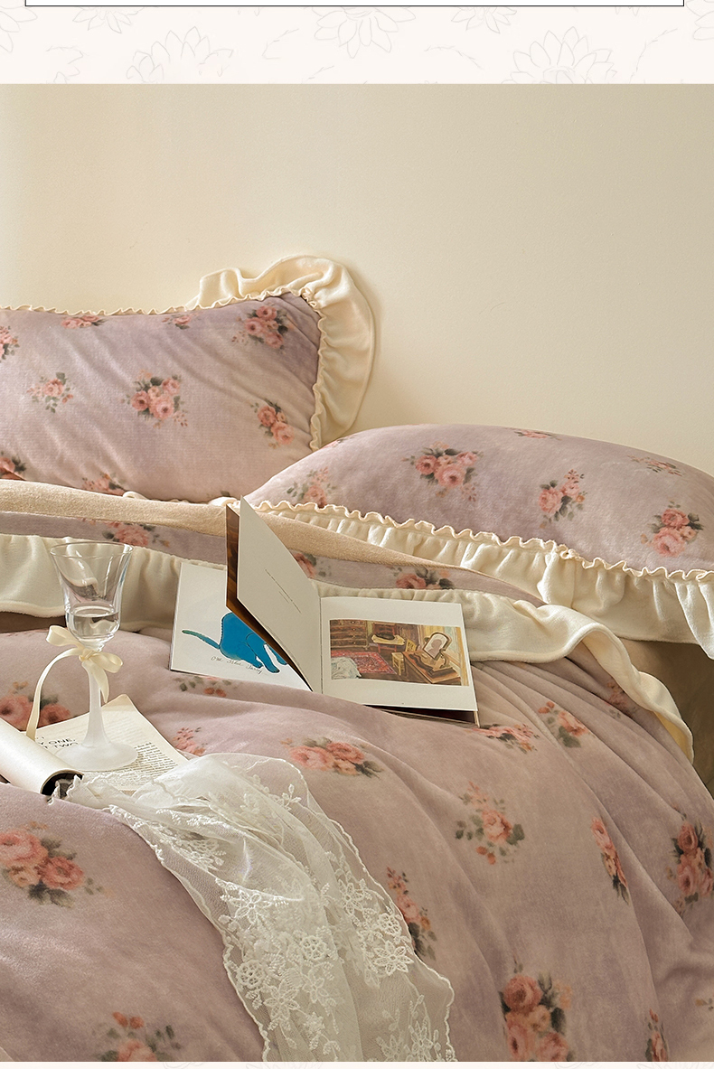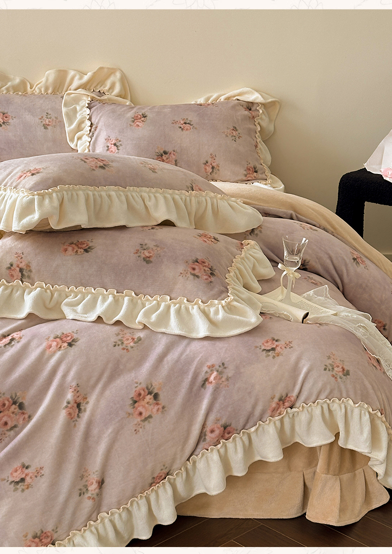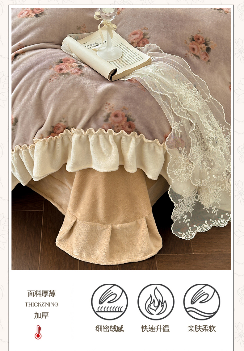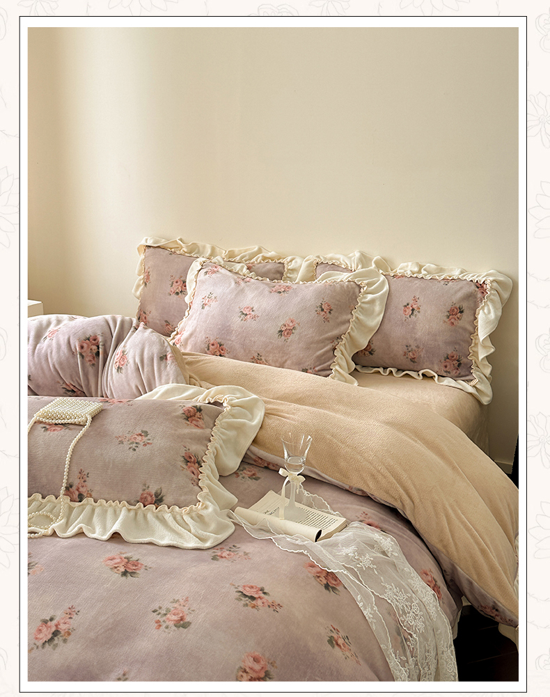 (总)一左一右 2025秋冬新款法式少女风数码印花高克重花边牛奶绒四件套-薄雾玫瑰(提供买家秀),薄雾玫瑰-奶酪,薄雾玫瑰-丁香