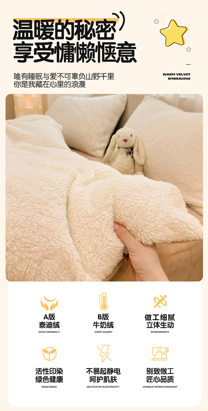 商品名称:(总)眠博士 2025新款A类泰迪绒牛奶绒纯色四件套