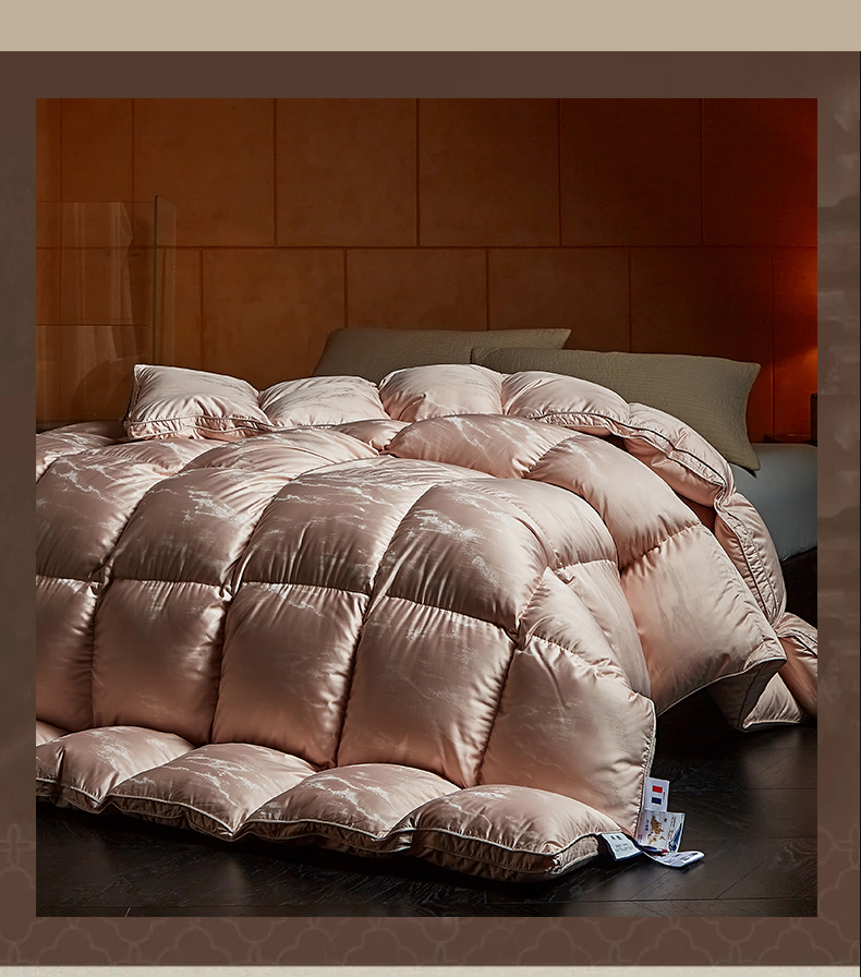 • 91家纺网 家纺一手货源 找家纺 (总)暖羽屋羽绒馆 2025新款白鹅绒丝被芯  羽绒丝被 羽毛被子 婚庆羽绒被 双人加厚冬被,恒运莱 金-角度一,恒运莱 金-角度二