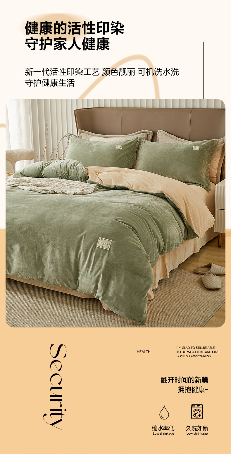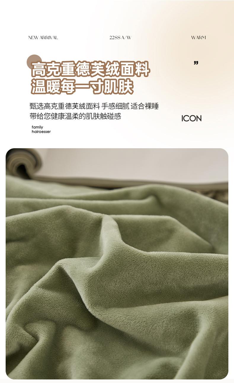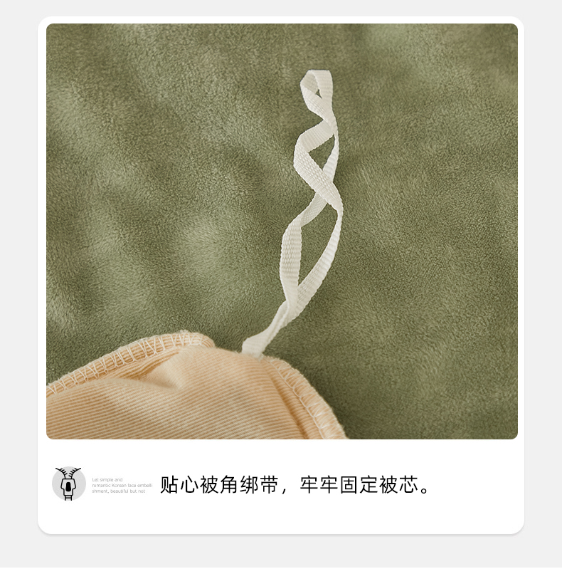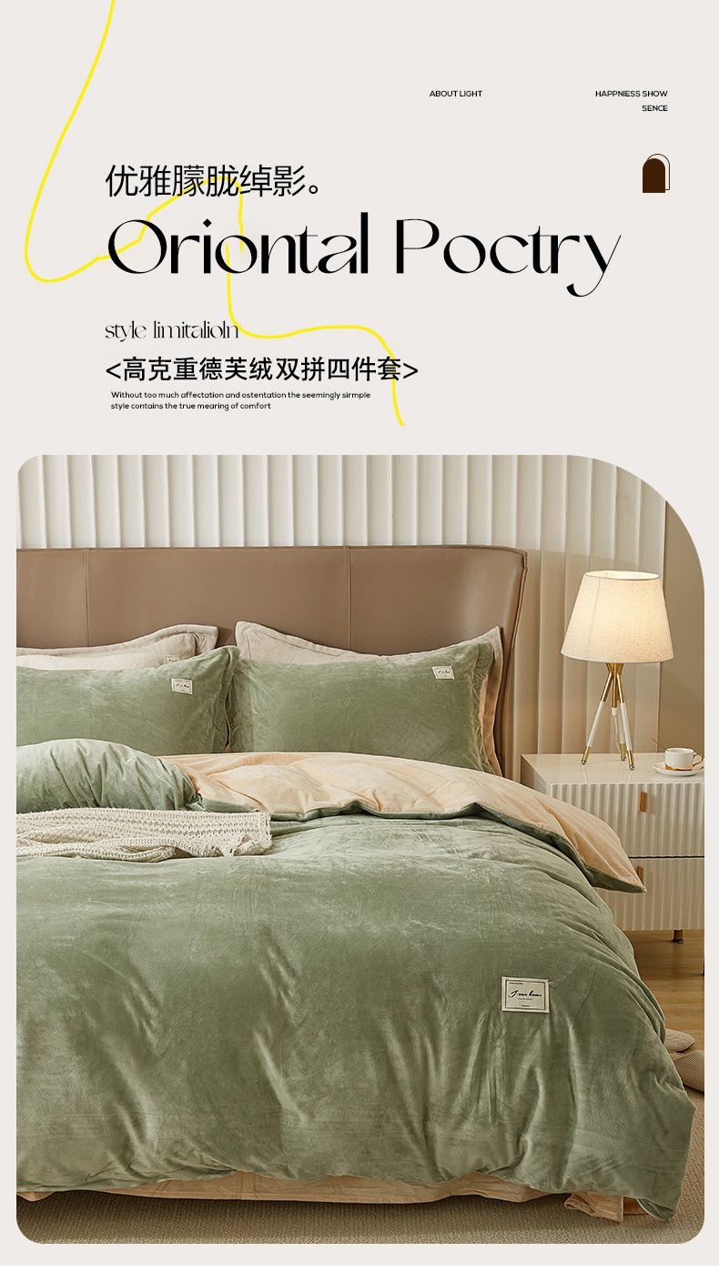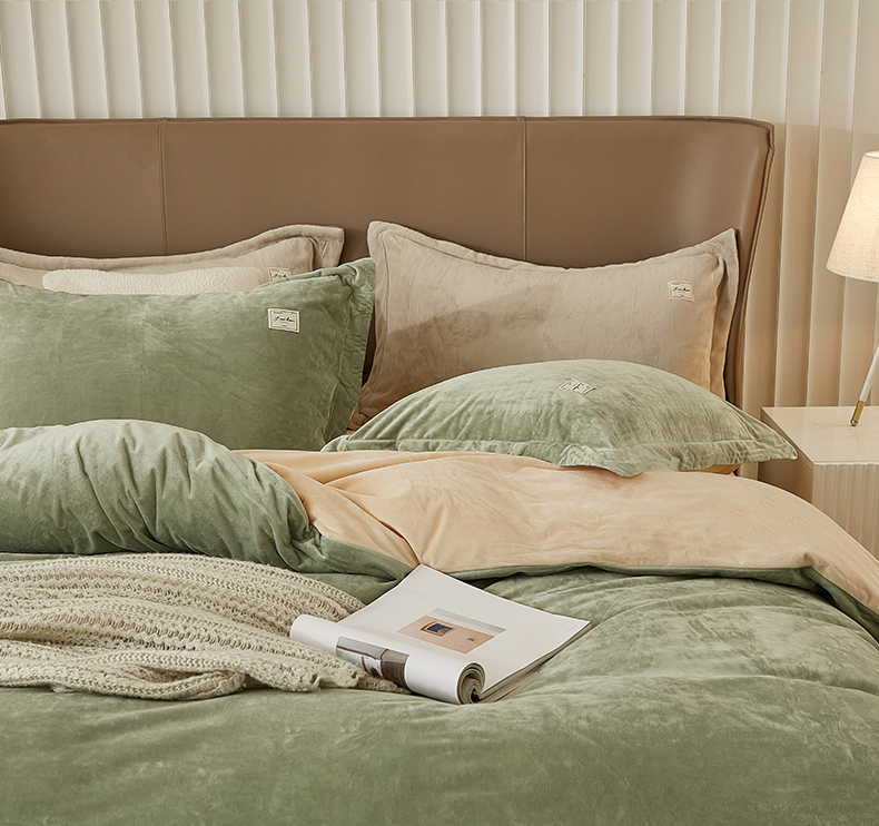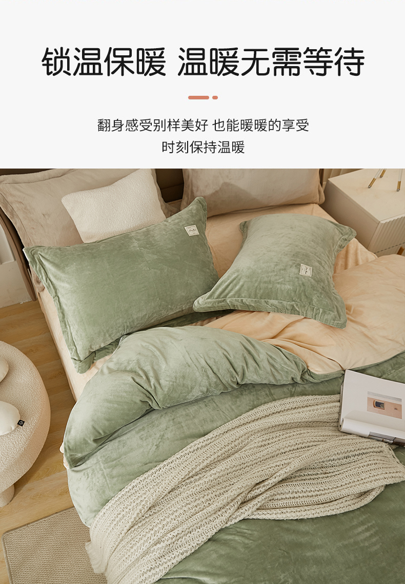 商品名称:悦然毛巾被 2025新款高克重德芙绒双拼四件套 浅豆绿杏仁