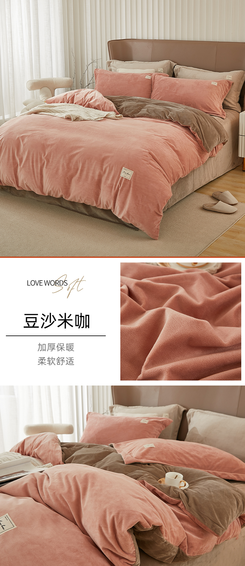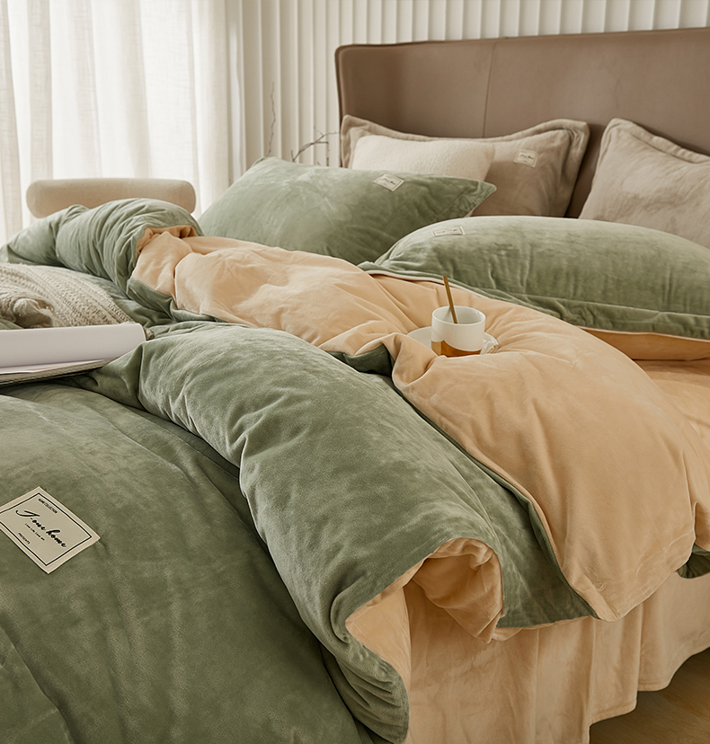 悦然毛巾被 2025新款高克重德芙绒双拼四件套 浅豆绿杏仁