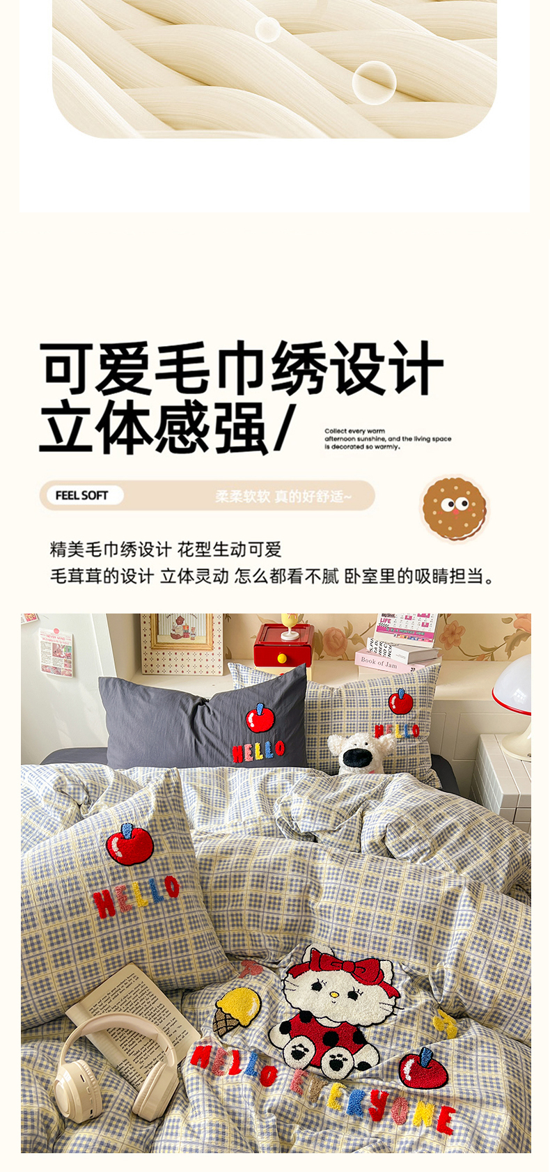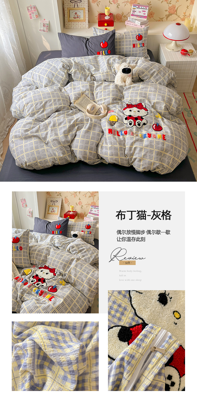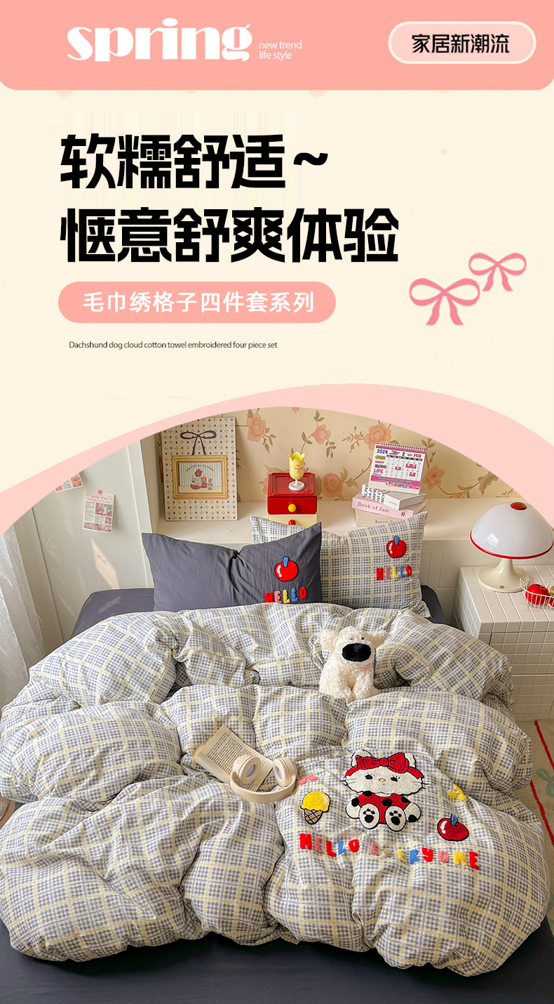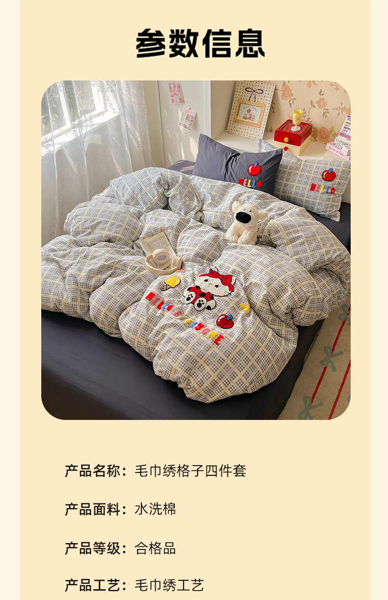 当前位置: 91家纺网 > 商品网购 > 床品套件 > 四件套 > 水洗棉四件套 > 凯洛奇 2025新款复古风格子皱皱纱水洗棉毛巾绣四件套 布丁猫-灰格