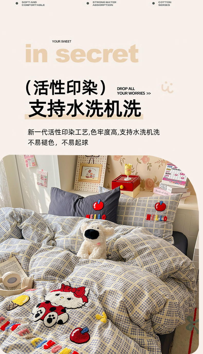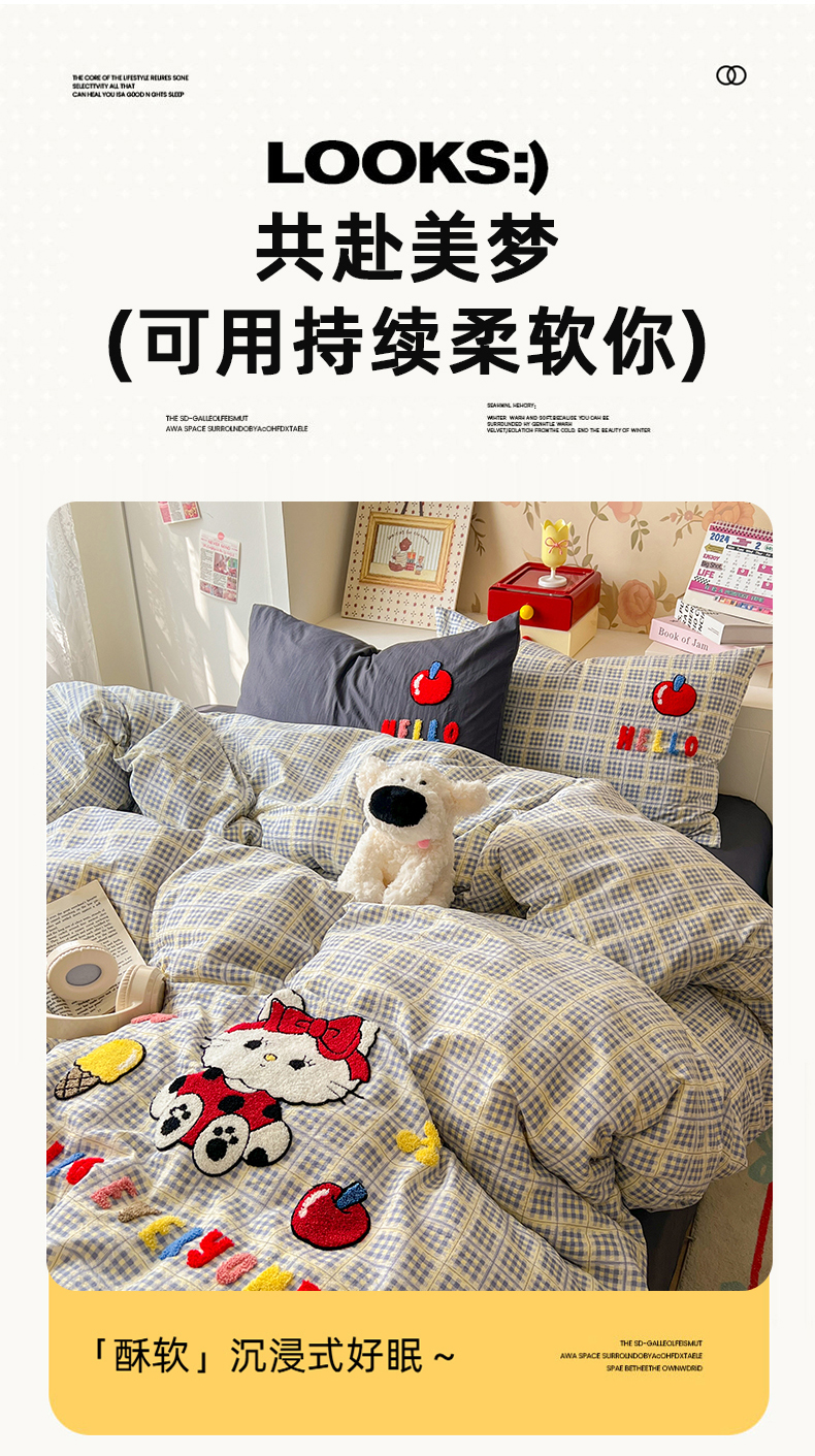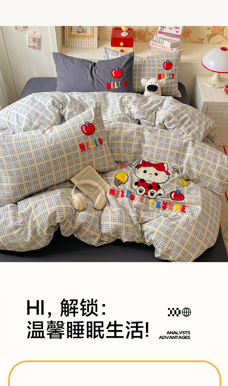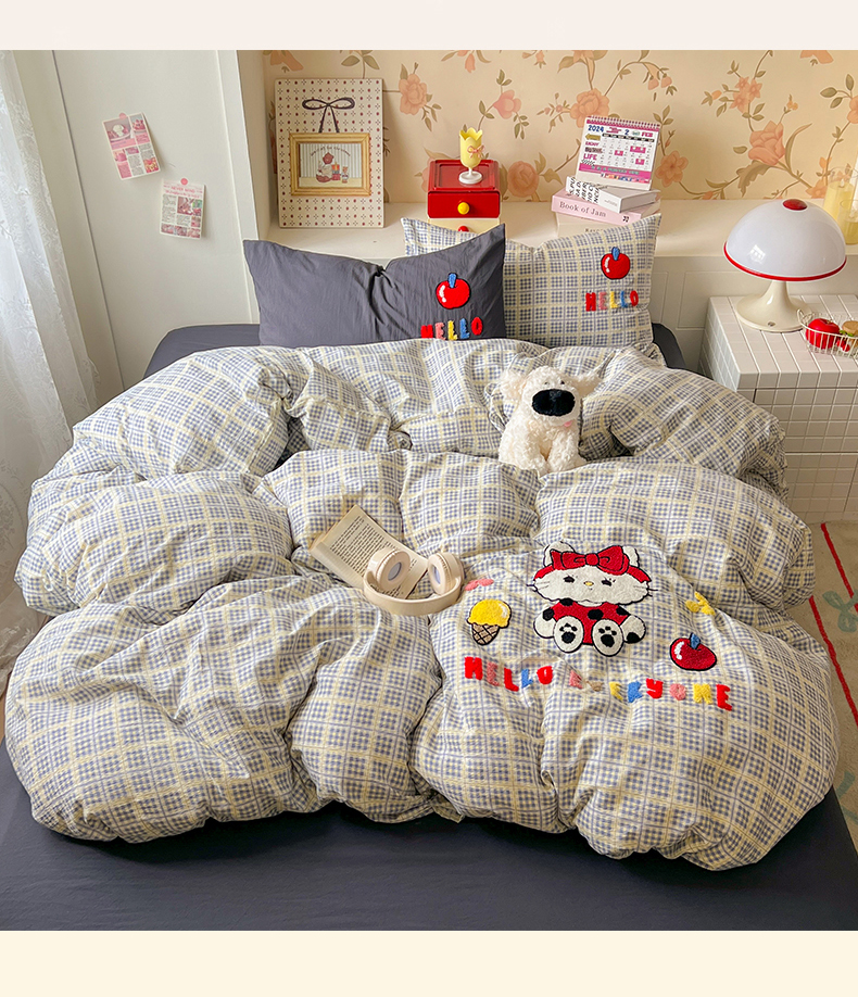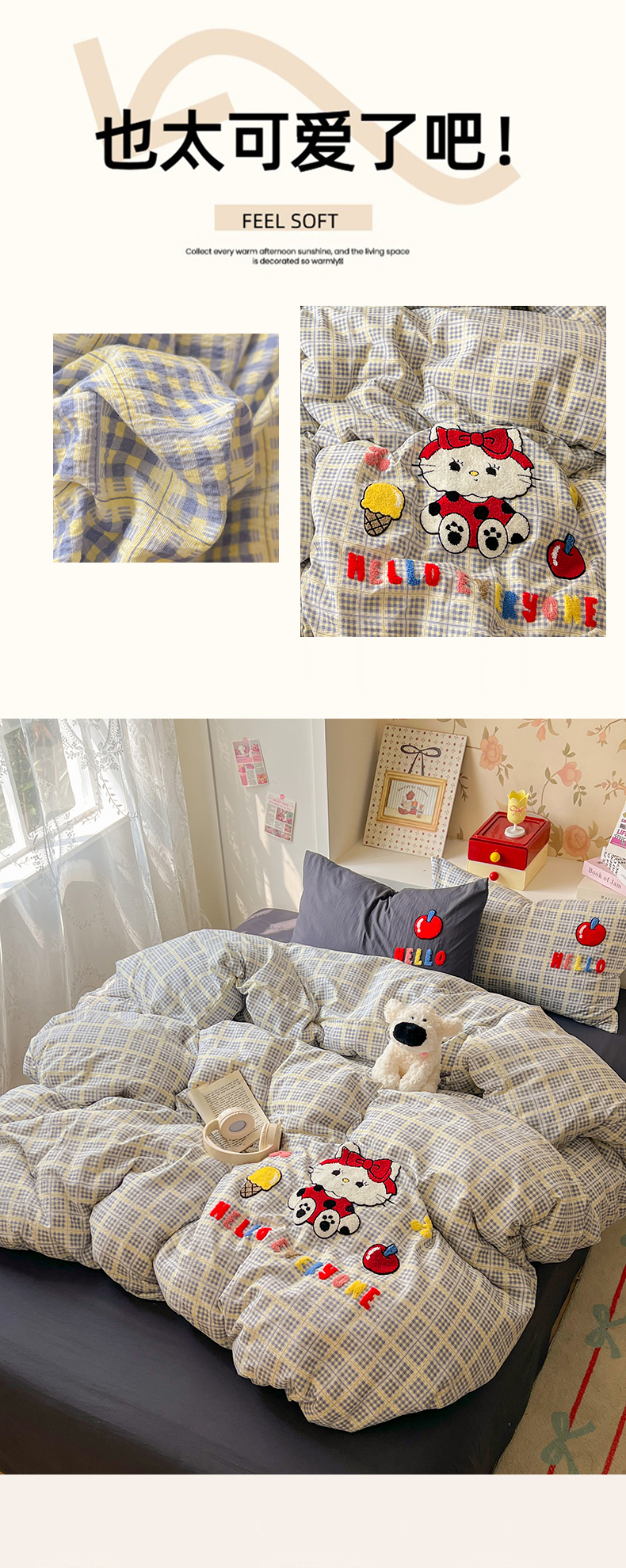 当前位置: 91家纺网 > 商品网购 > 床品套件 > 四件套 > 水洗棉四件套 > 凯洛奇 2025新款复古风格子皱皱纱水洗棉毛巾绣四件套 布丁猫-灰格