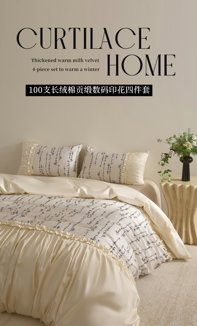 (总)ONE TWO ONE 1212025新款100S长绒棉纯棉活性印染提花四件套雪落绒花风格二【为了各位老板们都有利润空间,平台控价券后不得低于228/318/338元,感谢您的配合与支持!】,雪落绒花-灰,雪落绒花-烟紫