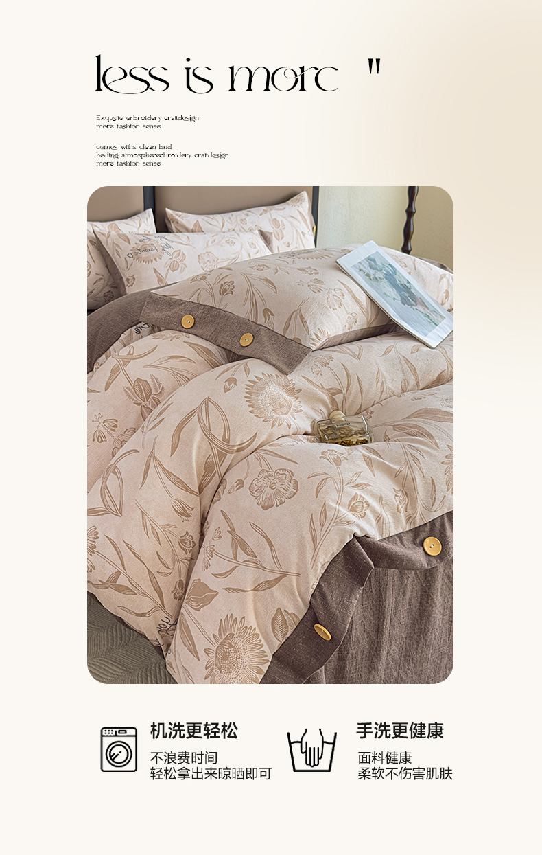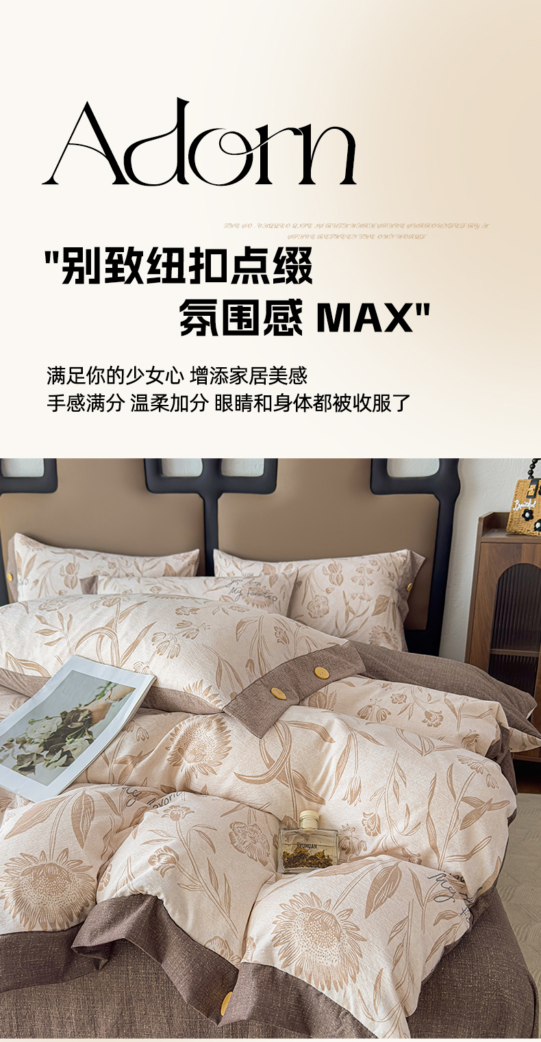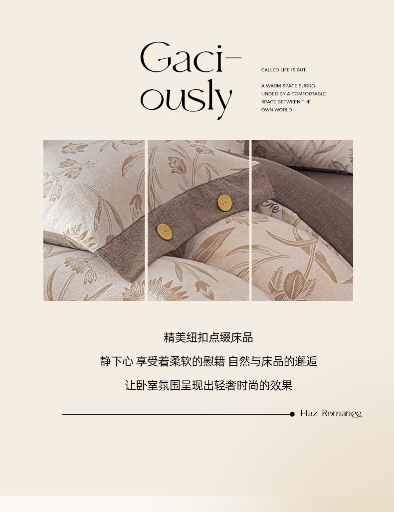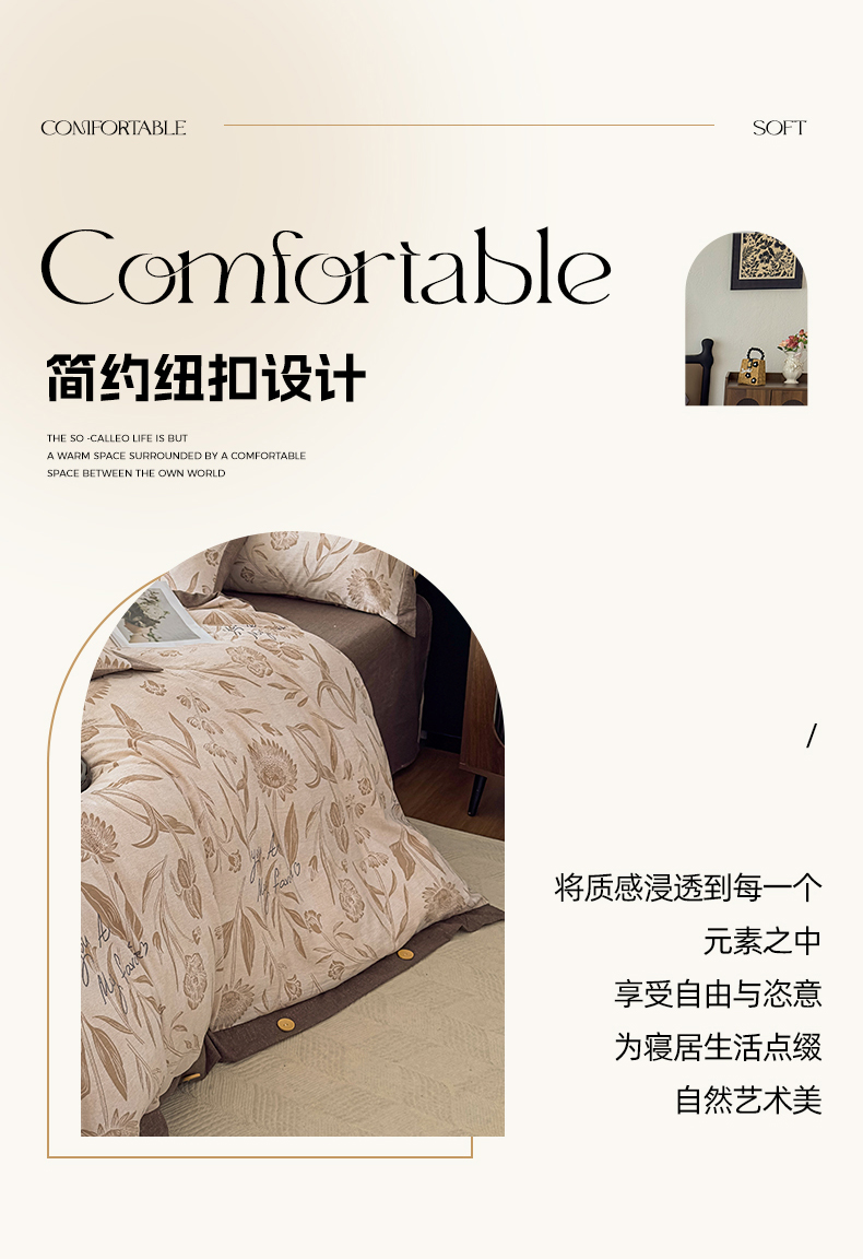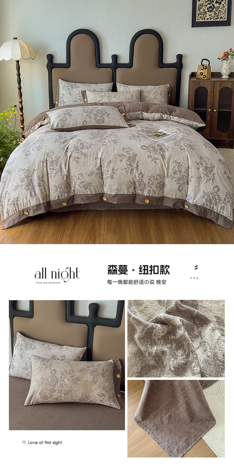 当前位置: 91家纺网 > 商品网购 > 床品套件 > 四件套 > 其它四件套 > 丝芙妮家居(原乐视家纺) 2025新款原麻纽扣款四件套 叶新泽-咖·纽扣款