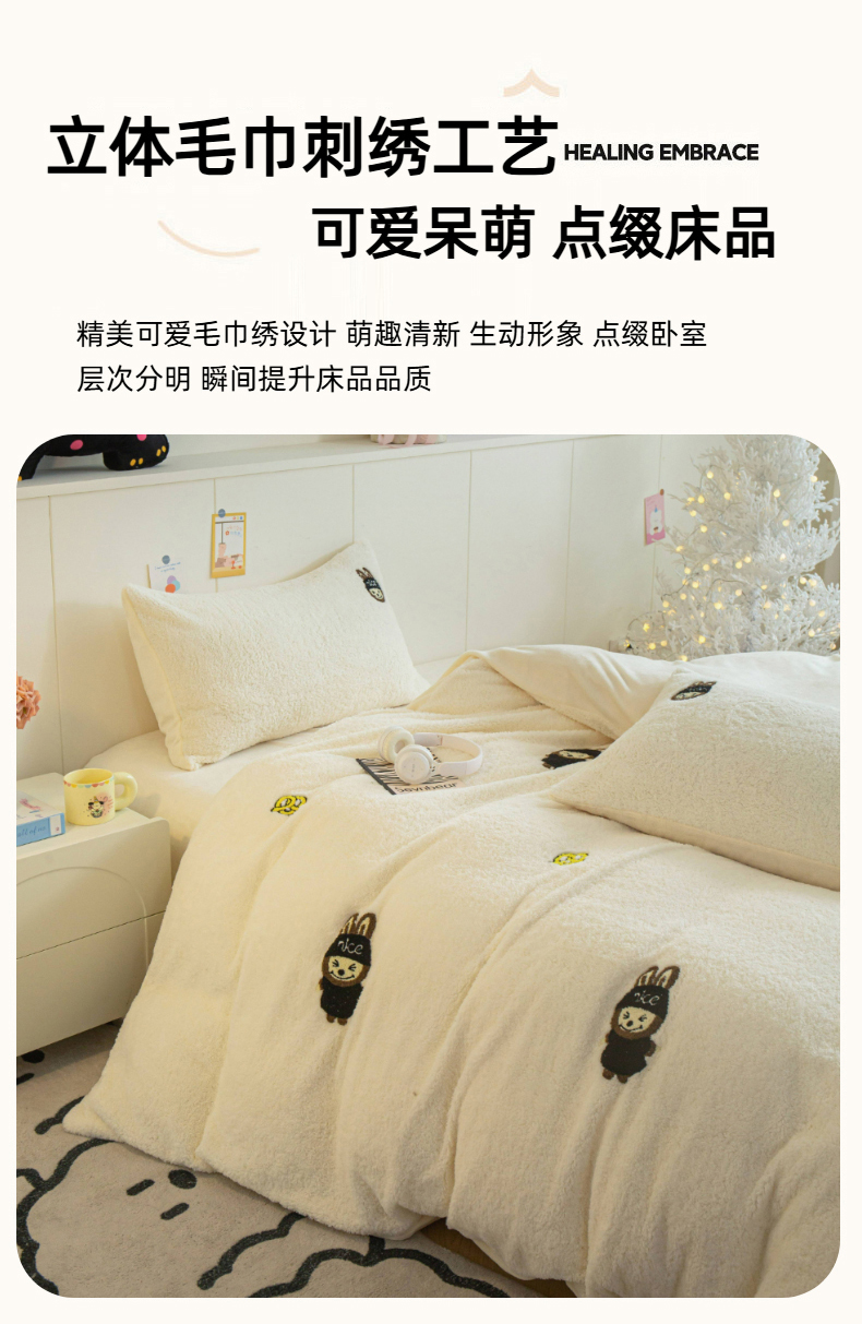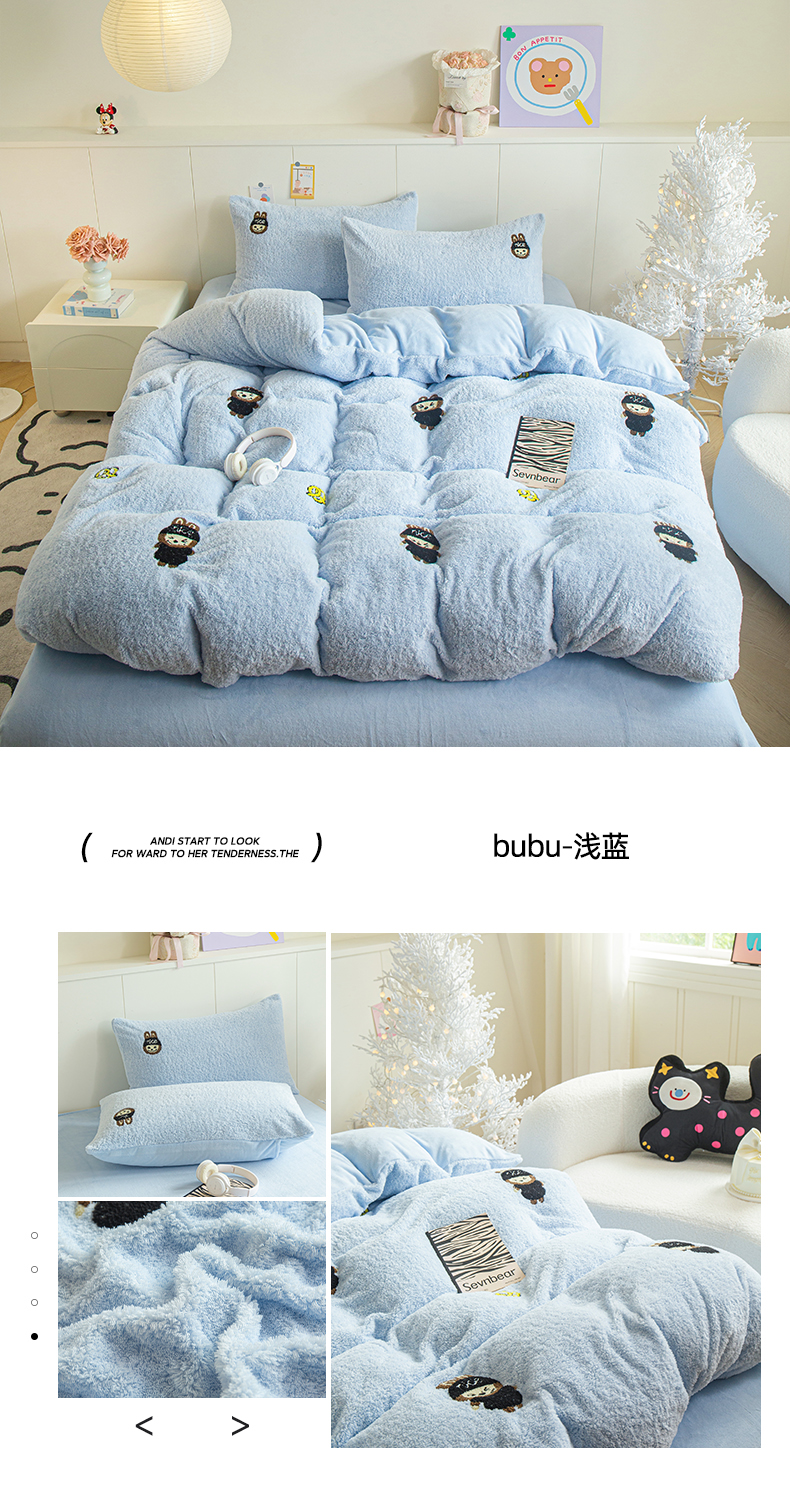 (总)庭笙 2025新款高克重泰迪绒毛巾刺绣牛奶绒四件套,bubu-米白,爱心-粉,爱心-紫,bubu-浅蓝,bubu-奶咖