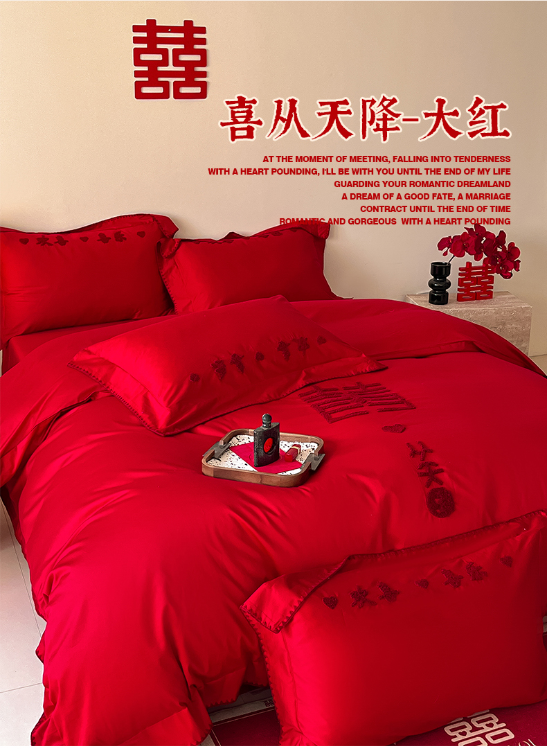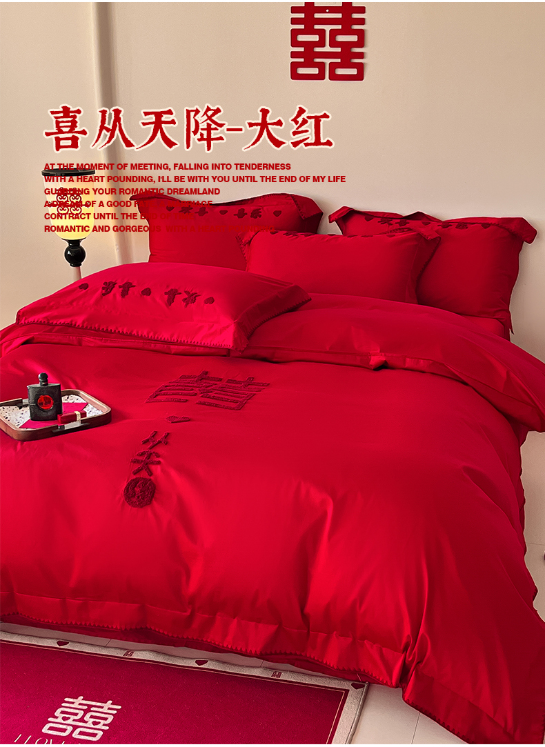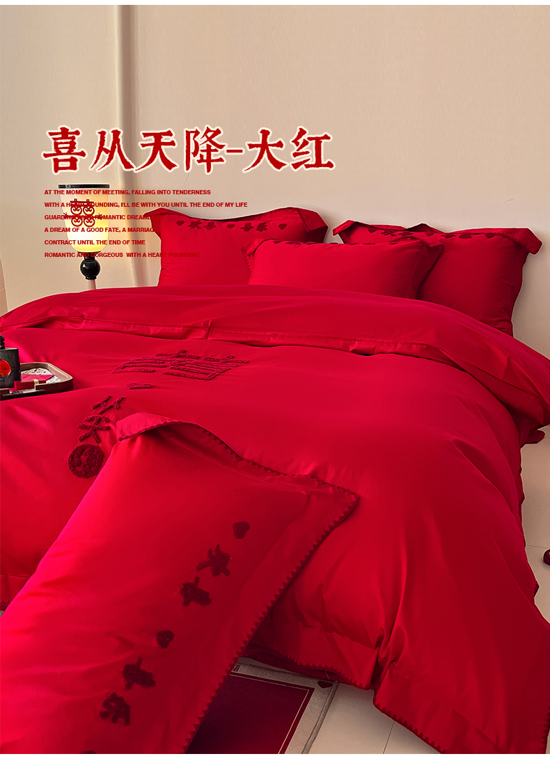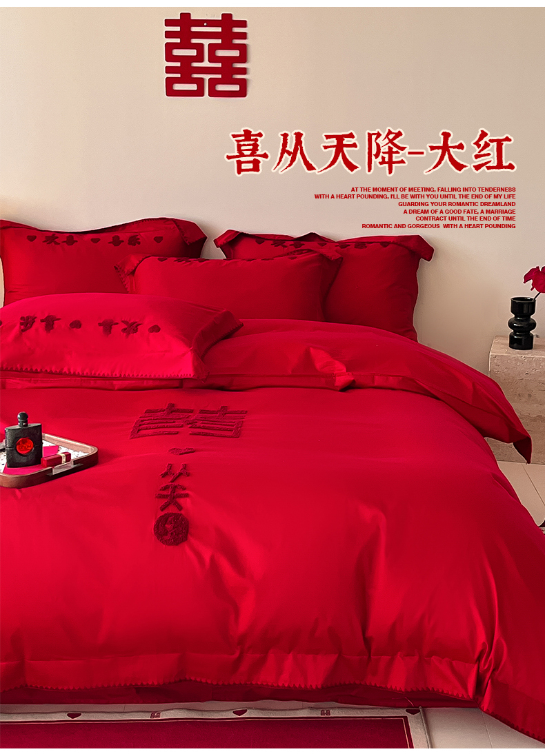 当前位置: 91家纺网 > 商品网购 > 床品套件 > 四件套 > 婚庆四件套 > 置顶家纺 2025新款亲肤磨毛刺绣婚庆四件套系列-实拍 喜从天降-大红