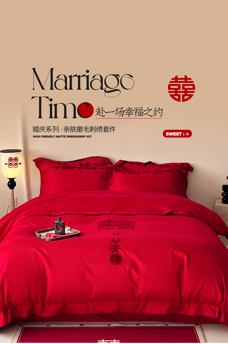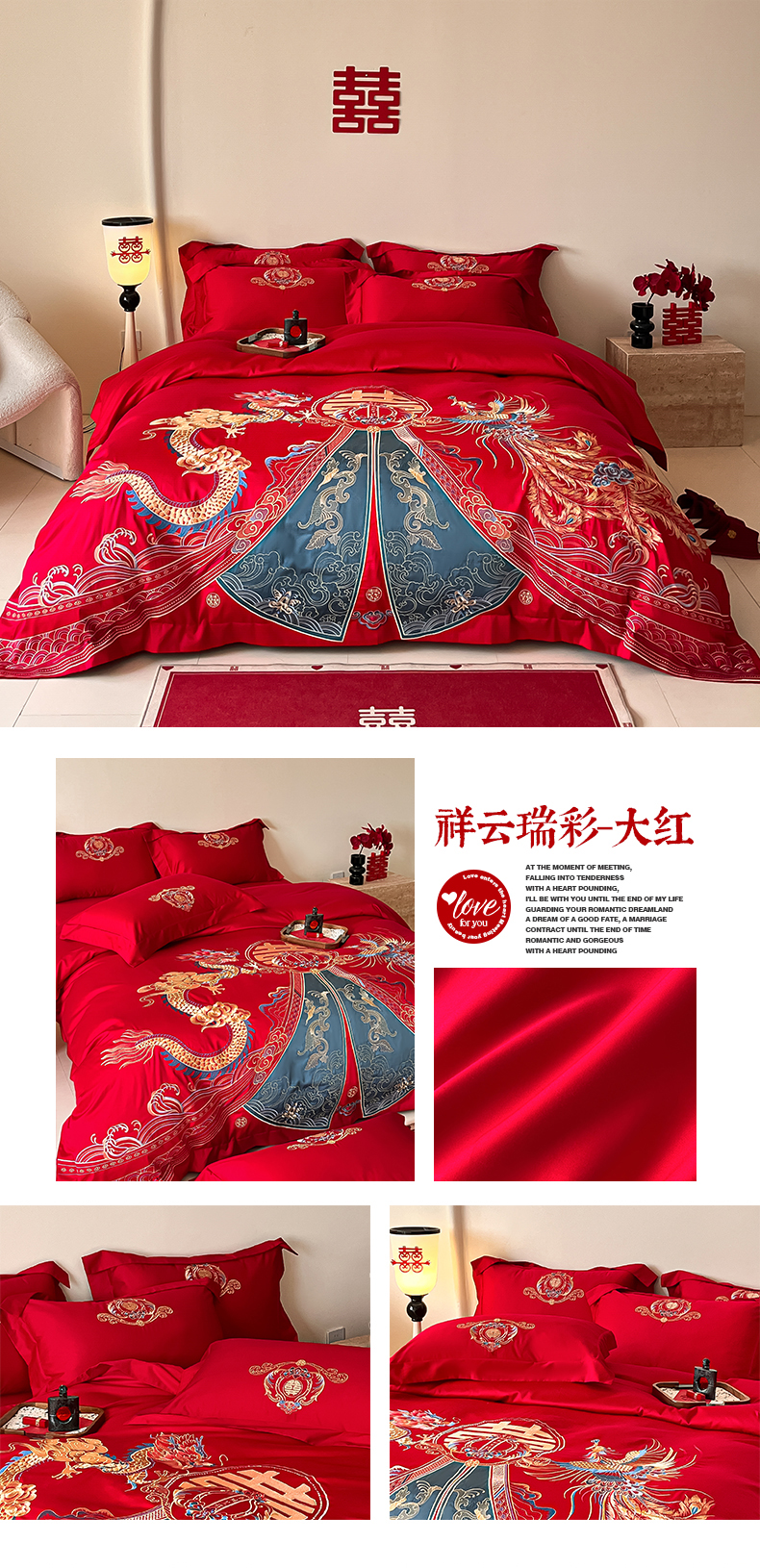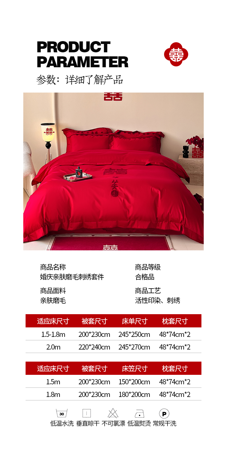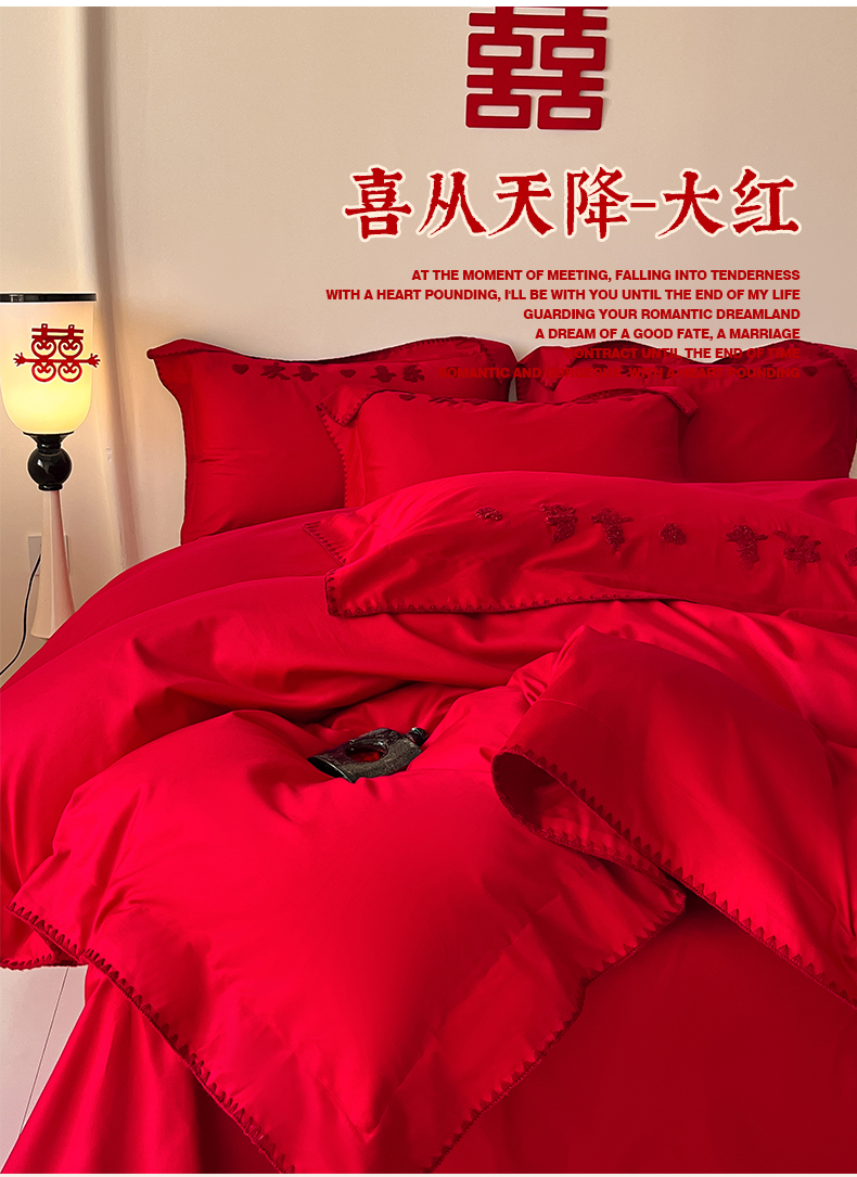 当前位置: 91家纺网 > 商品网购 > 床品套件 > 四件套 > 婚庆四件套 > 置顶家纺 2025新款亲肤磨毛刺绣婚庆四件套系列-实拍 喜从天降-大红