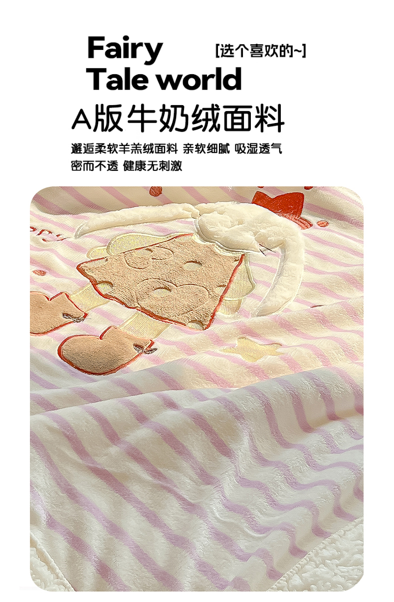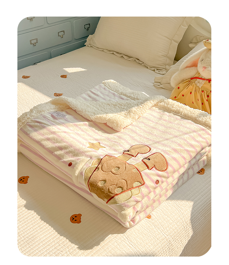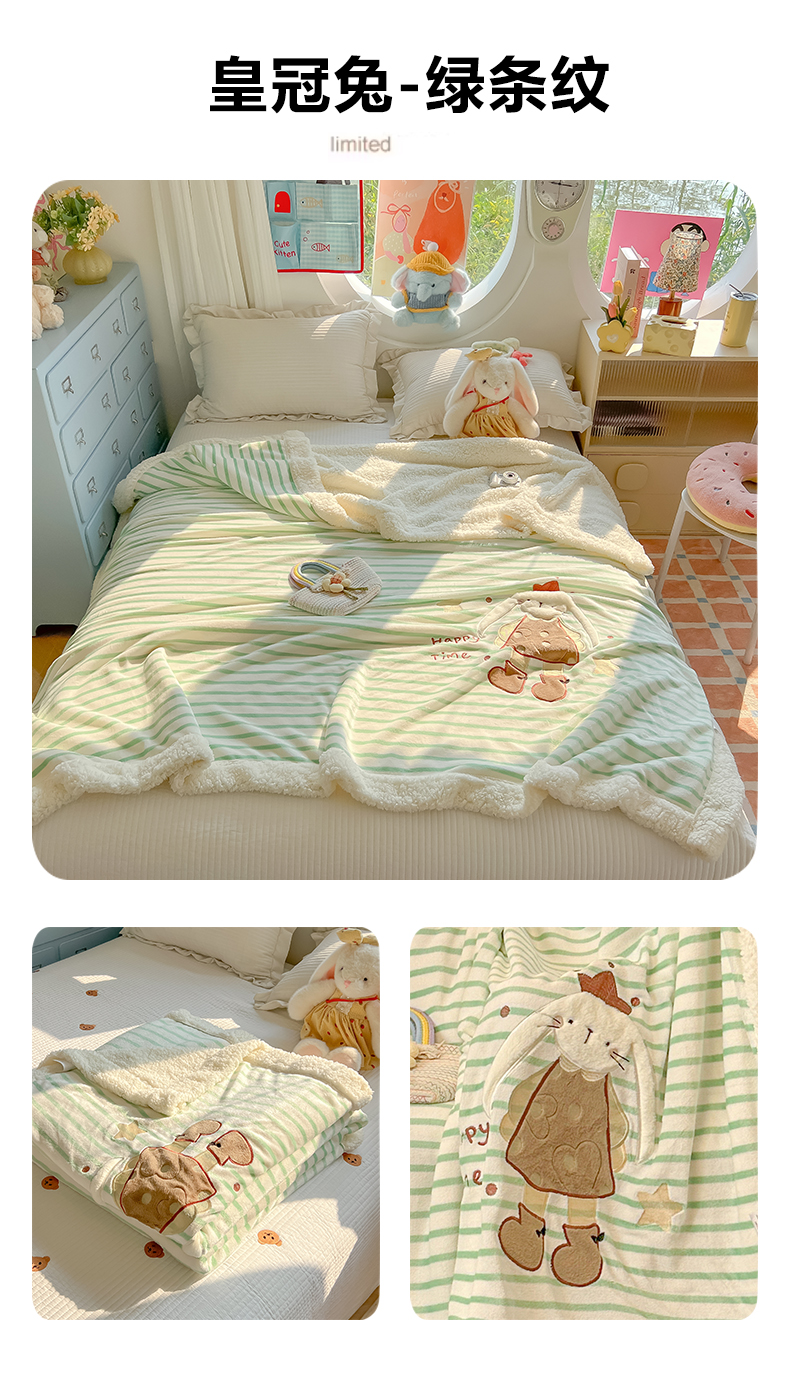 商品名称:子钦家纺 2025新款牛奶绒条纹贴布绣翻边毛毯 组合图