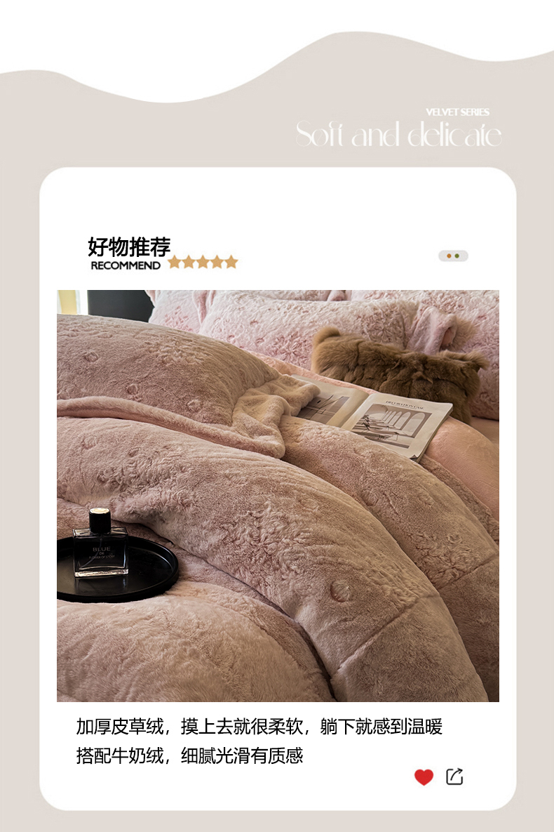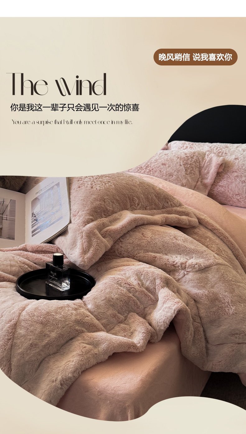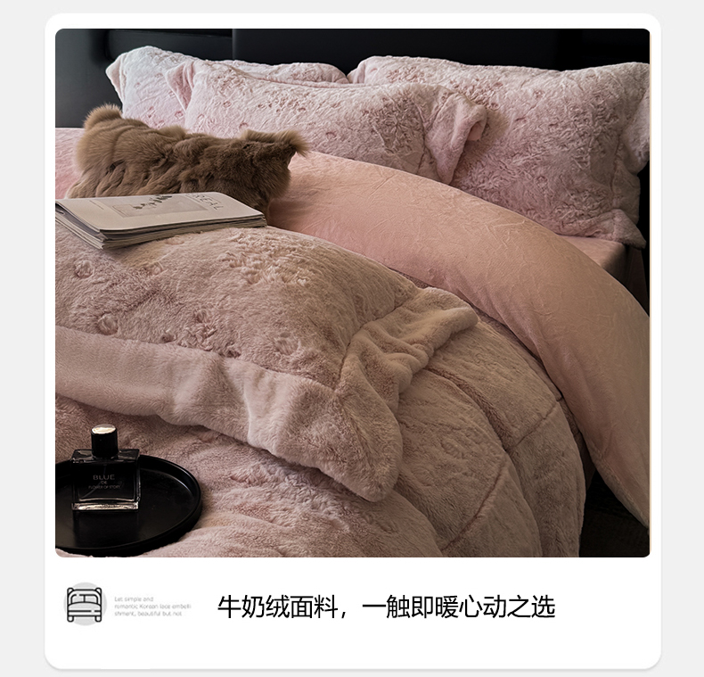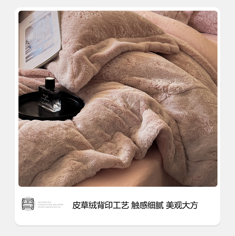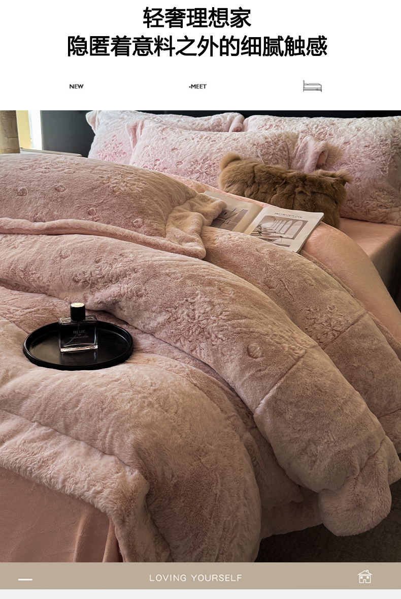 当前位置: 91家纺网 > 商品网购 > 床品套件 > 四件套 > 其它四件套 > 丞音家纺 2025秋冬新款A类轻奢皮草绒加厚水貂绒保暖牛奶绒床上用品珊瑚绒四件套床单被套 路易斯-豆沙粉