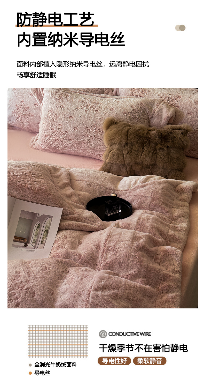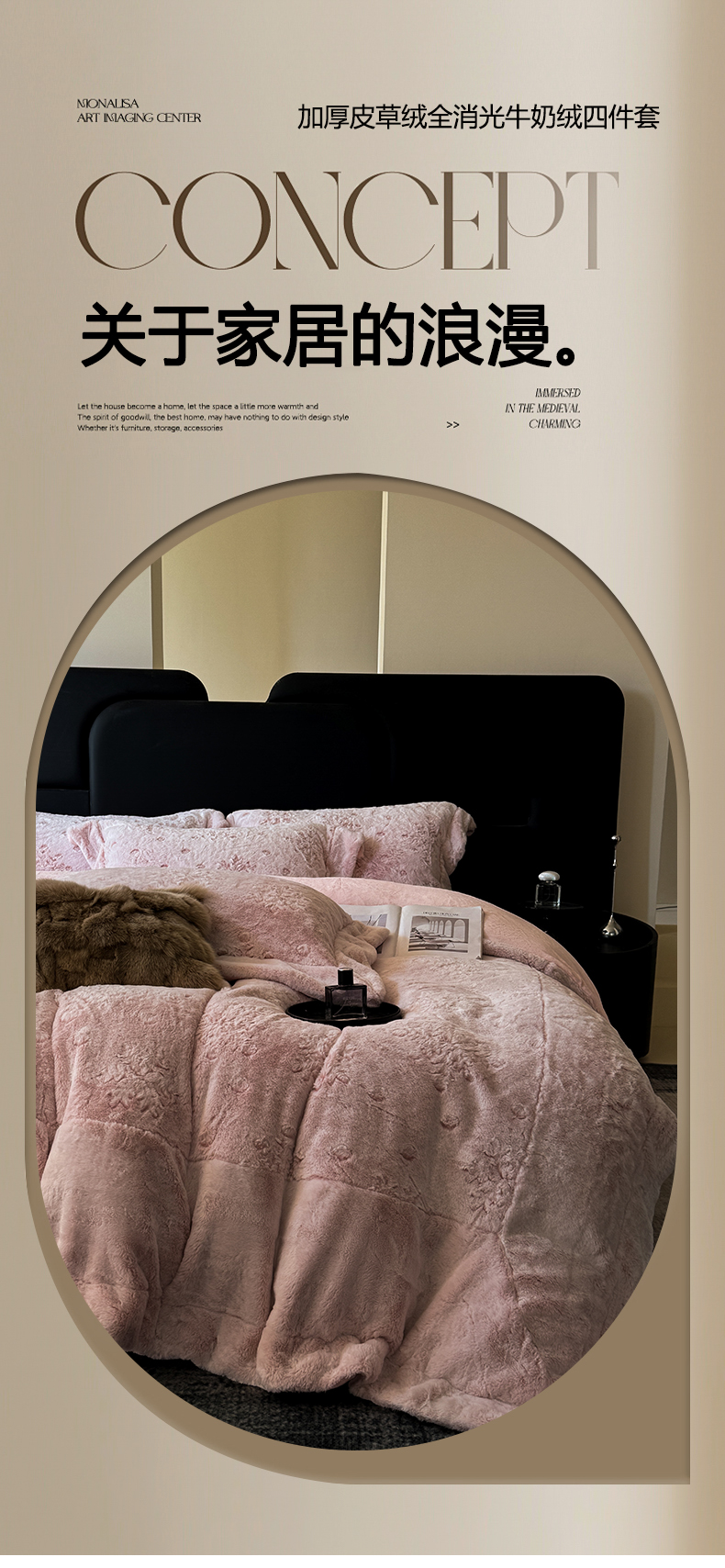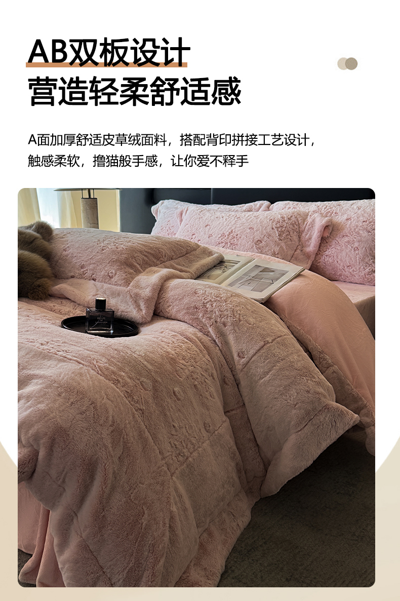 当前位置: 91家纺网 > 商品网购 > 床品套件 > 四件套 > 其它四件套 > 丞音家纺 2025秋冬新款A类轻奢皮草绒加厚水貂绒保暖牛奶绒床上用品珊瑚绒四件套床单被套 路易斯-豆沙粉