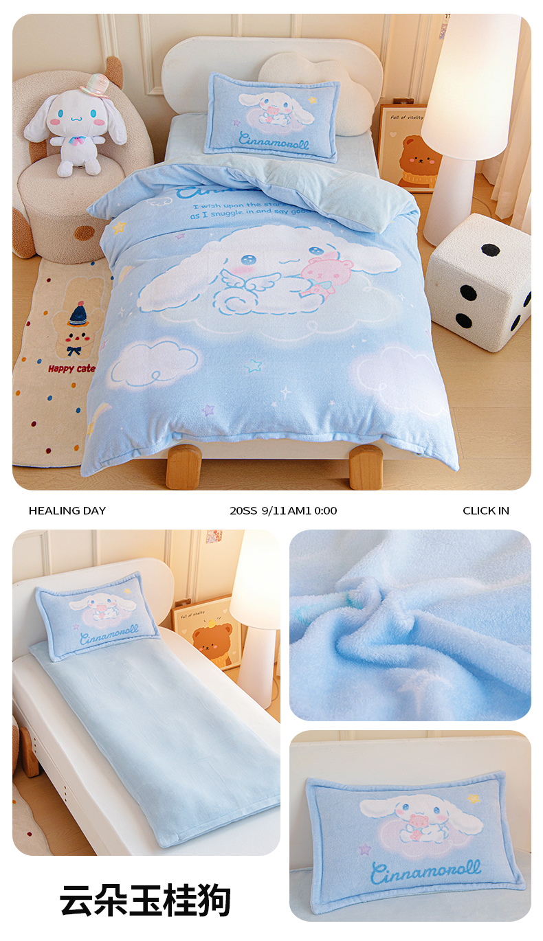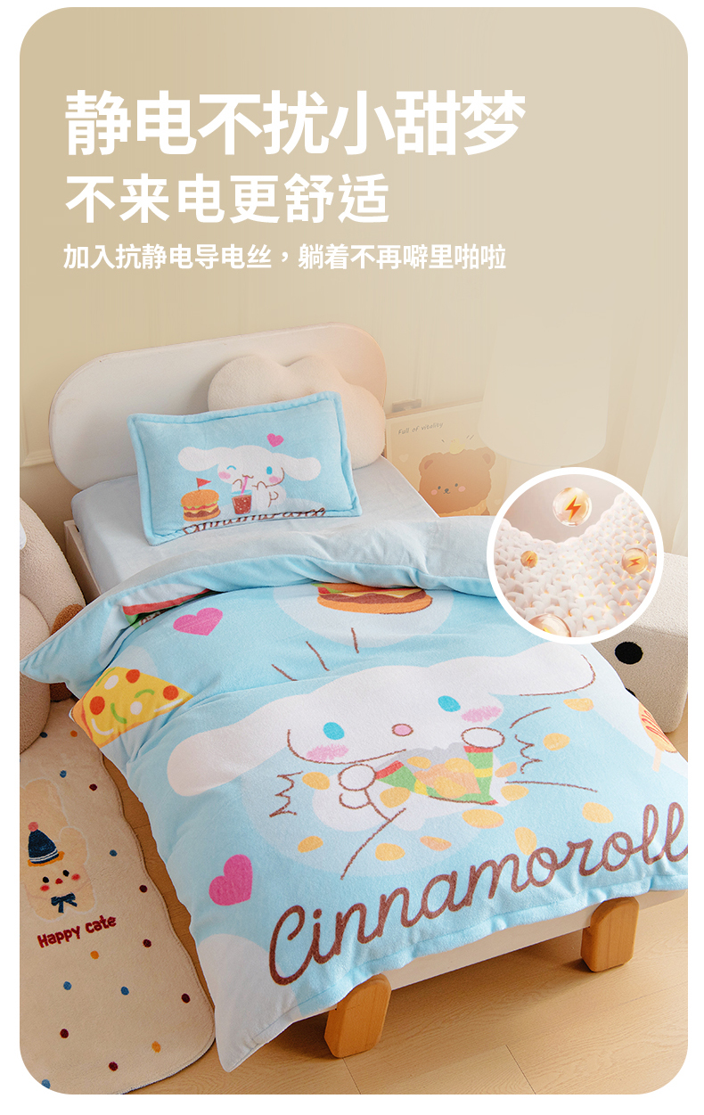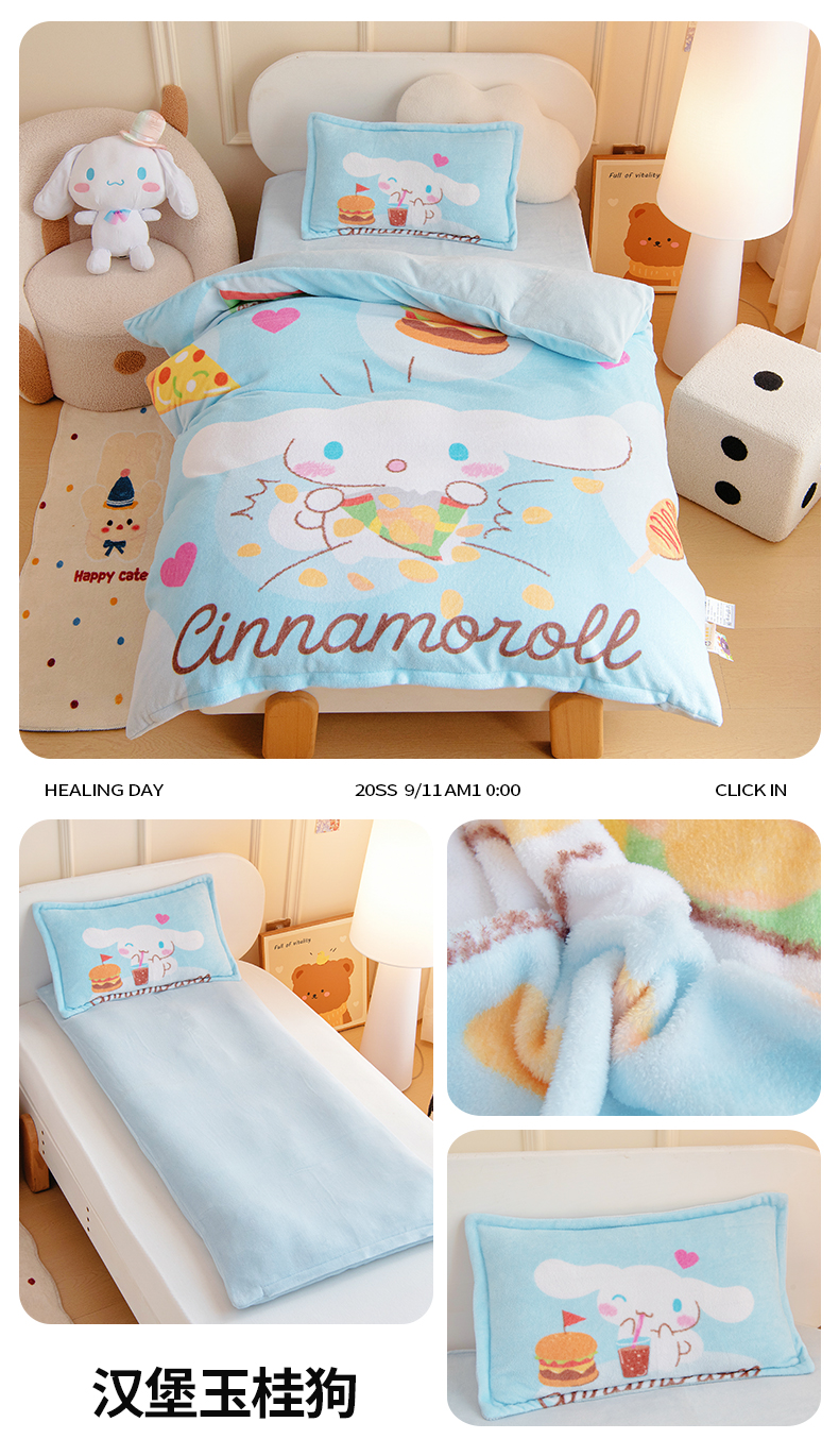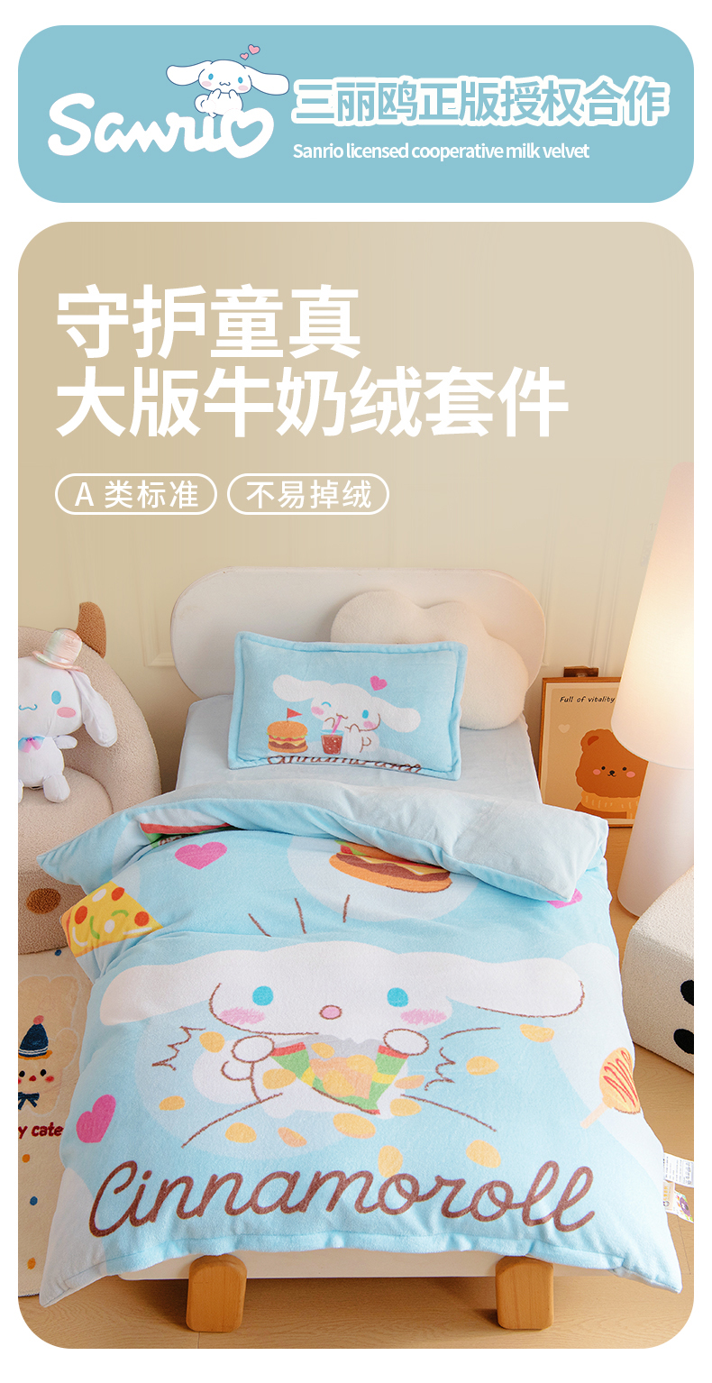 当前位置: 91家纺网 > 商品网购 > 床品套件 > 四件套 > 牛奶绒四件套 > 吉咪兔家纺 2025新款大版三丽鸥库洛米美乐蒂牛奶绒幼儿园被子三件套保暖被褥六件套 汉堡玉桂狗