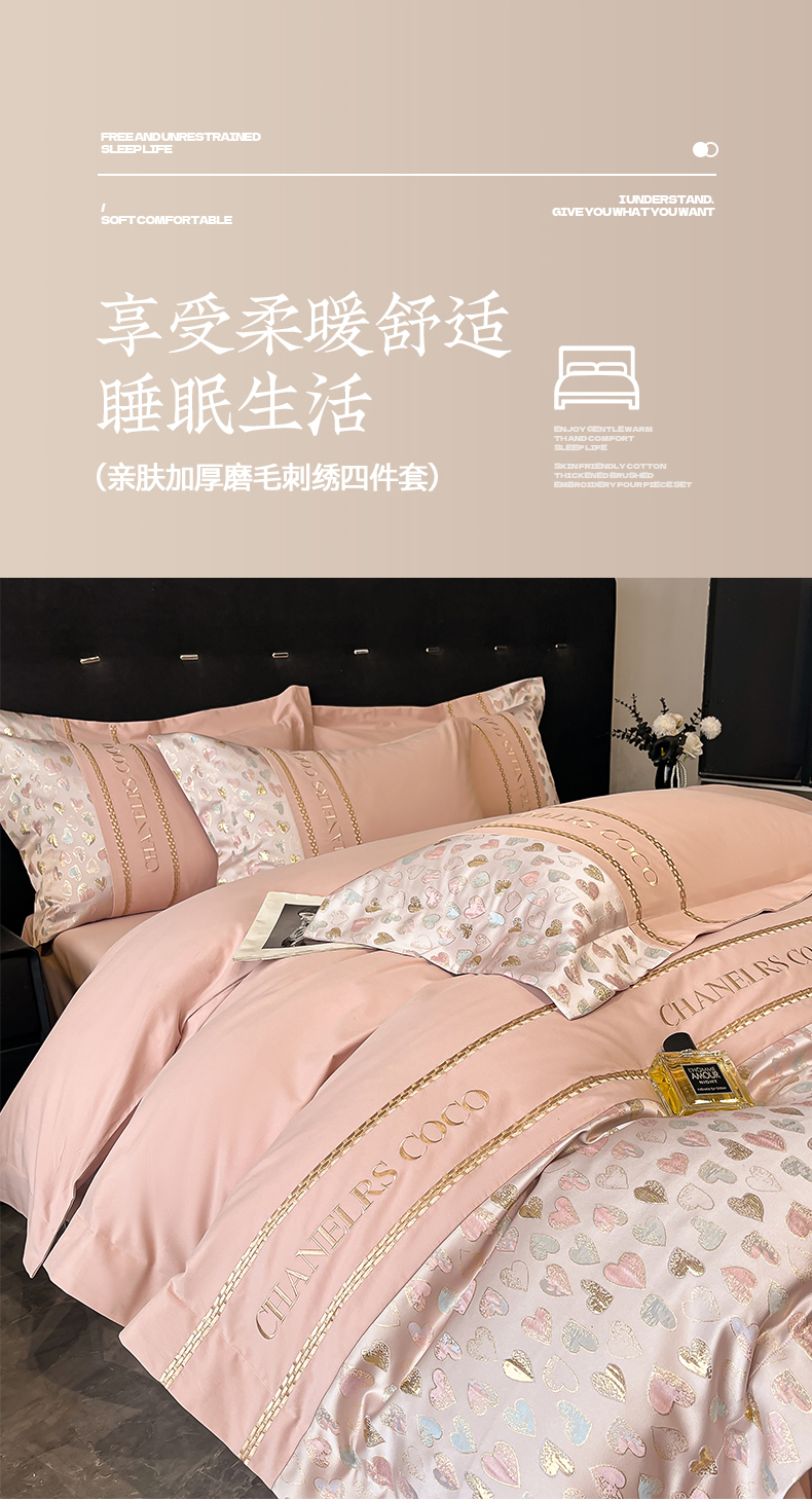 当前位置: 91家纺网 > 商品网购 > 床品套件 > 四件套 > 全棉普通四件套 > 置顶家纺 2025新款亲肤刺绣四件套-My girl-风格二 My girl-浅豆沙