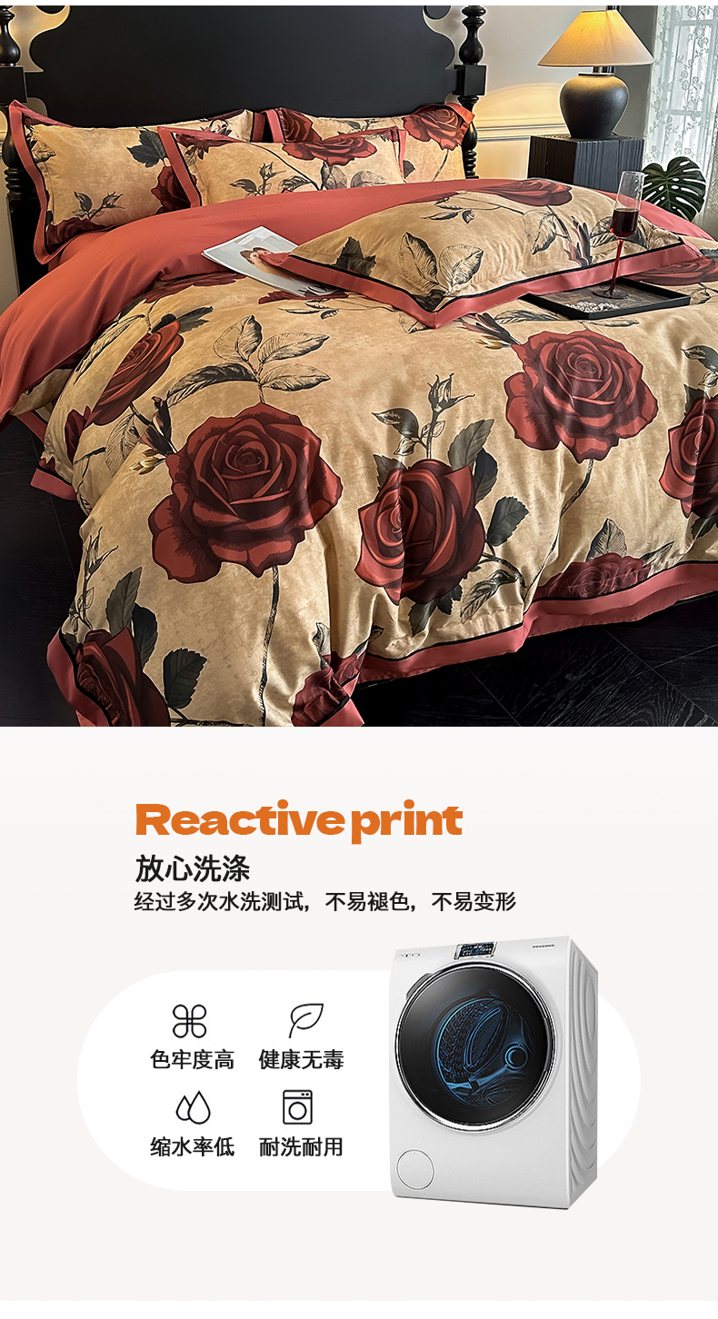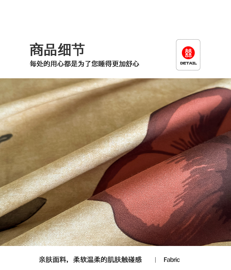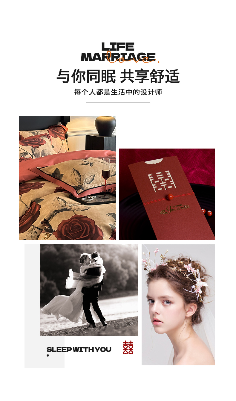 商品名称:置顶家纺 2025新款亲肤数码印花四件套-婚庆系列 吾悦