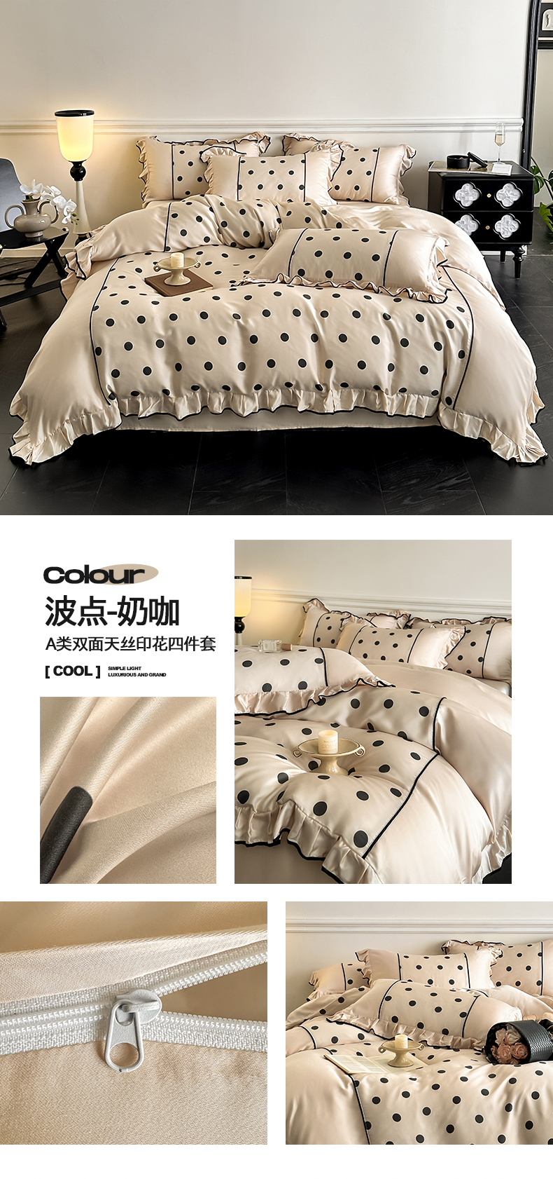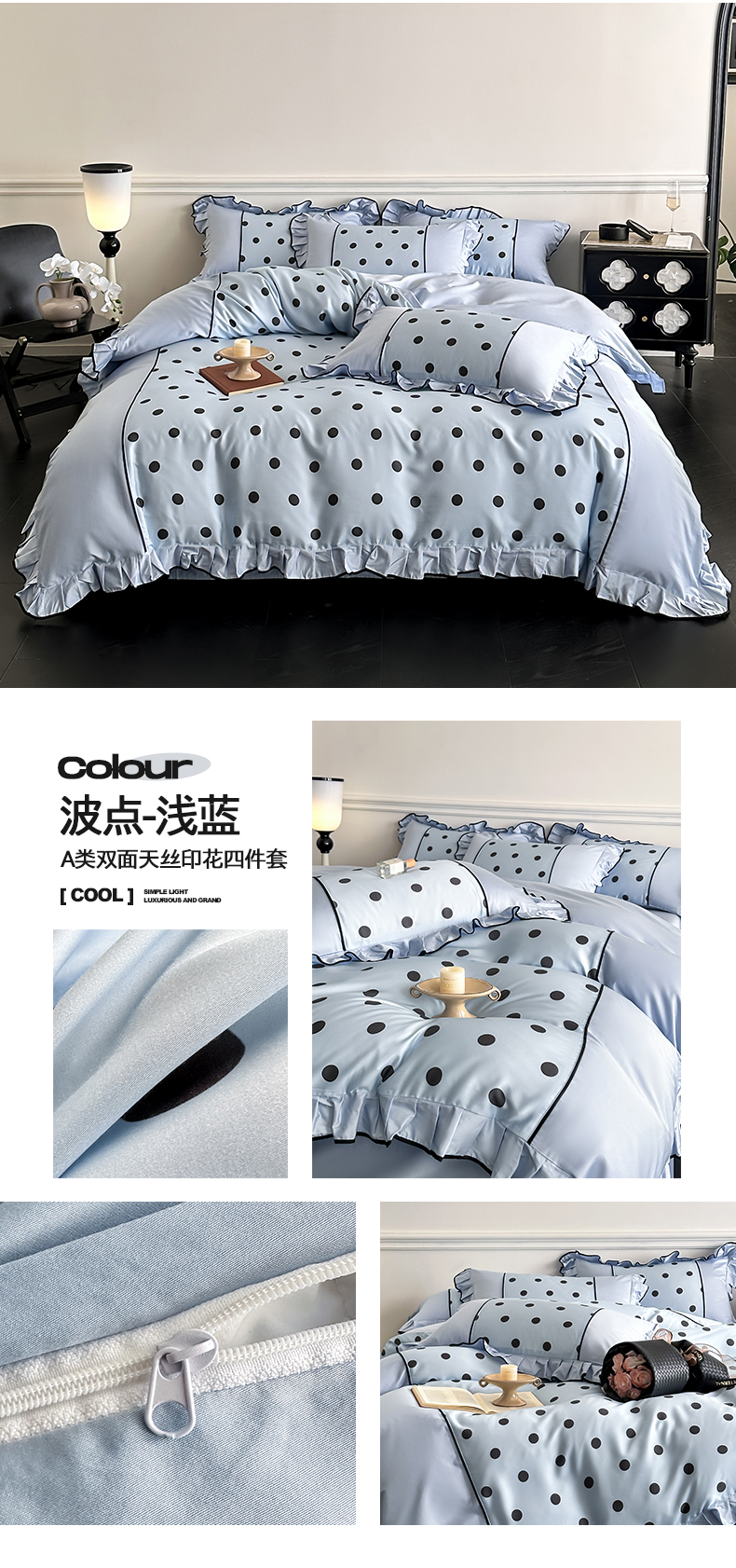 商品名称:(总)置顶家纺 2025新款波点双面水洗天丝四件套