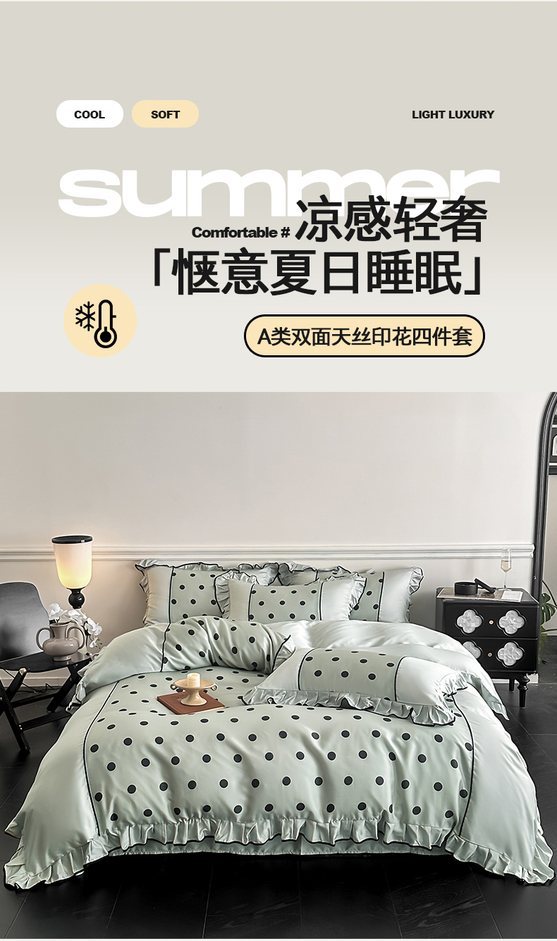 (总)置顶家纺 2025新款波点双面水洗天丝四件套