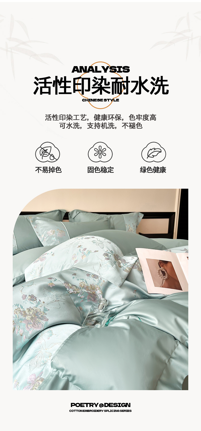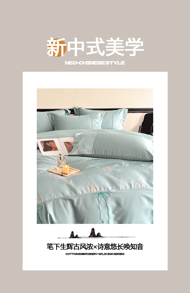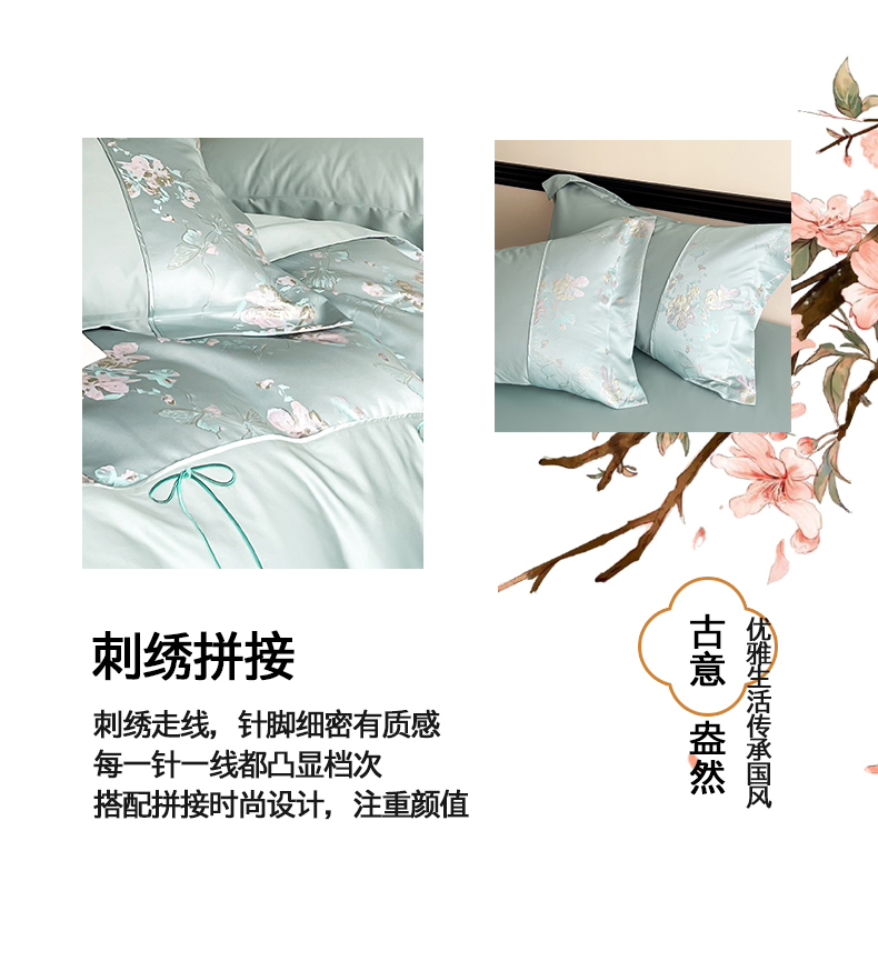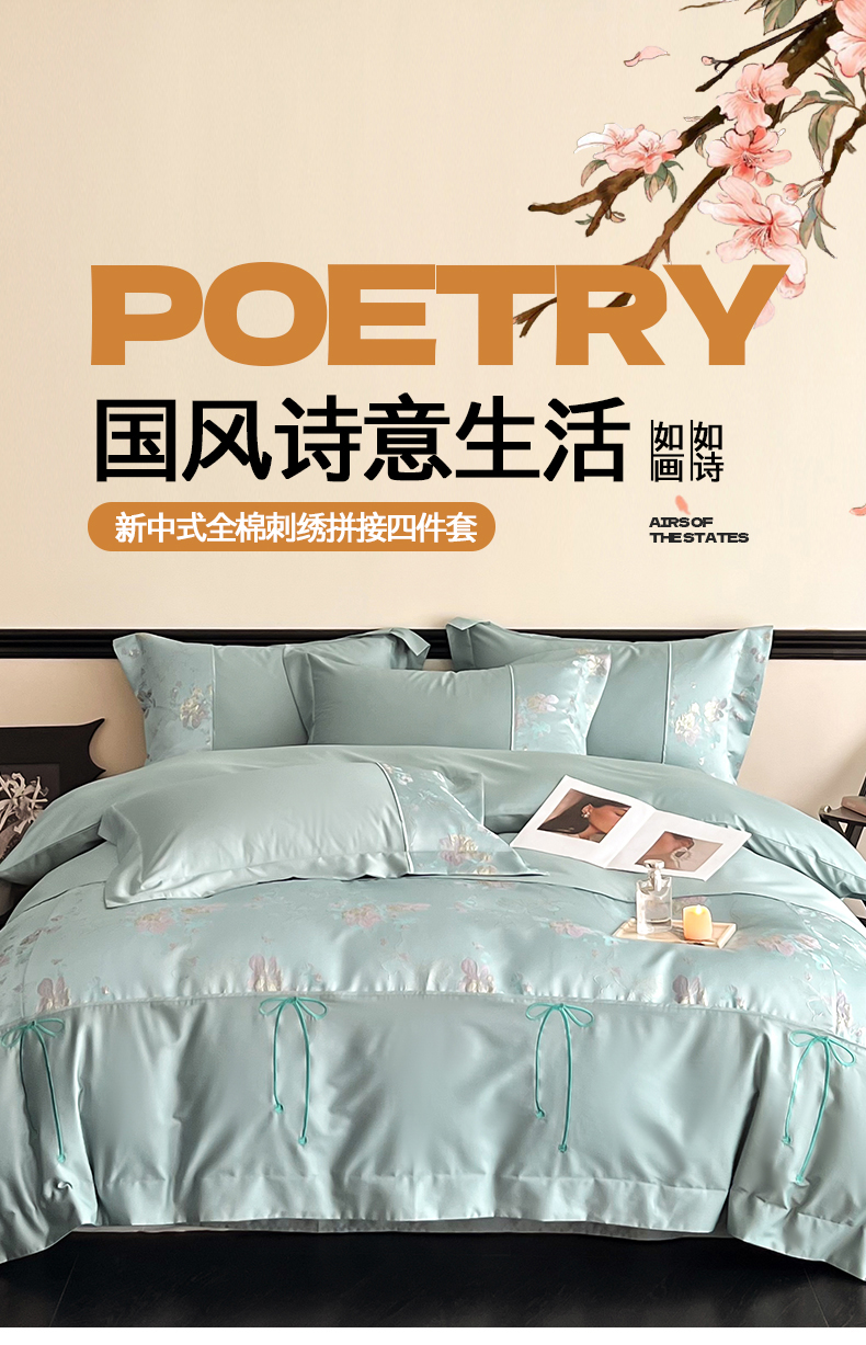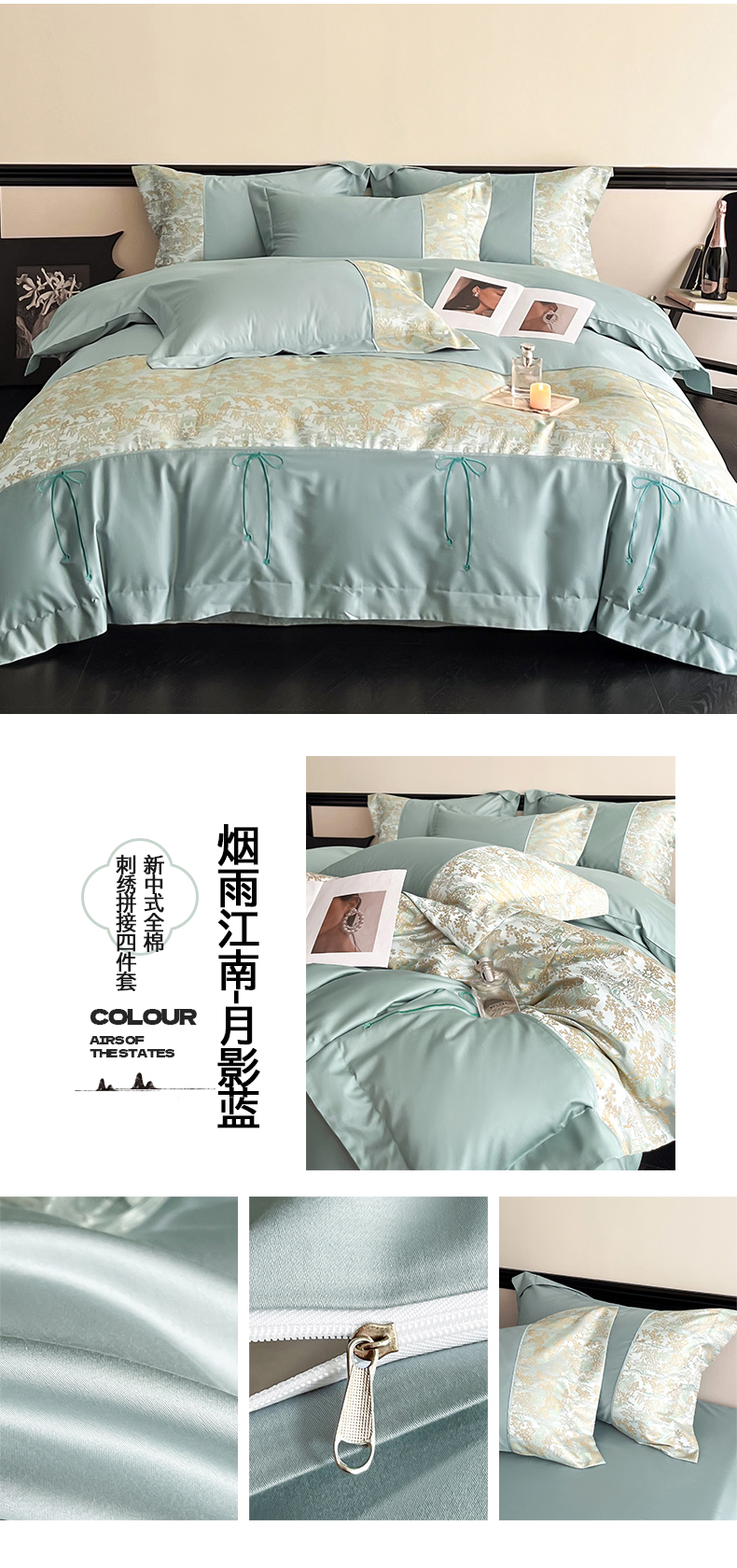 当前位置: 91家纺网 > 商品网购 > 床品套件 > 四件套 > 全棉普通四件套 > 置顶家纺 2025新款国色天香新中式全棉刺绣拼接四件套 国色天香-月影蓝