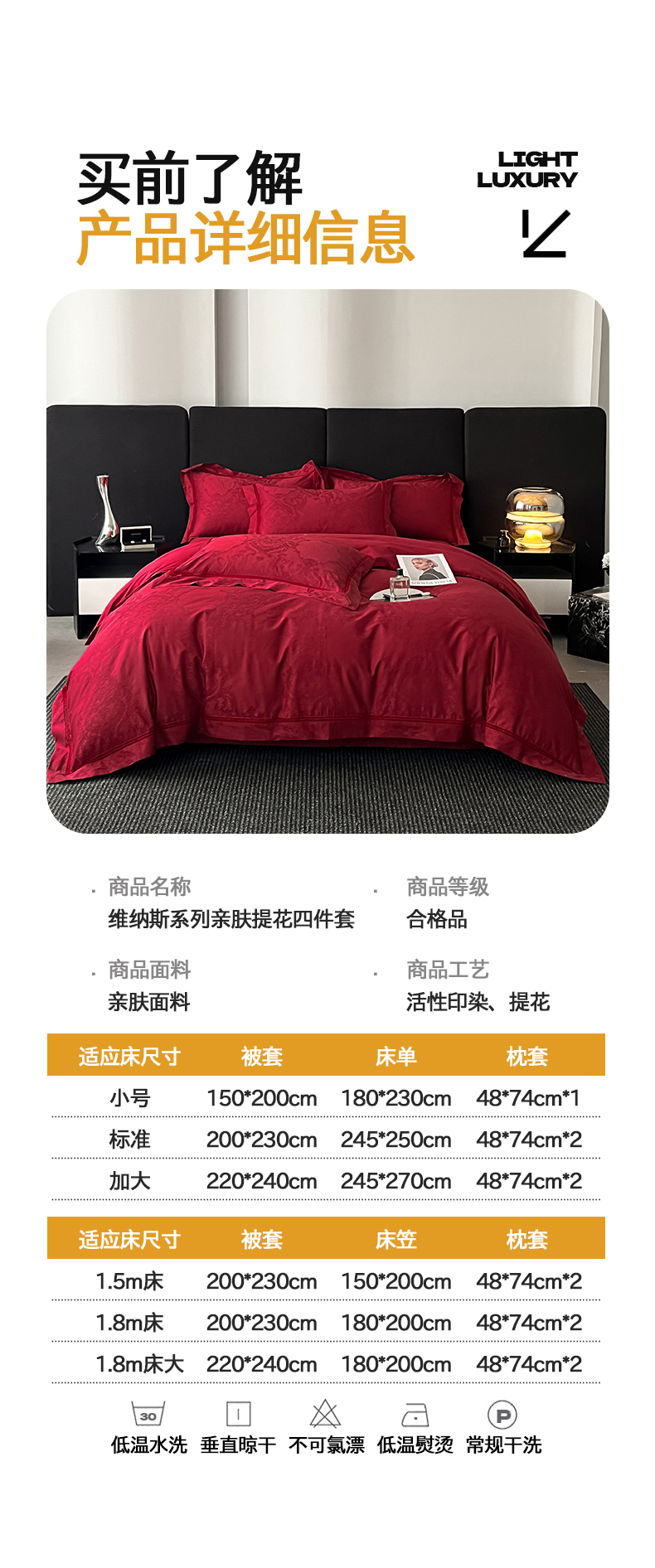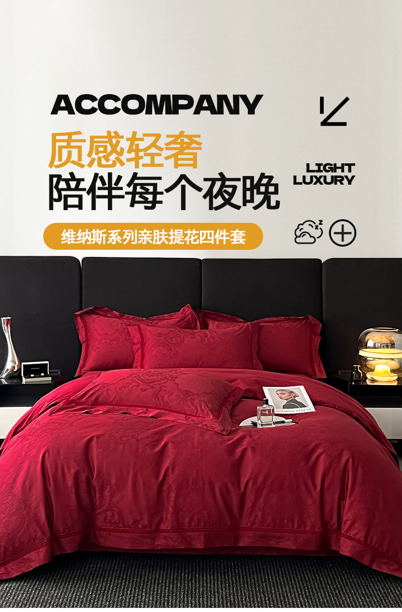 当前位置: 91家纺网 > 商品网购 > 床品套件 > 四件套 > 其它四件套 > 置顶家纺 2025新款维纳斯系列亲肤提花四件套 维纳斯-酒红