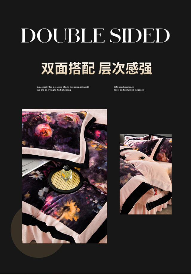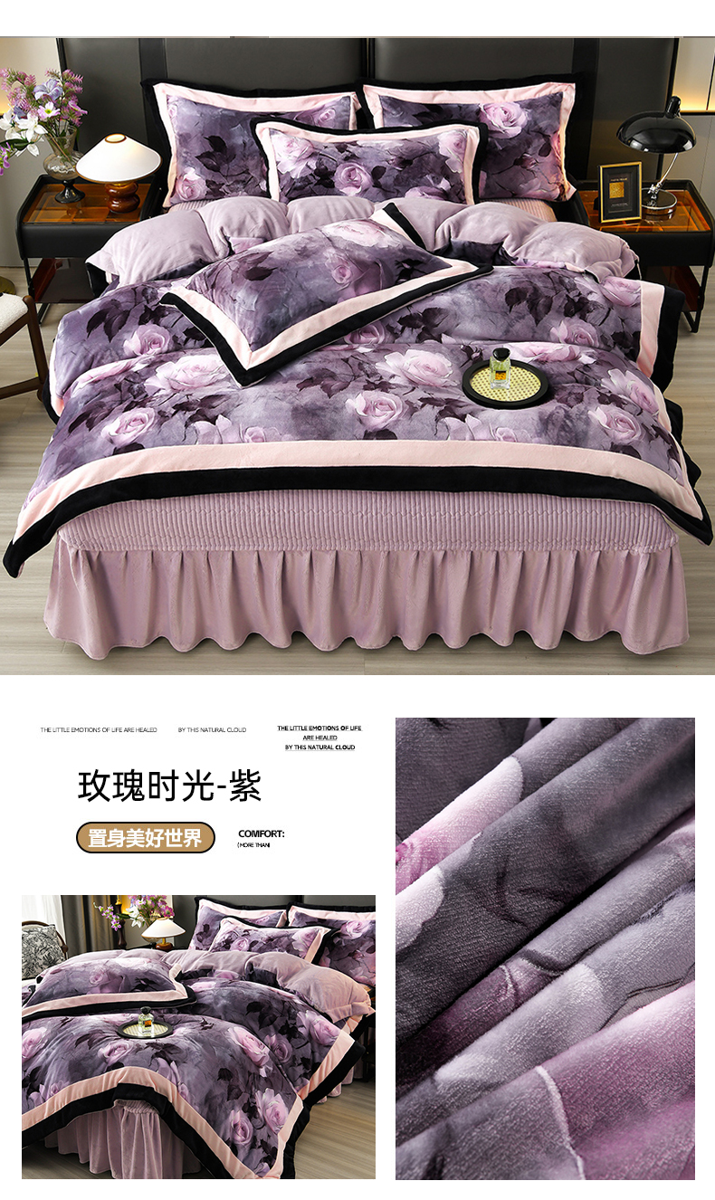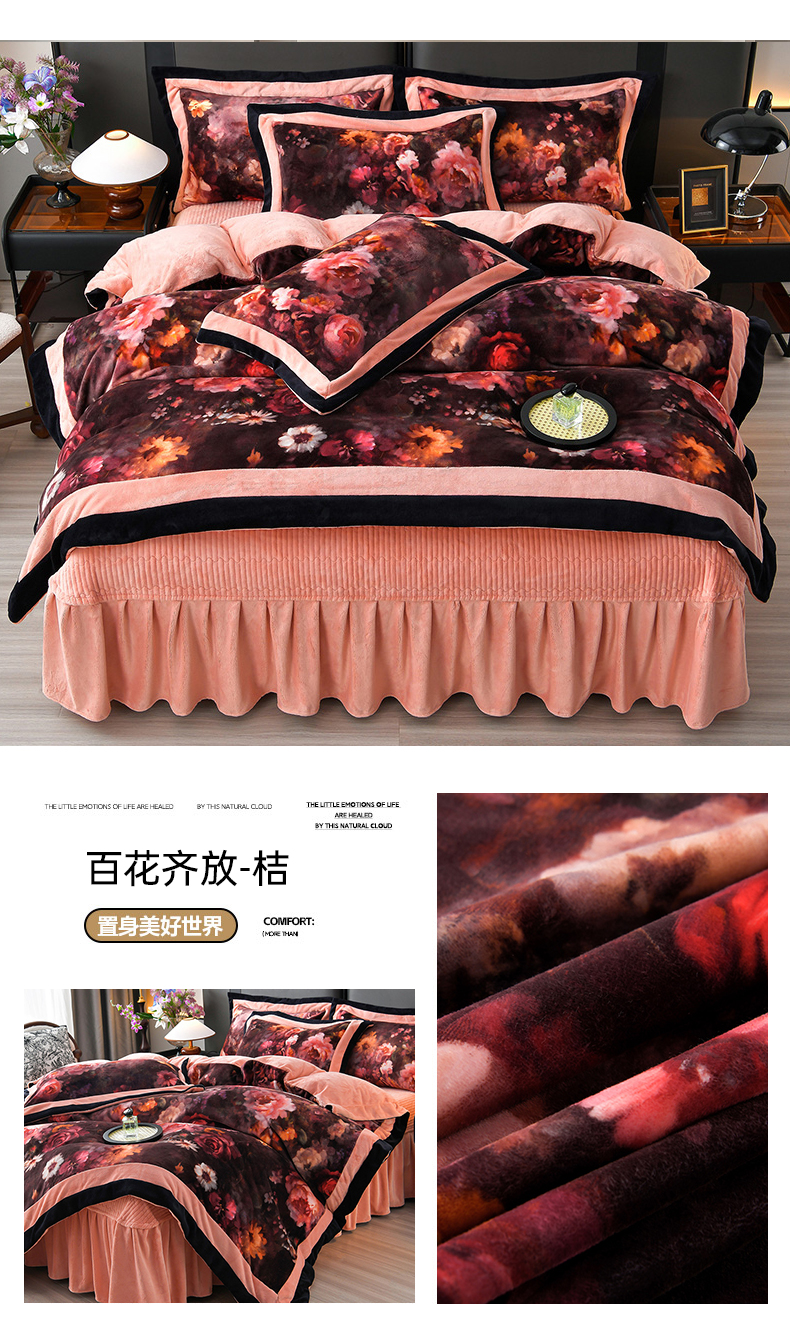 馨梦缘 2025直播爆款8.5斤牛奶绒四件套加厚保暖床裙金貂绒 静若繁花 粉,静若繁花 粉