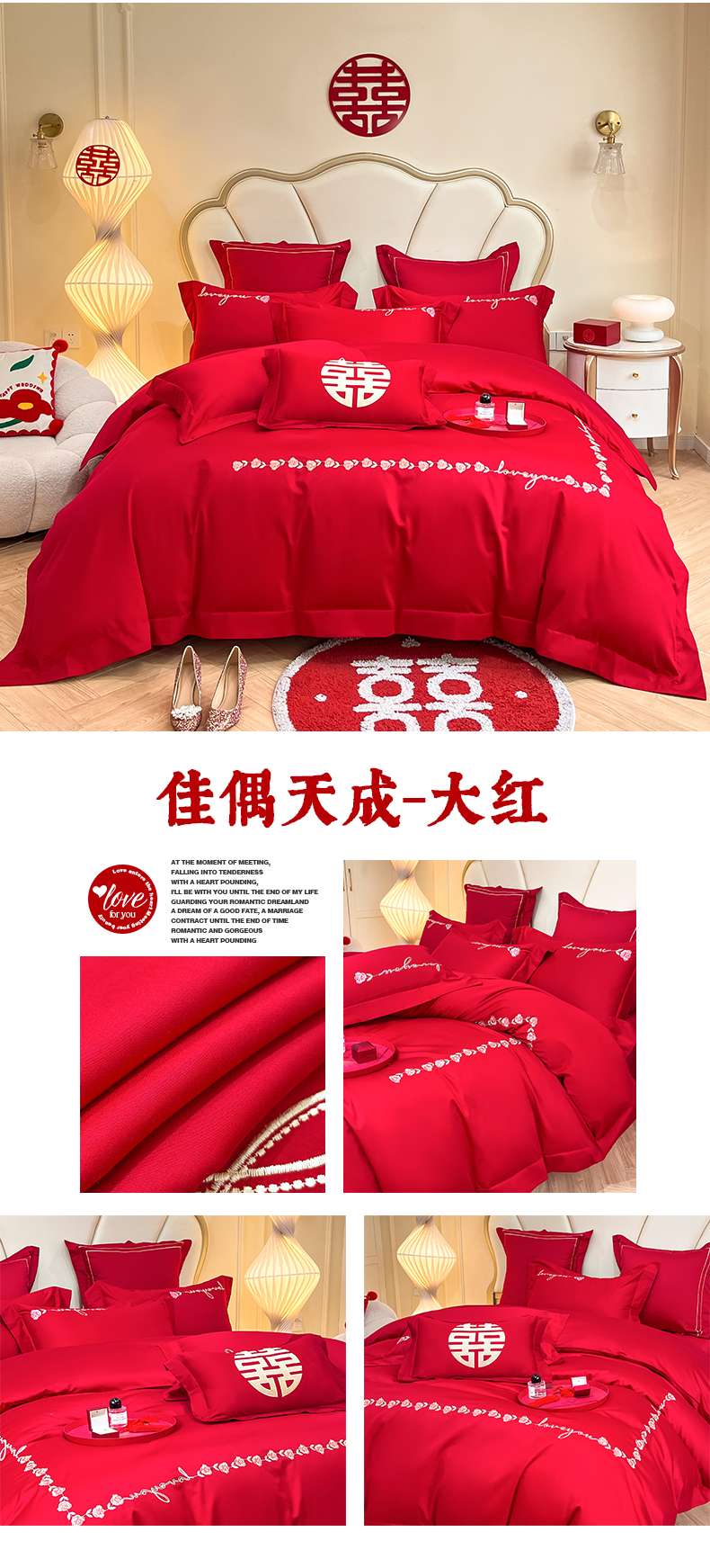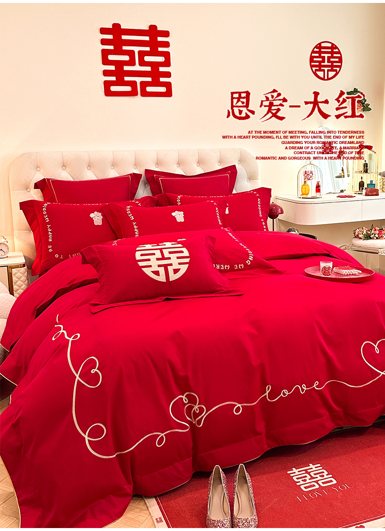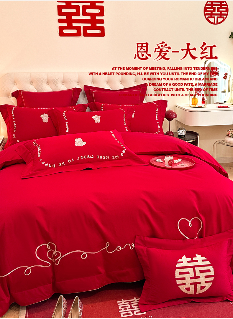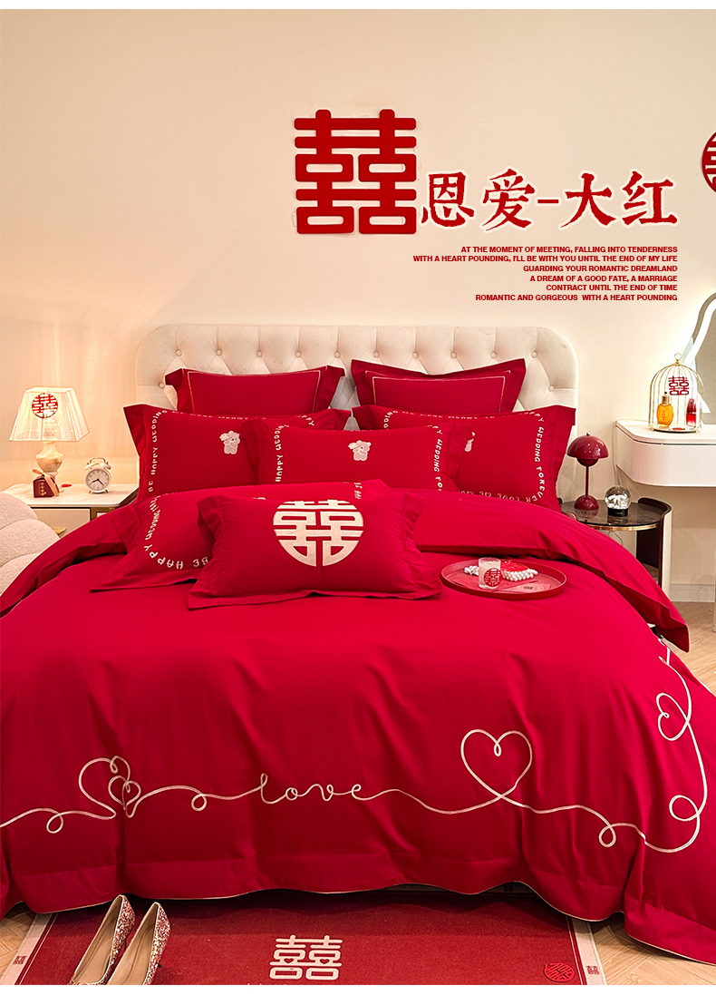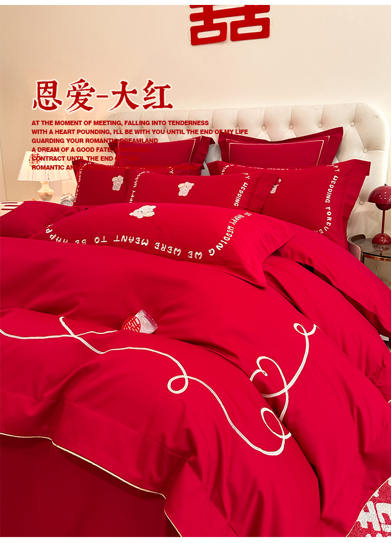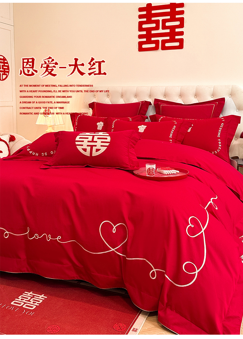 当前位置: 91家纺网 > 商品网购 > 床品套件 > 四件套 > 婚庆四件套 > 置顶家纺 2025新款亲肤刺绣婚庆磨毛四件套 恩爱-大红