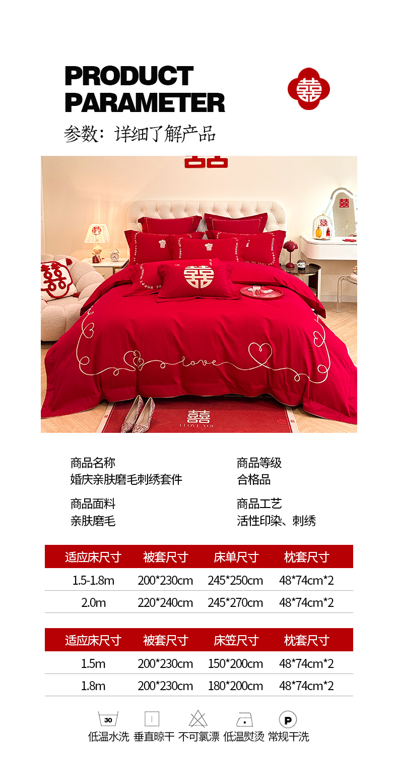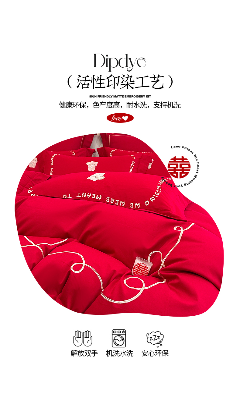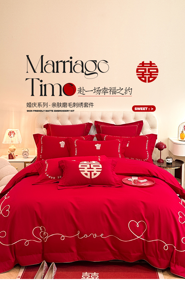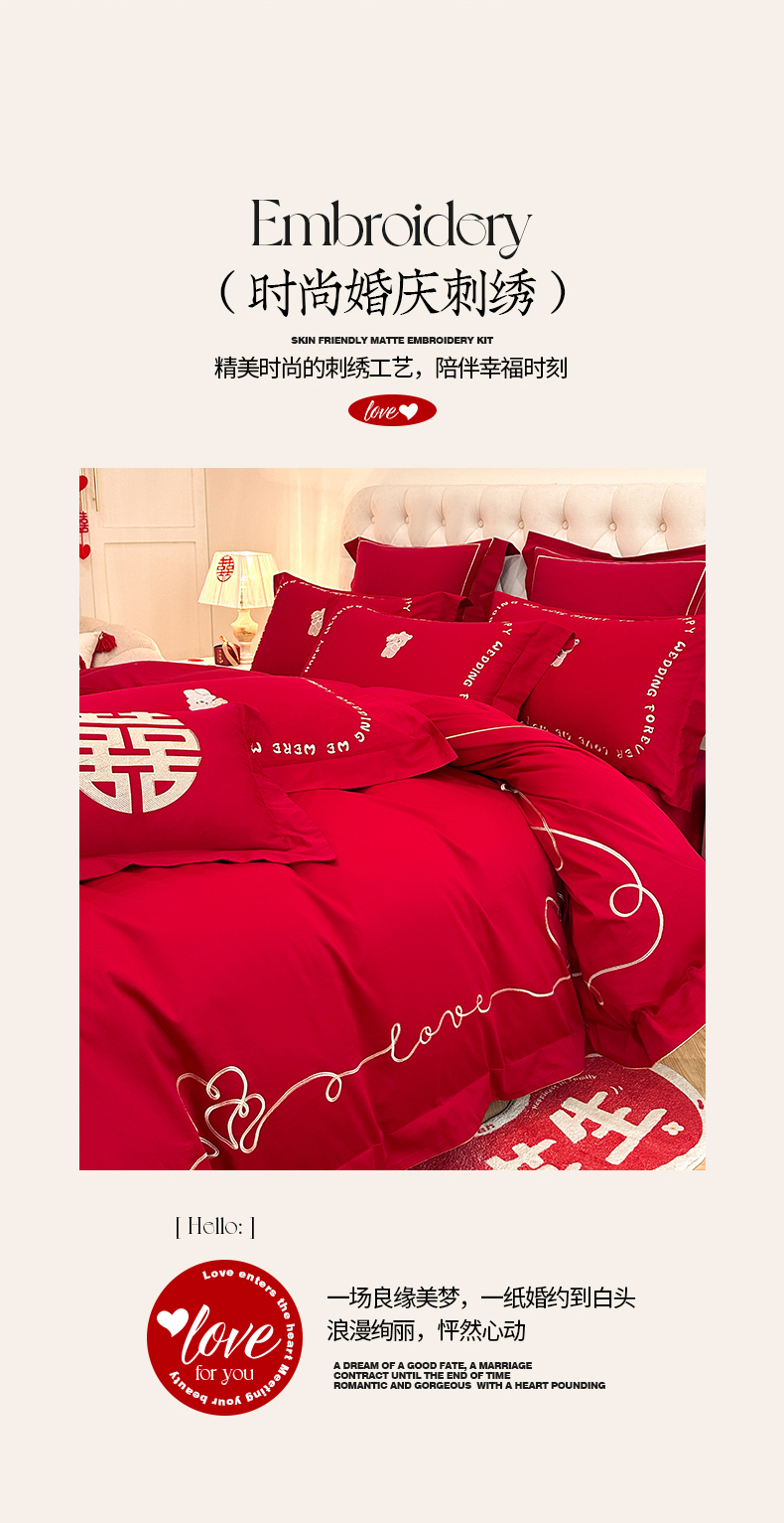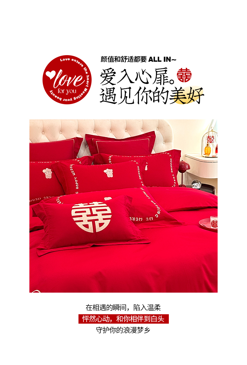 当前位置: 91家纺网 > 商品网购 > 床品套件 > 四件套 > 婚庆四件套 > 置顶家纺 2025新款亲肤刺绣婚庆磨毛四件套 恩爱-大红