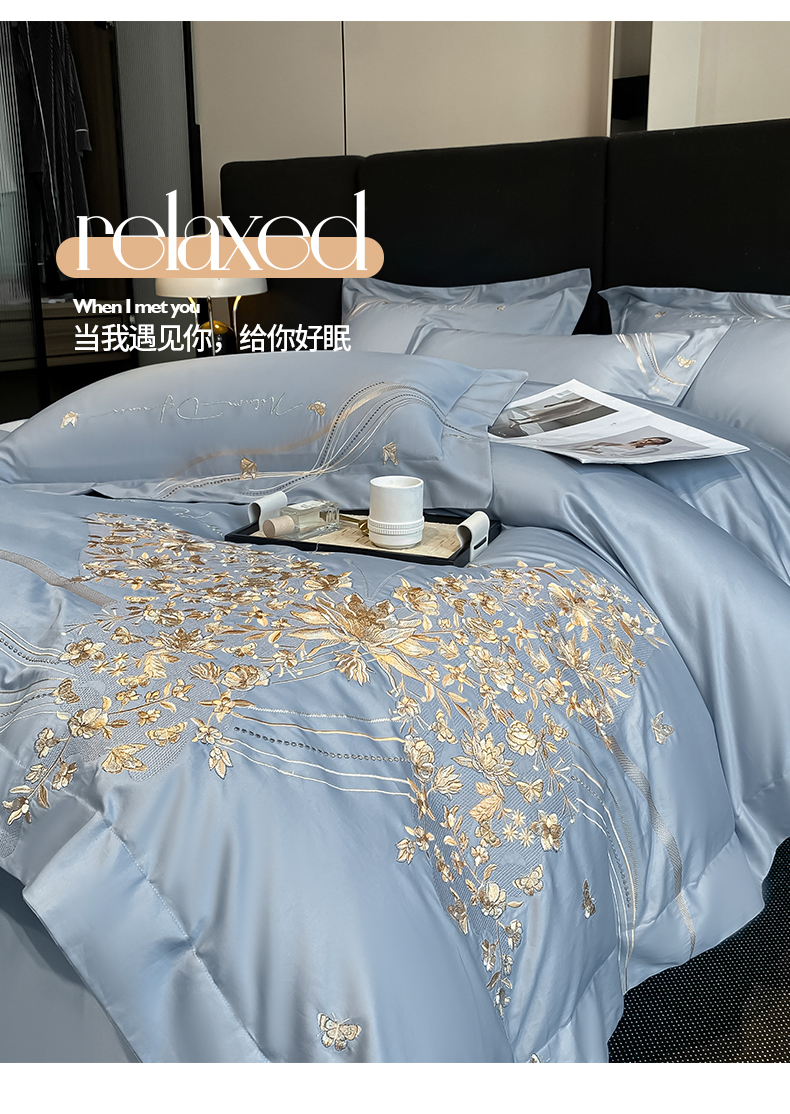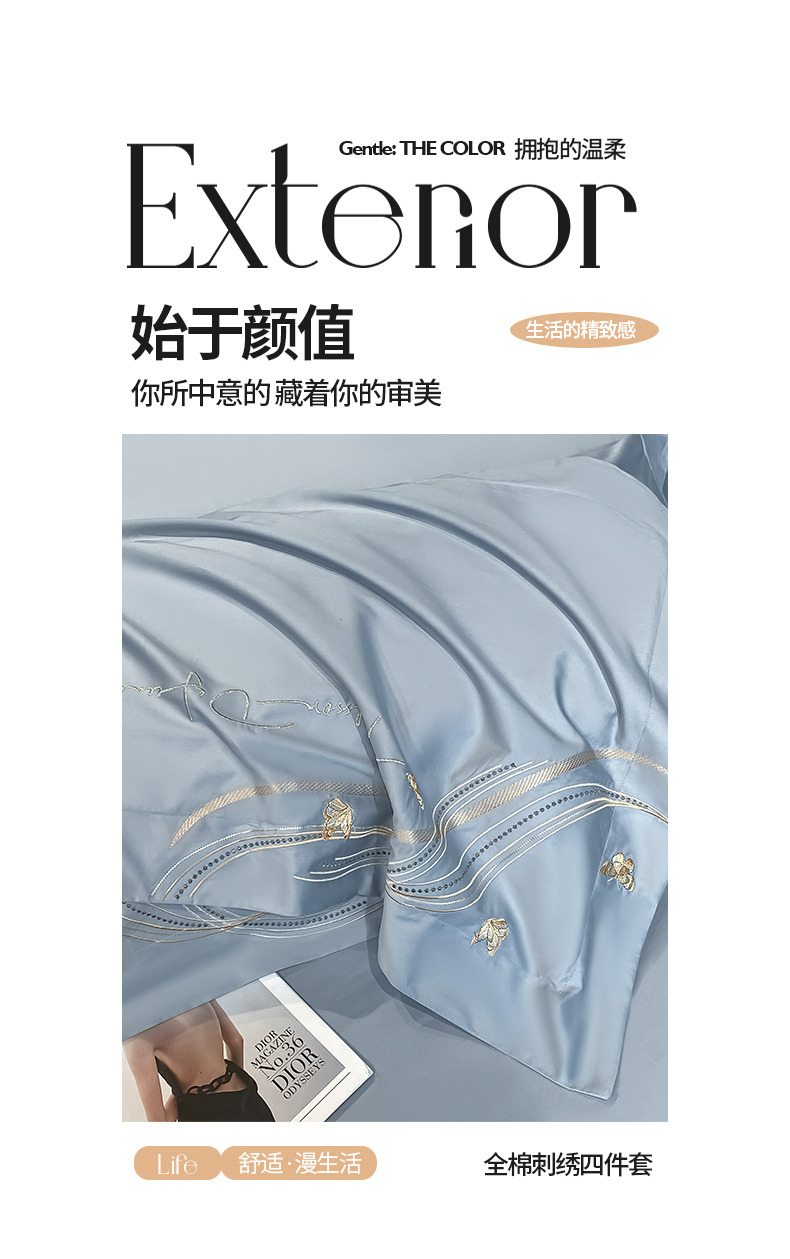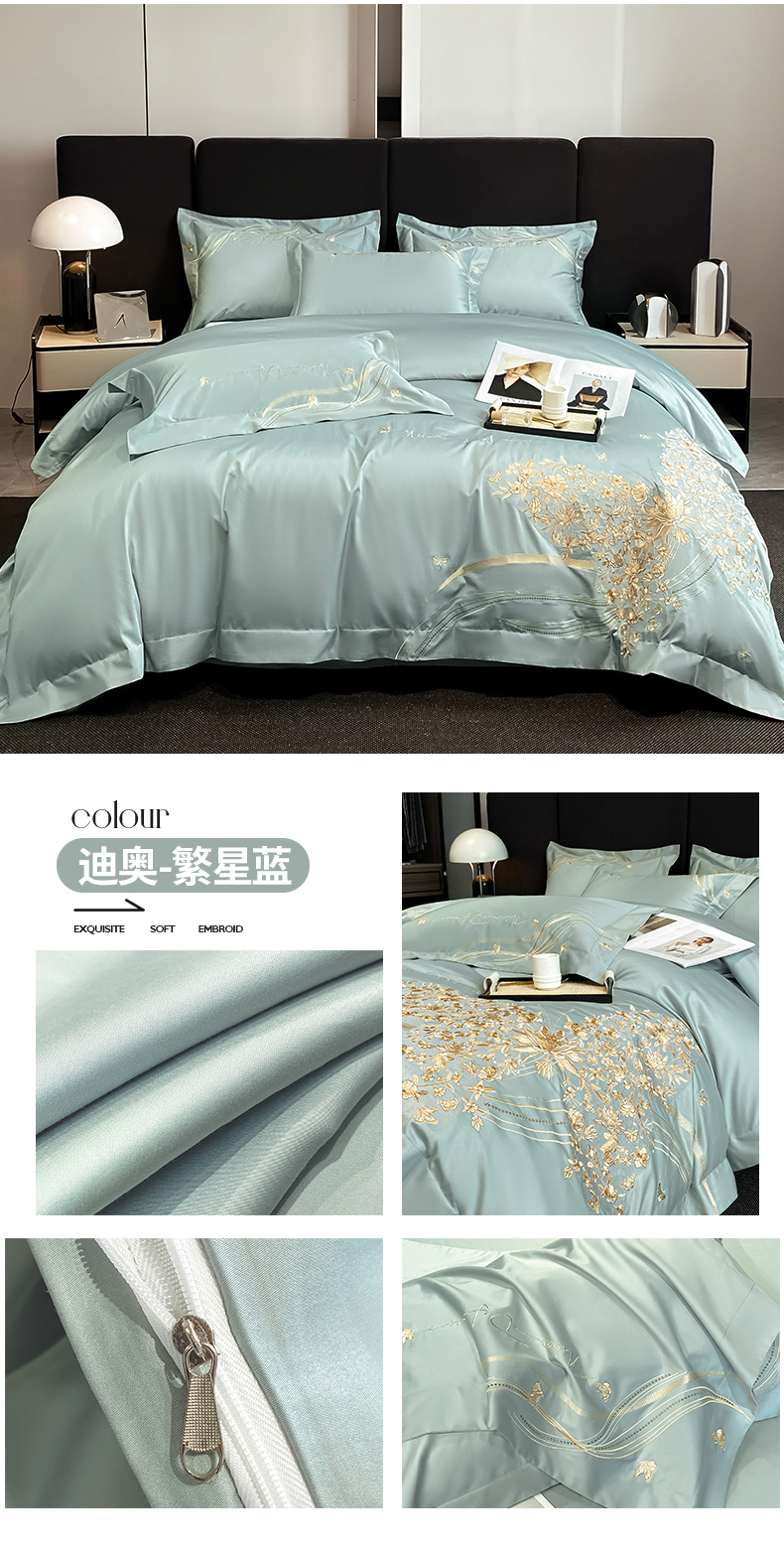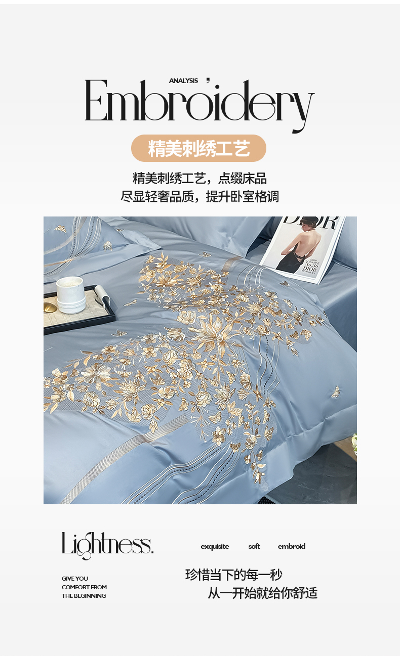 商品名称:置顶家纺 2025新款全棉纯棉刺绣四件套迪奥系列 迪奥-天蓝