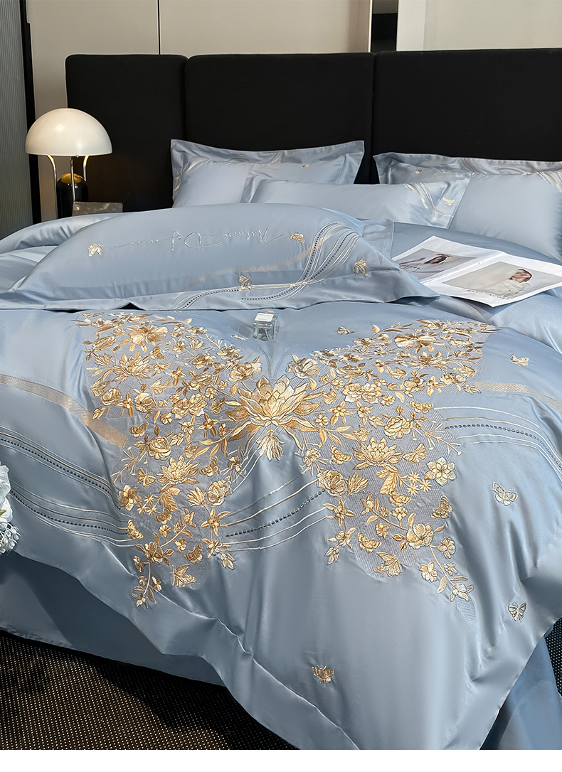 置顶家纺 2025新款全棉纯棉刺绣四件套迪奥系列 迪奥-天蓝