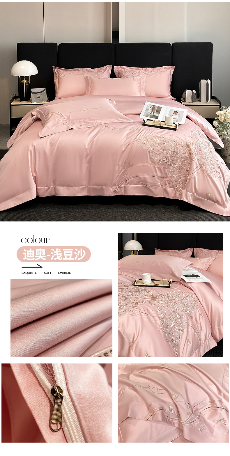 (总)置顶家纺 2026新款亲肤棉玫瑰刺绣提花卡罗拉系列四件套,卡罗拉-碧蓝,卡罗拉-魅粉,卡罗拉-浅香槟,卡罗拉-天空蓝