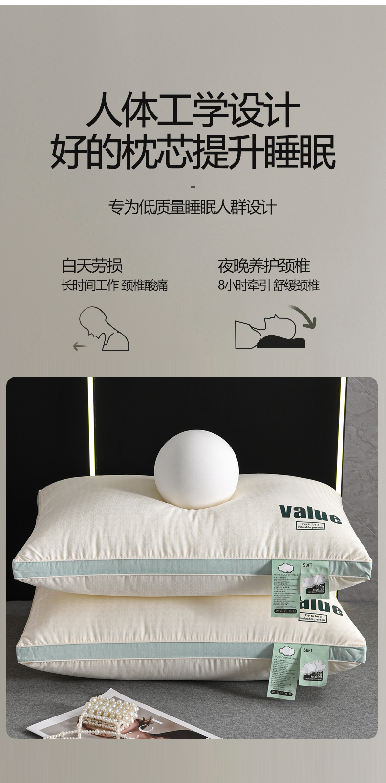 商品名称:大熊枕芯 2025新款A类云柔舒适value枕头枕芯 决明子护颈枕