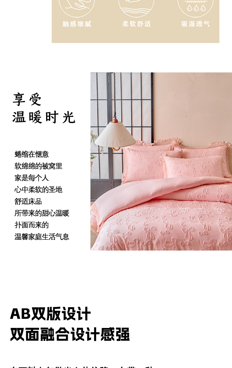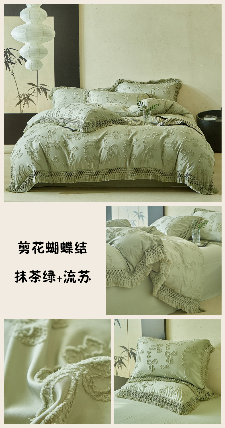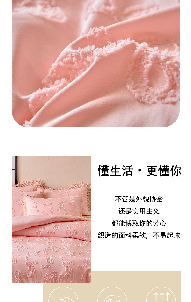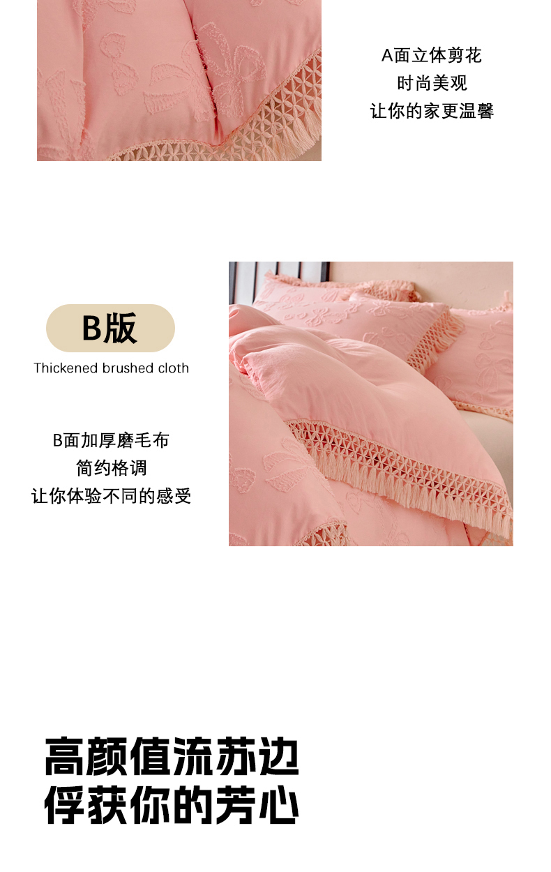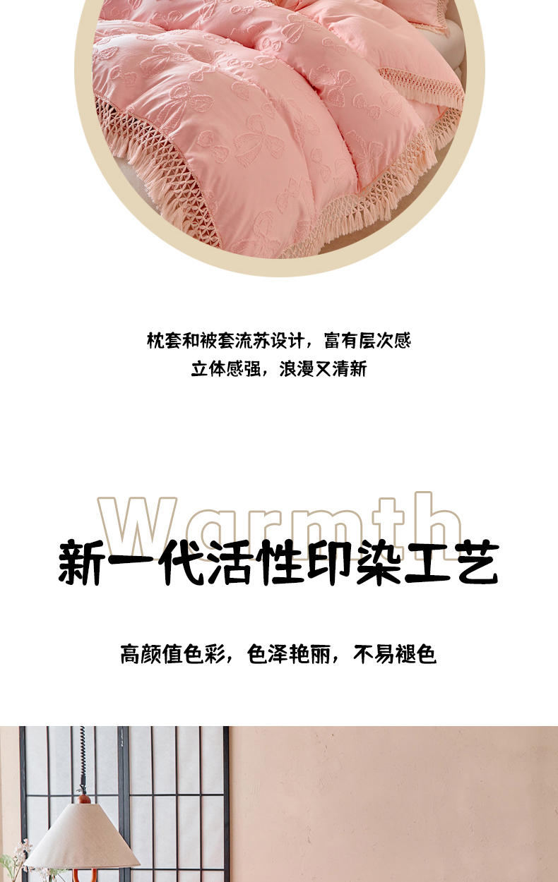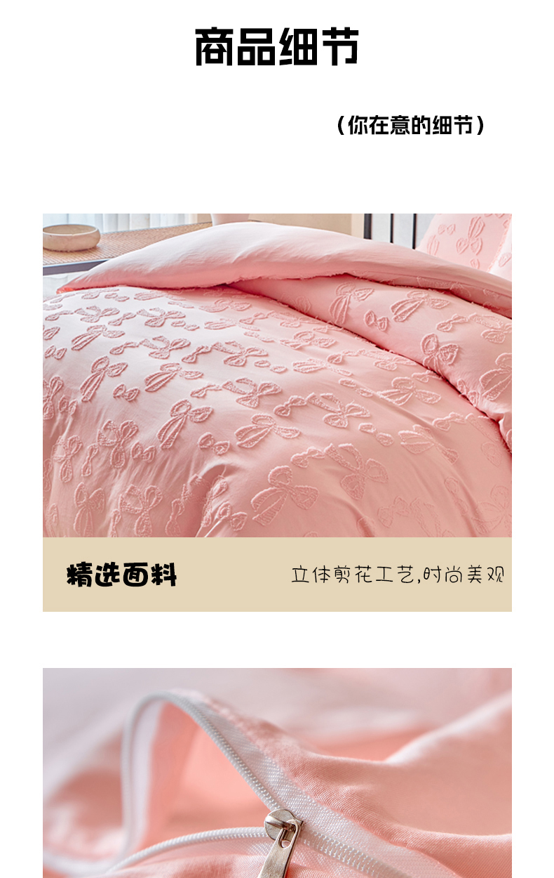 当前位置: 91家纺网 > 商品网购 > 床品套件 > 四件套 > 其它四件套 > 缘生活 2025新款立体剪花流苏四件套 四季通用-新增花型 剪花蝴蝶结 流苏+粉色