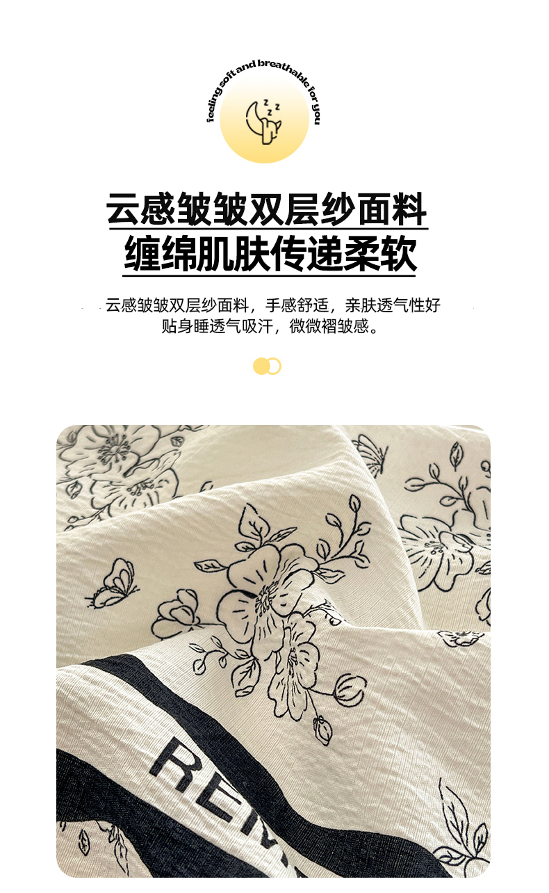 当前位置: 91家纺网 > 商品网购 > 床品套件 > 四件套 > 双层纱四件套 > 优佳优品 2025新款高克重云感双层纱印花四件套 雅纹枝语