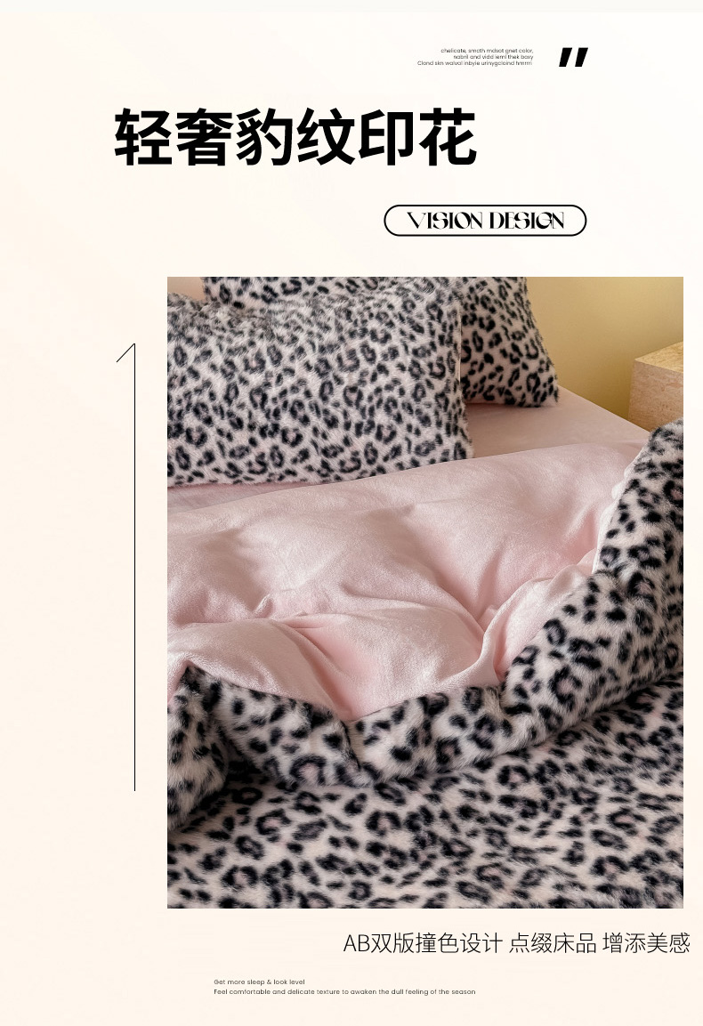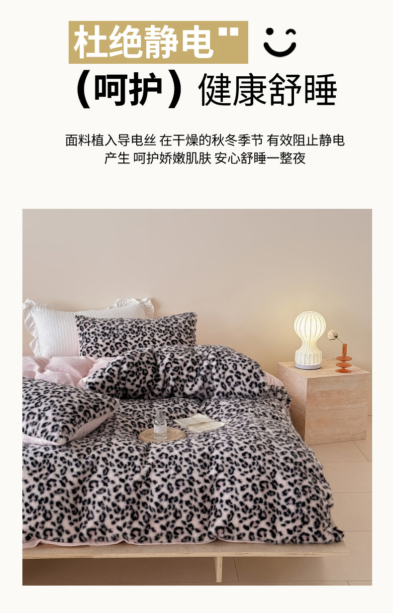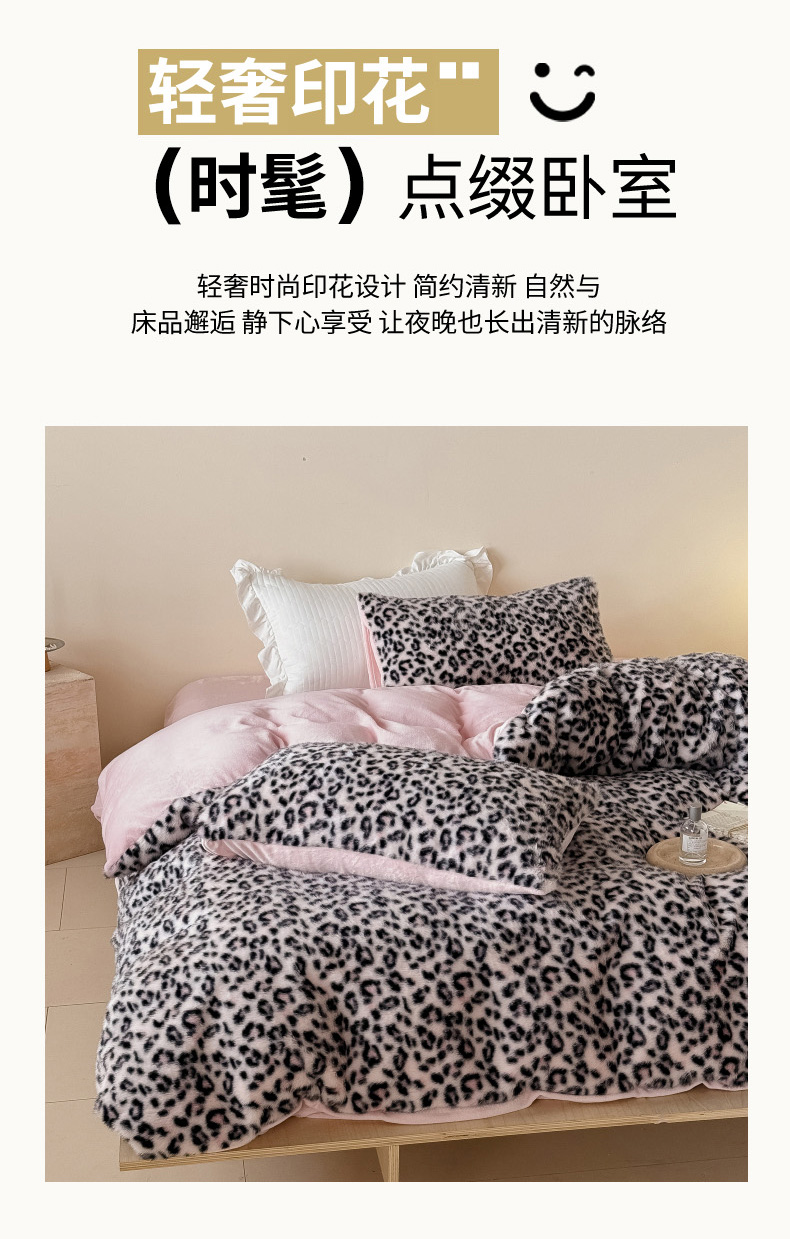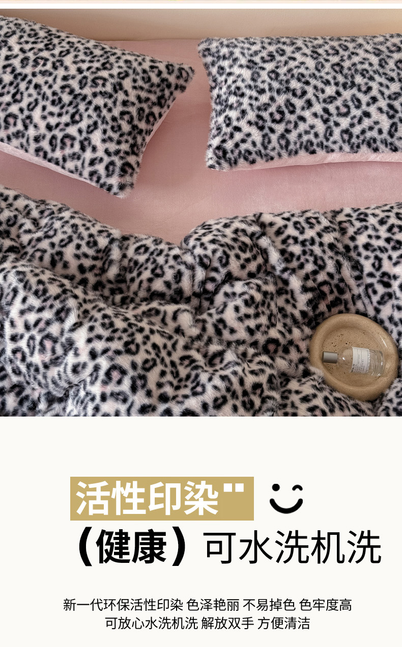 九花鹿 2025新款丹麦皮草绒水貂绒四件套 豹纹-咖