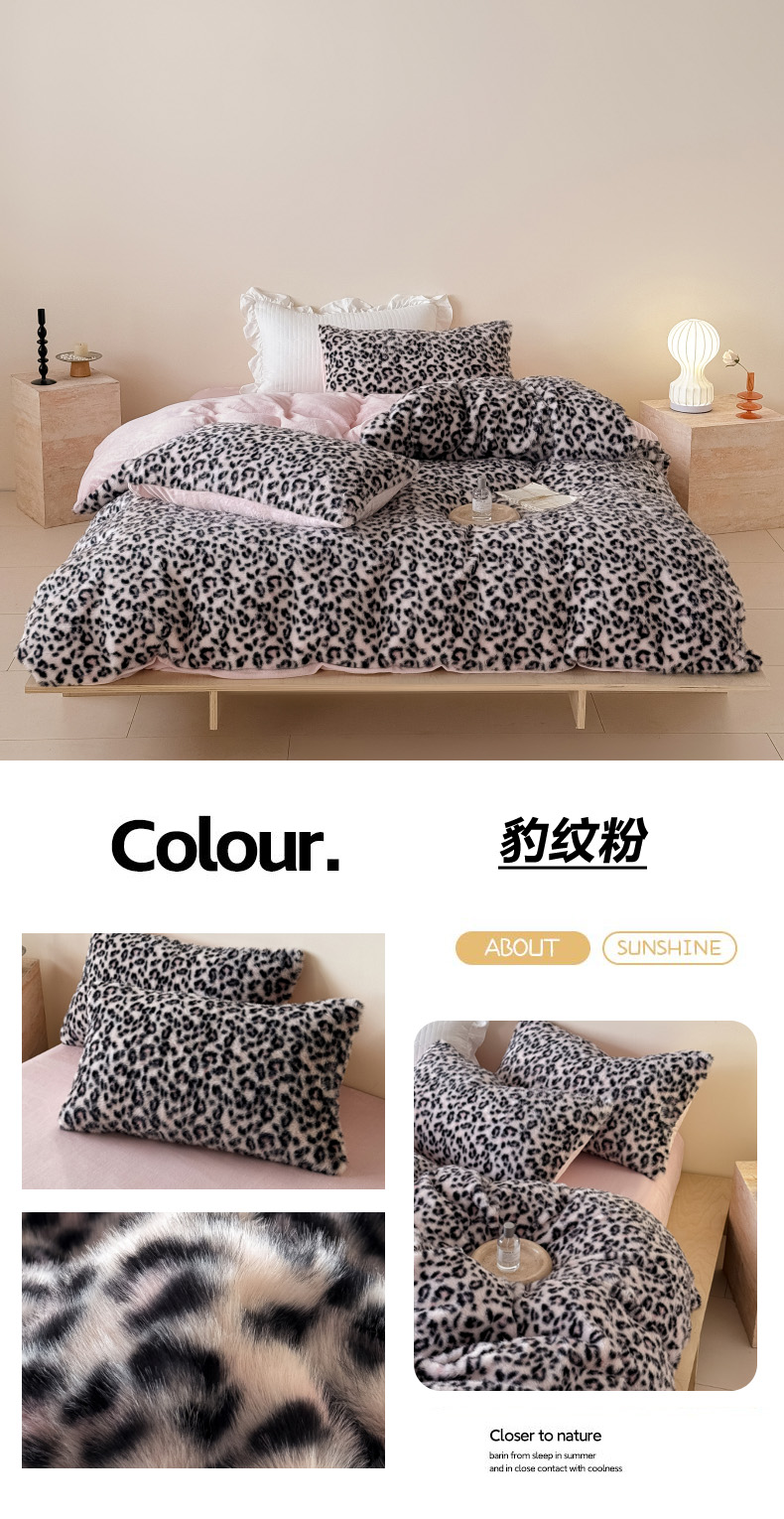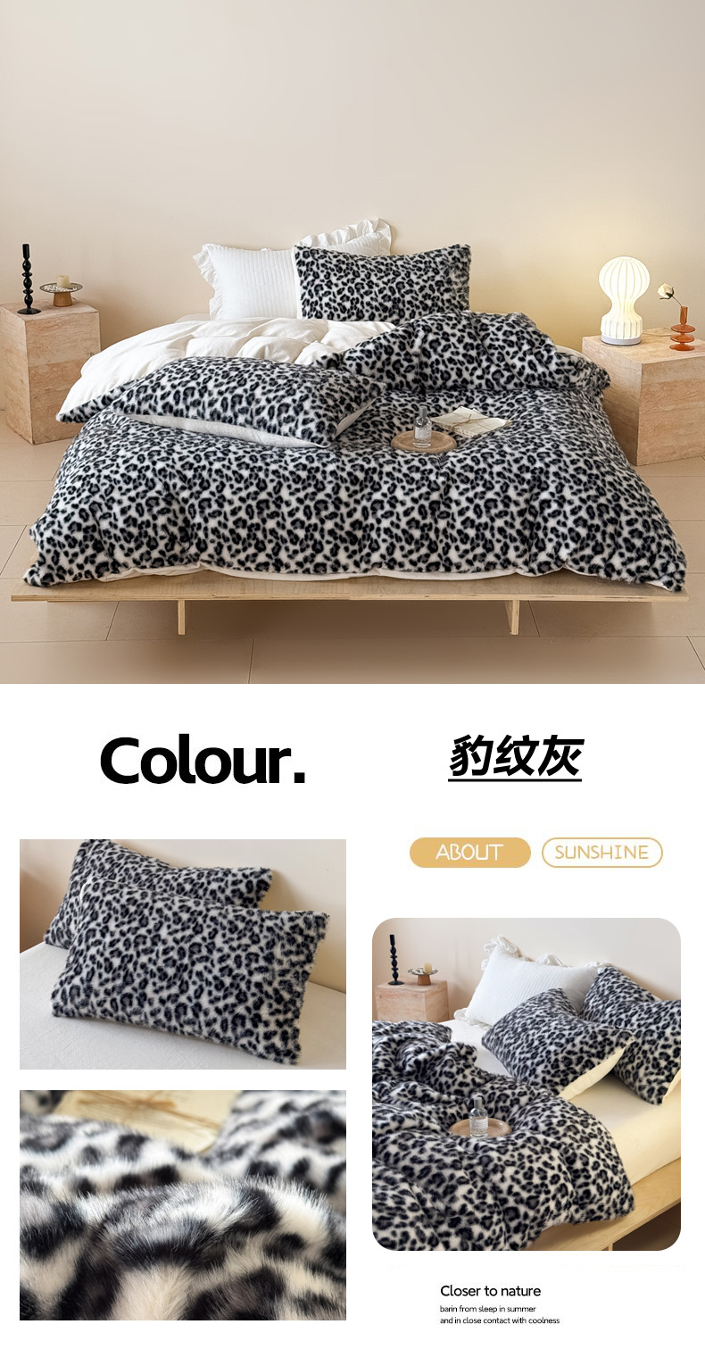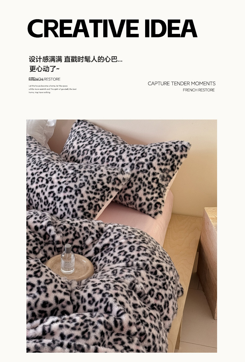 九花鹿 2025新款丹麦皮草绒水貂绒四件套 豹纹-咖
