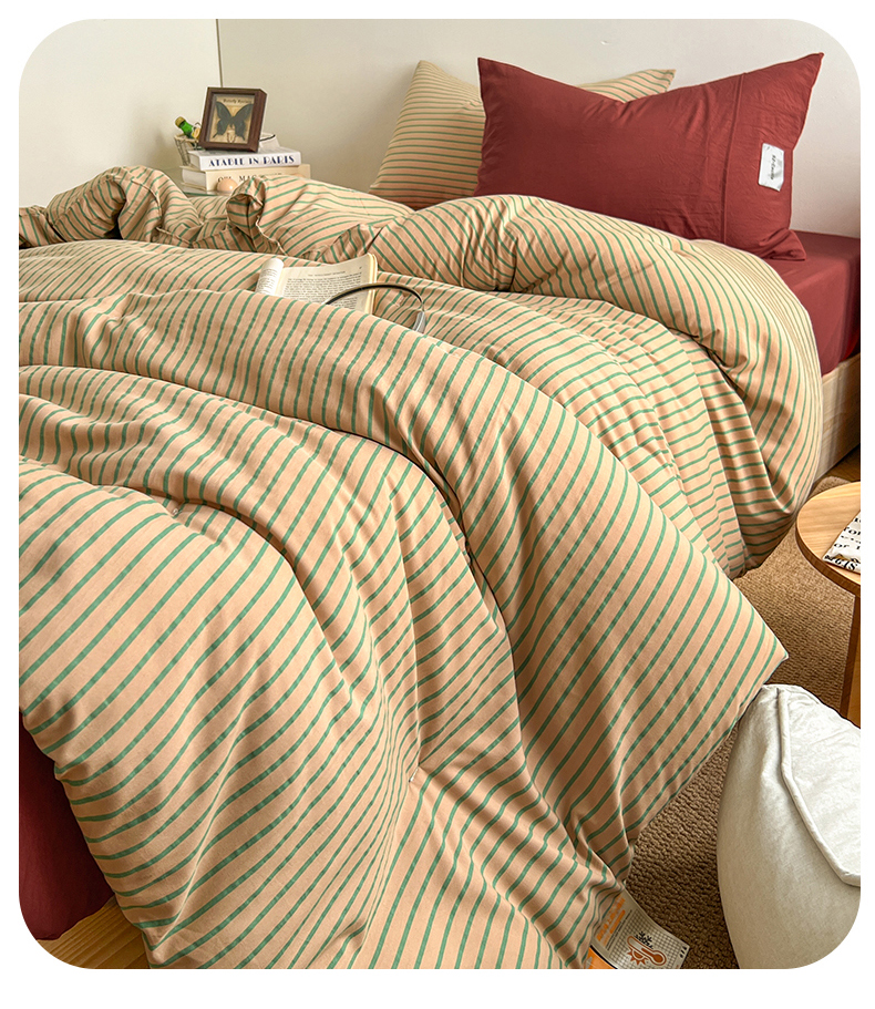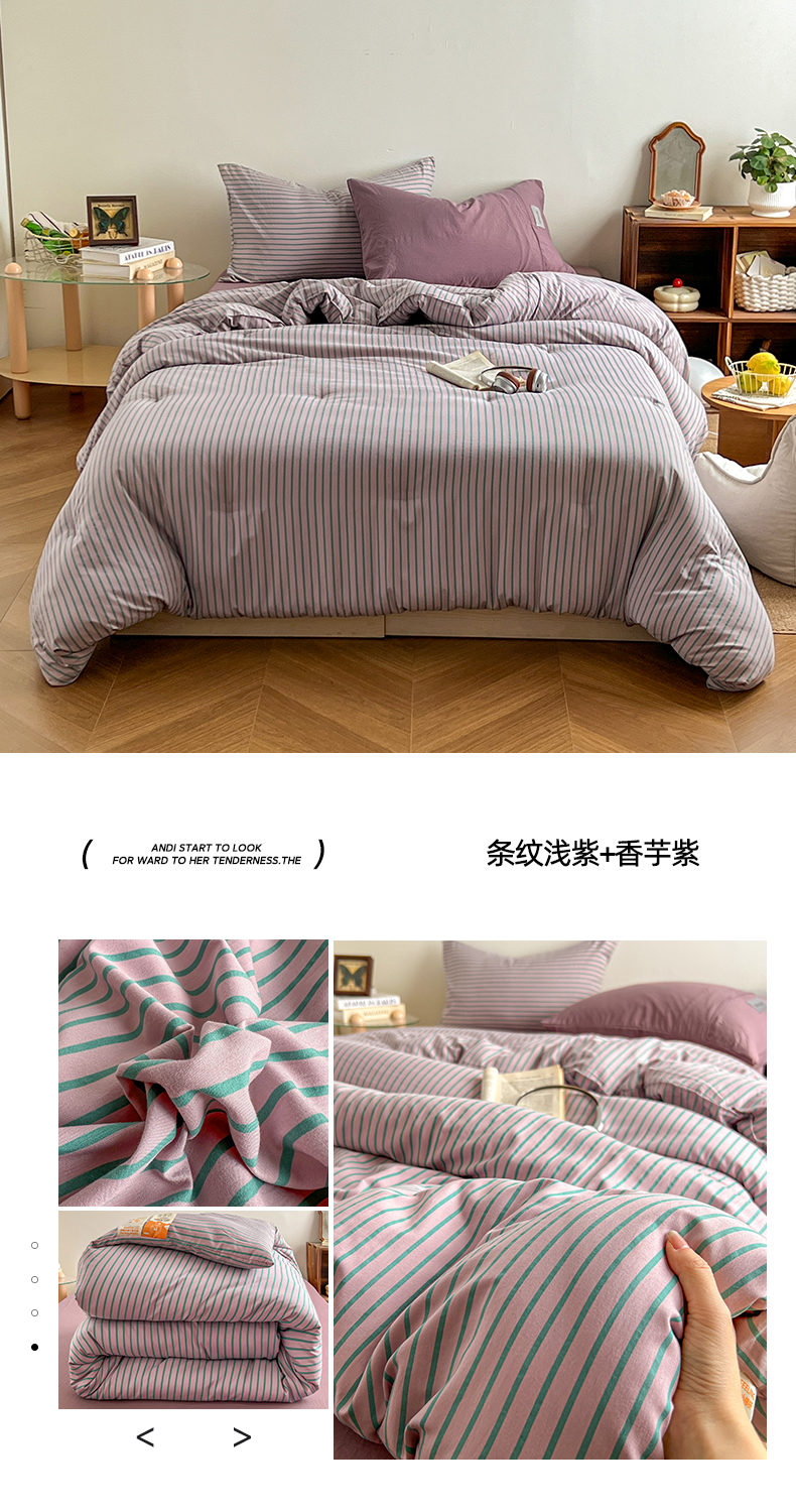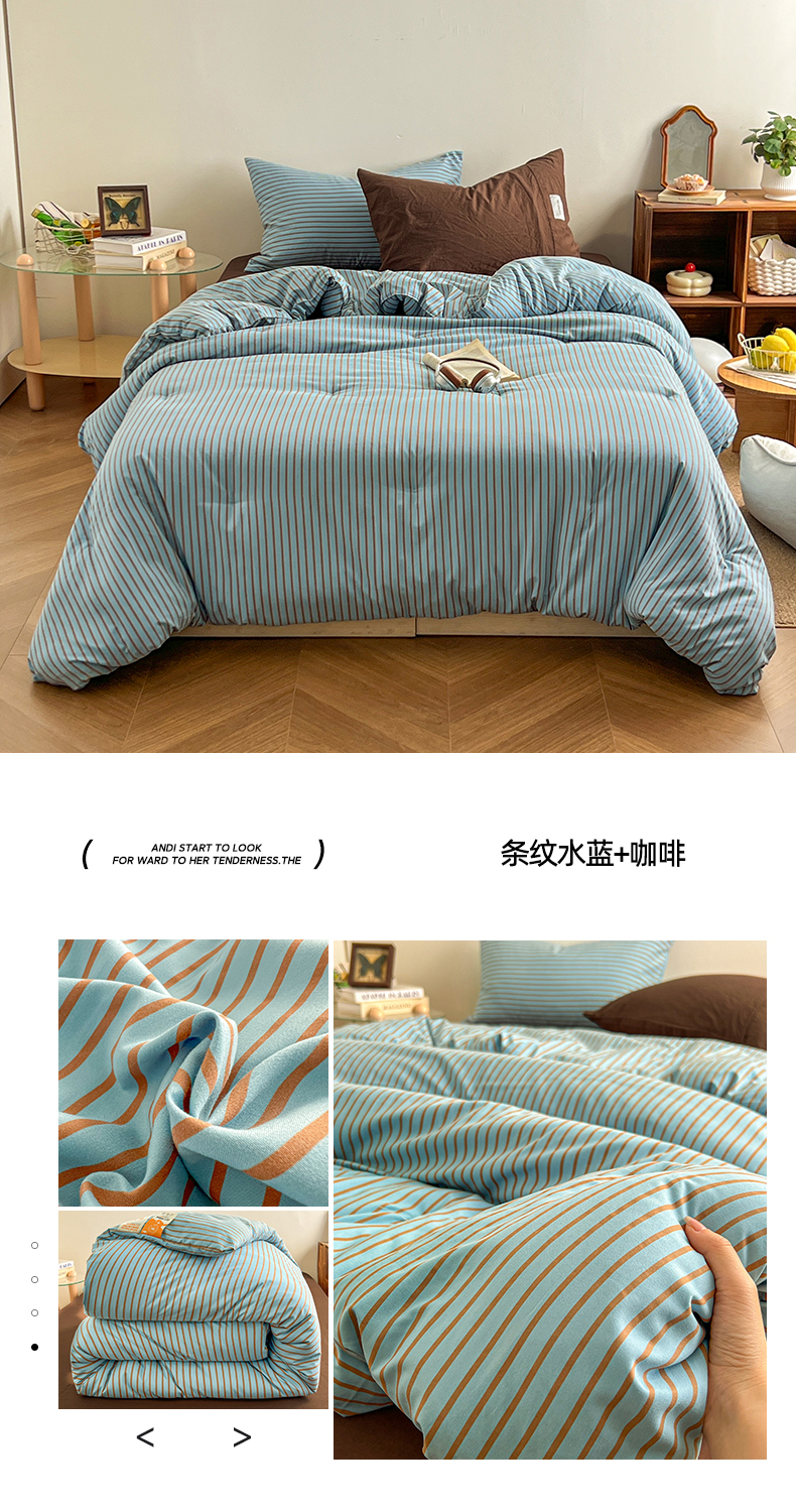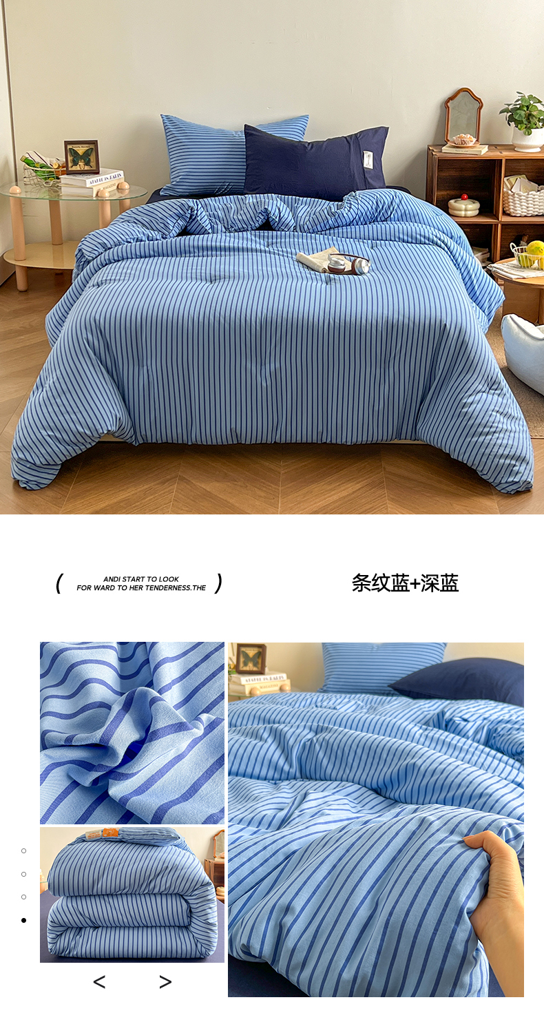 (总)暖芯优选 2025新款韩式无印风水洗棉拼色学生三件套床单床笠款四件套,条纹卡其+深红,条纹海洋蓝+深蓝,条纹抹茶绿+酱紫,条纹柠檬黄+咖啡,条纹水蓝+咖啡,条纹香芋紫+深紫,组合图
