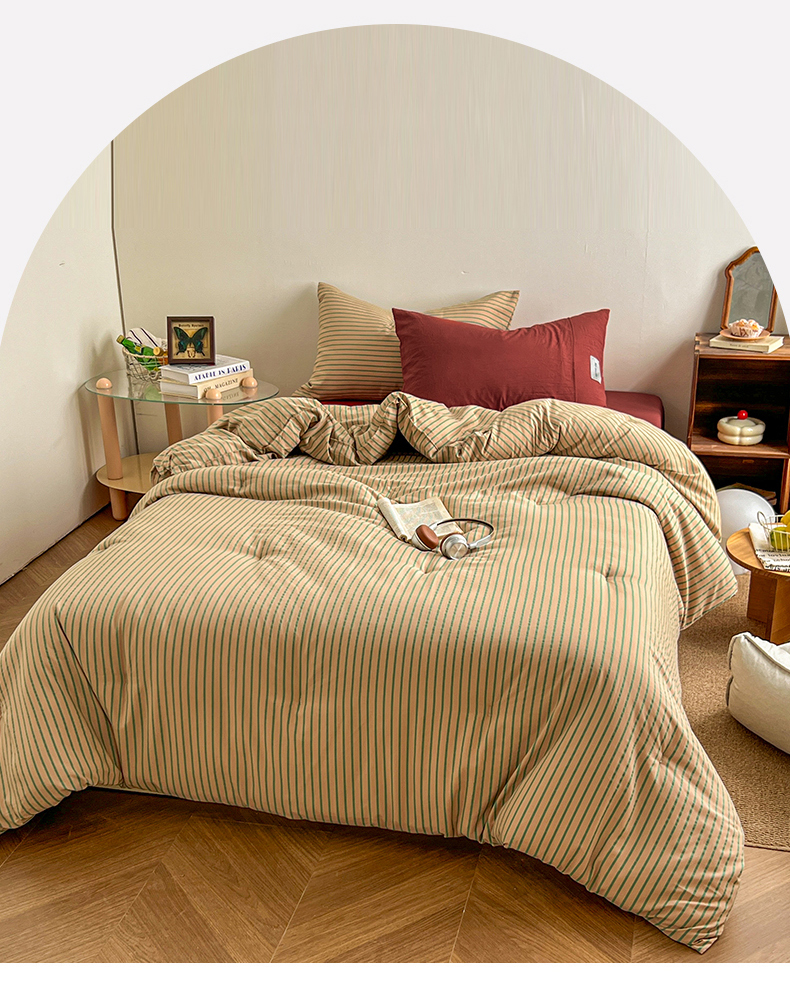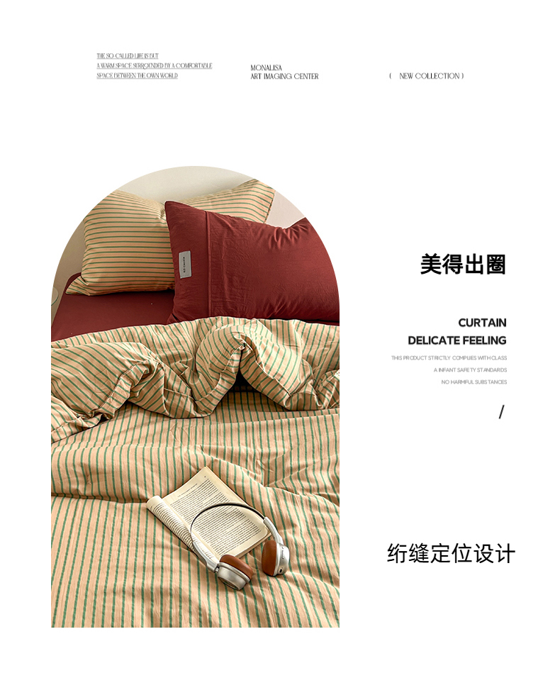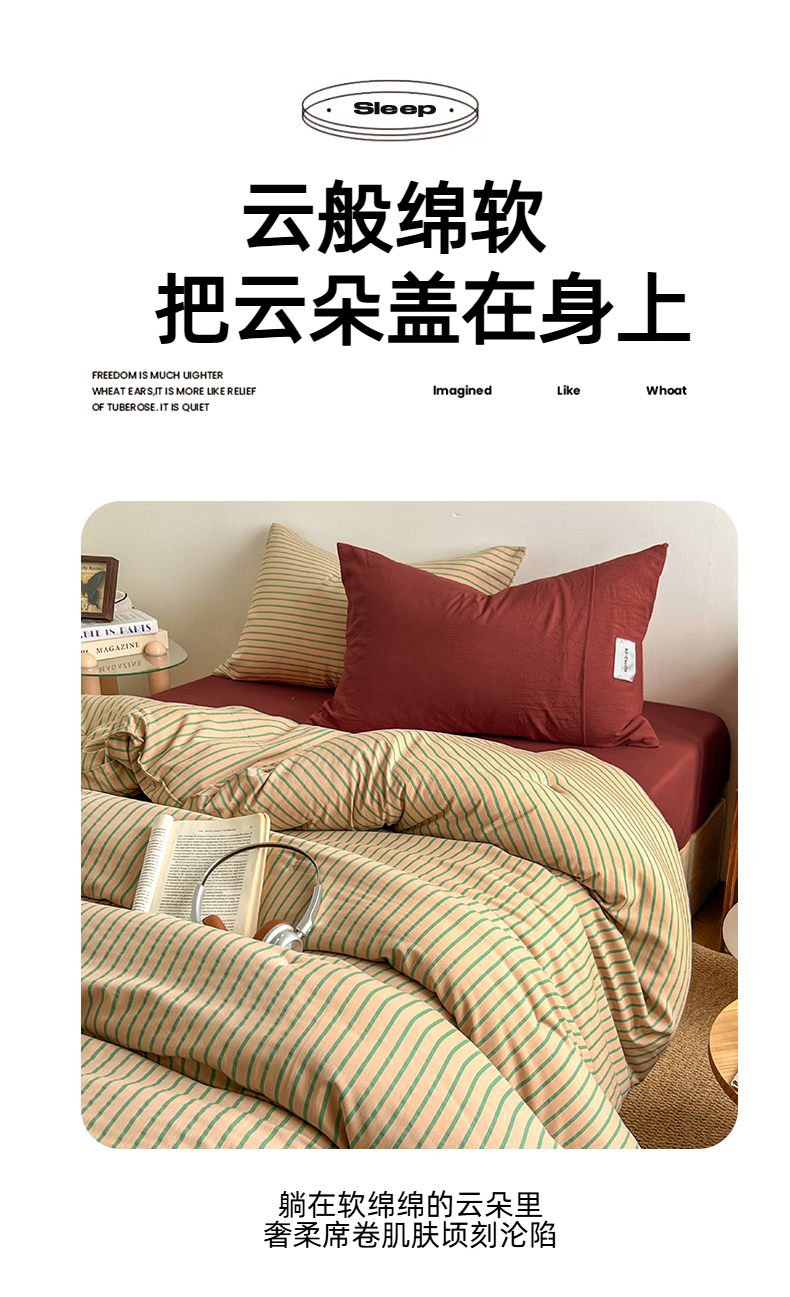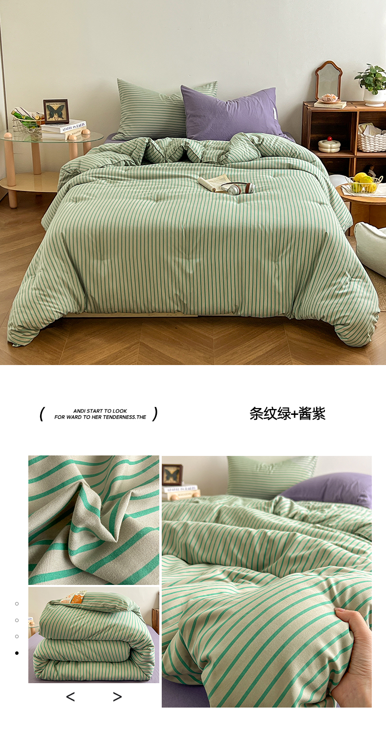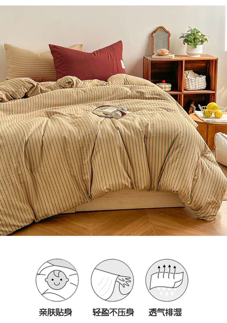 (总)暖芯优选 2025新款韩式无印风水洗棉拼色学生三件套床单床笠款四件套,条纹卡其+深红,条纹海洋蓝+深蓝,条纹抹茶绿+酱紫,条纹柠檬黄+咖啡,条纹水蓝+咖啡,条纹香芋紫+深紫,组合图