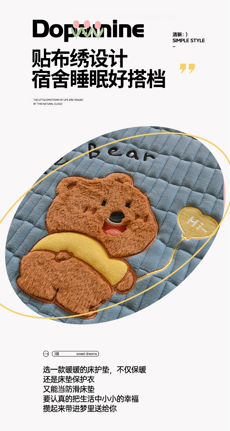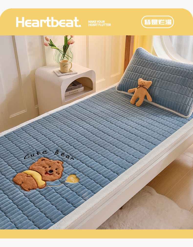 (总)悠米悠家 2025新款学生款兔毛绒刺绣夹棉上下铺床褥,小狗-粉色,小狗-绿色,小狗-蓝色,小狗-红色,小狗-卡其色,小狗-深蓝,小狗-灰色,小熊-深蓝,小熊-灰色,小熊-红色,小熊-粉色,小熊-绿色,小熊-卡其色,小熊-蓝色