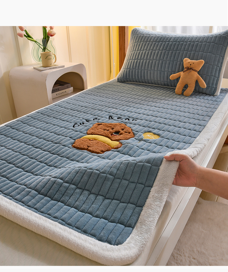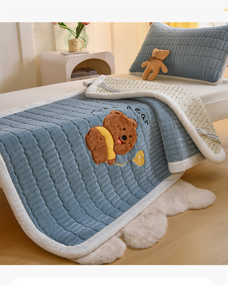 商品名称:悠米悠家 2025新款学生款兔毛绒刺绣夹棉上下铺床褥 小熊-蓝色