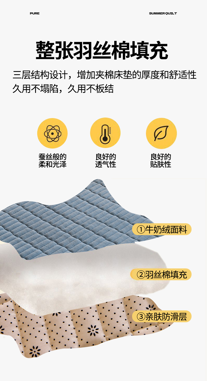 (总)悠米悠家 2025新款亲肤加厚棉花夹棉床褥,白色,粉色,灰色,蓝色