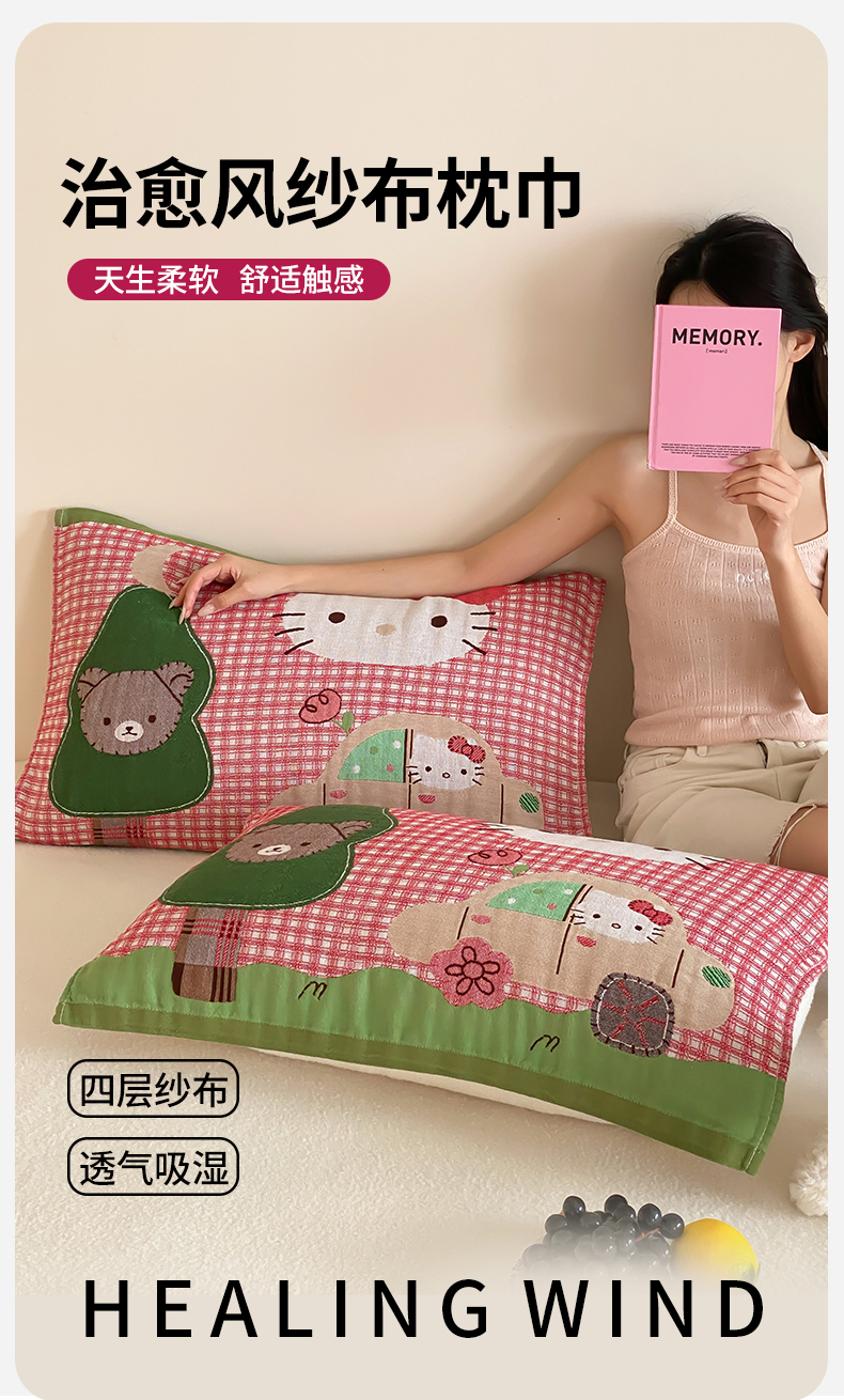 (总)麻依 2025新款治愈风全棉纯棉四层纱布枕巾,组合图仅供展示不可下单,KT时光,抱枕小熊,粉星KT,好多狗,花丛KT,可可小猫,亮晶晶,满心KT,暖心小狗,贴布猫,星星KT,星星人