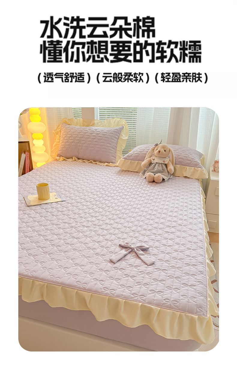 • 91家纺网 家纺一手货源 找家纺 子钦家纺 2025新款水洗棉云朵棉花边蝴蝶结夹棉床笠单床笠 蝴蝶结夹棉床笠-阳光紫