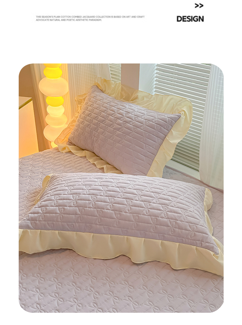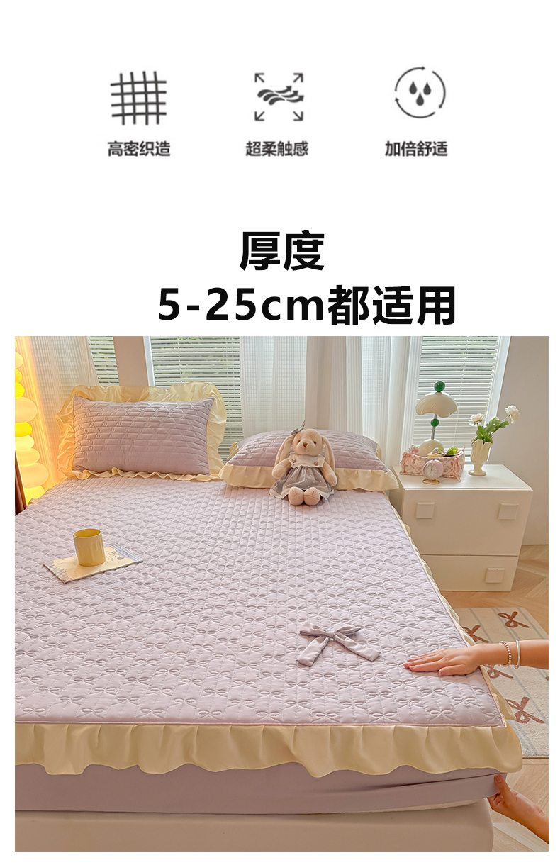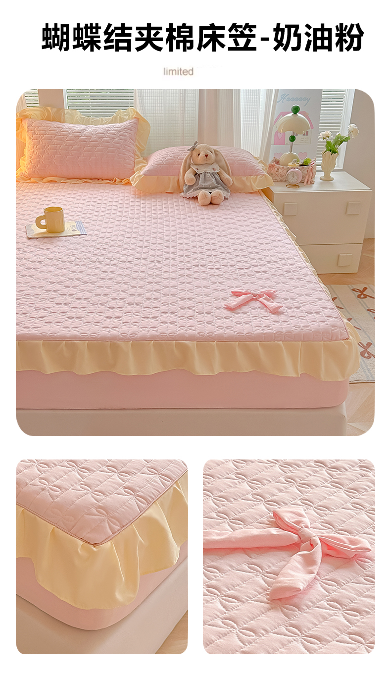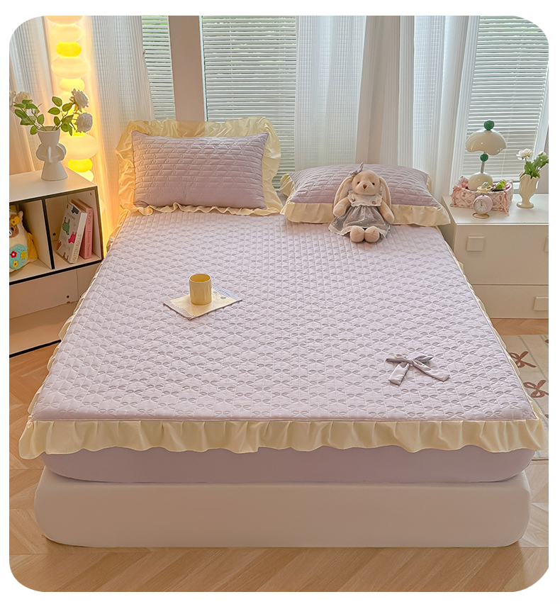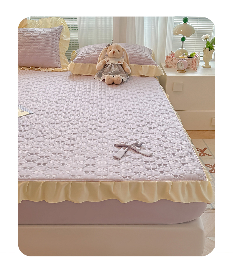 子钦家纺 2025新款水洗棉云朵棉花边蝴蝶结夹棉床笠单床笠 蝴蝶结夹棉床笠-阳光紫