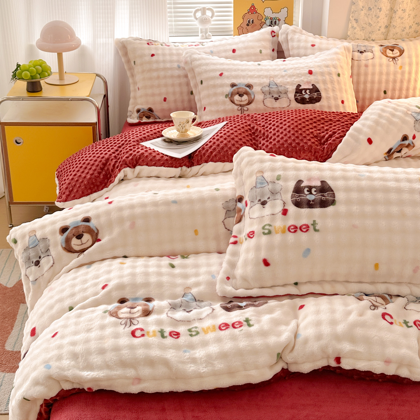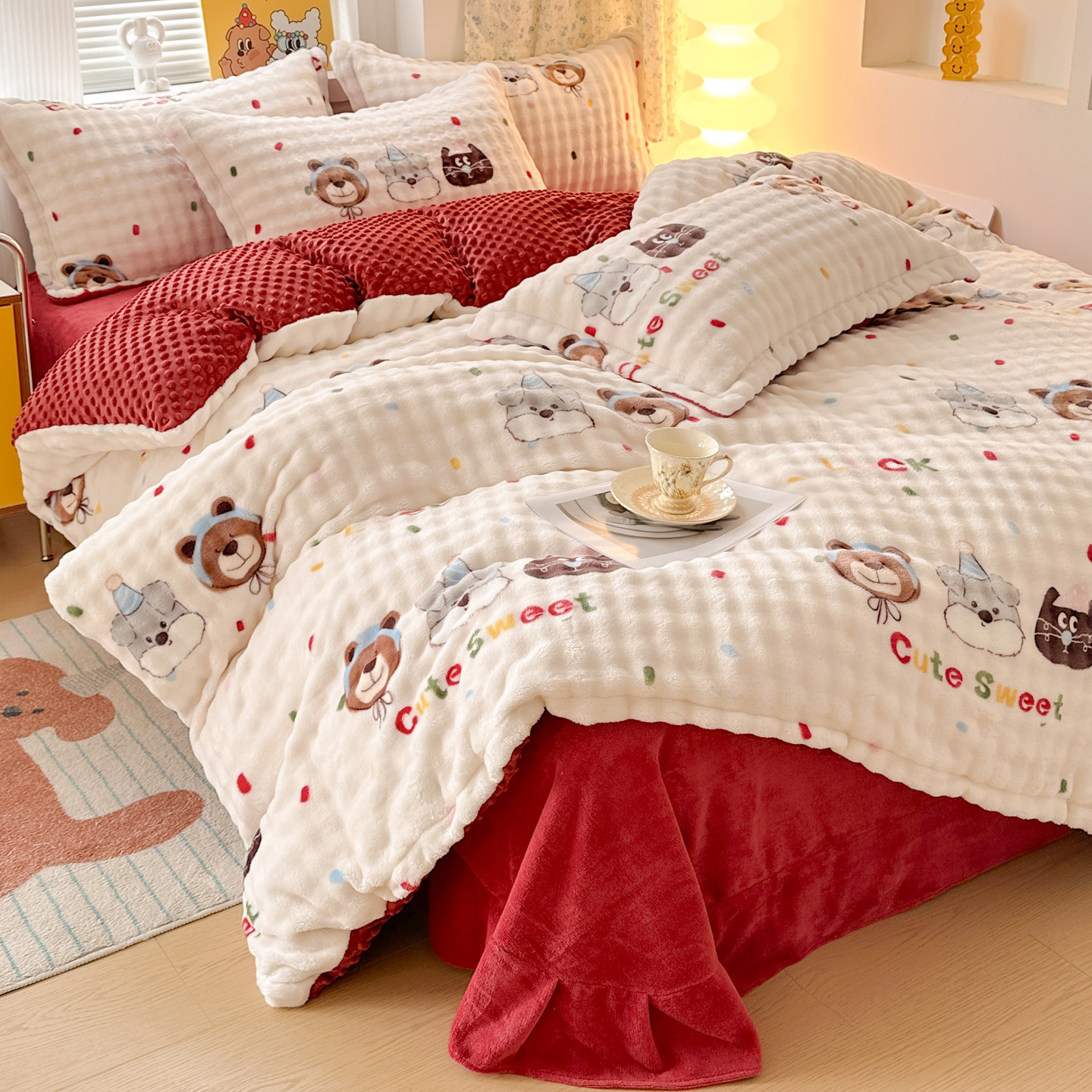 梦莱斯 2025新款泡泡绒豆豆绒加厚牛奶绒四件套 - 印花系列 顽皮熊