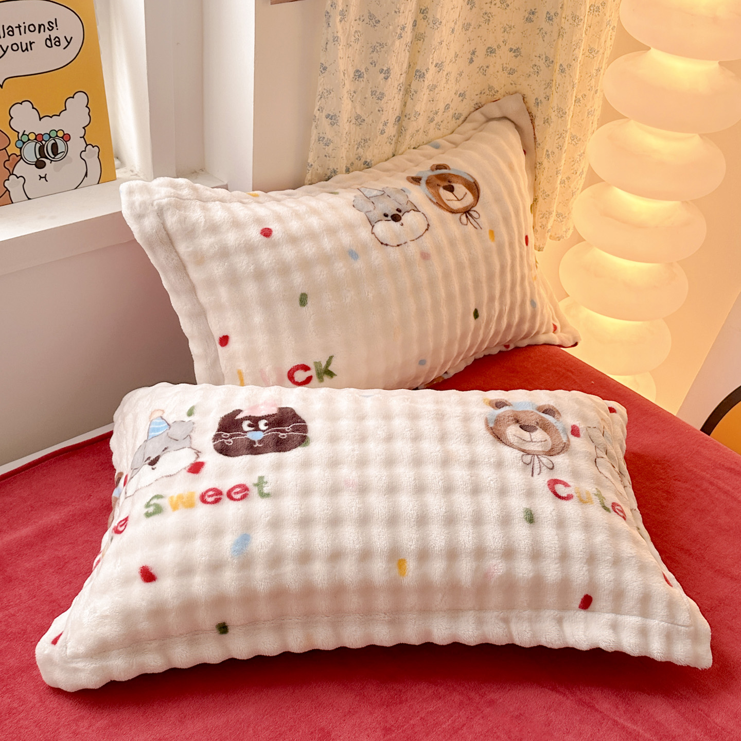 商品名称:梦莱斯 2025新款泡泡绒豆豆绒加厚牛奶绒四件套 - 印花系列 顽皮熊