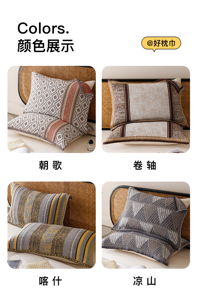 (总)爱港家纺 2025新款全棉巴恩风纱布枕巾 隔热 耐脏,防滑,朝歌,卷轴,喀什,凉山,楼兰,麦城,牧野,那曲,组合